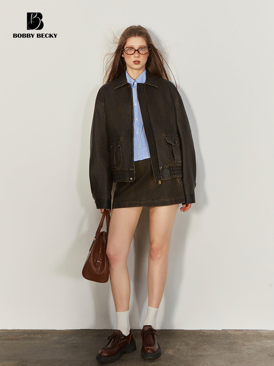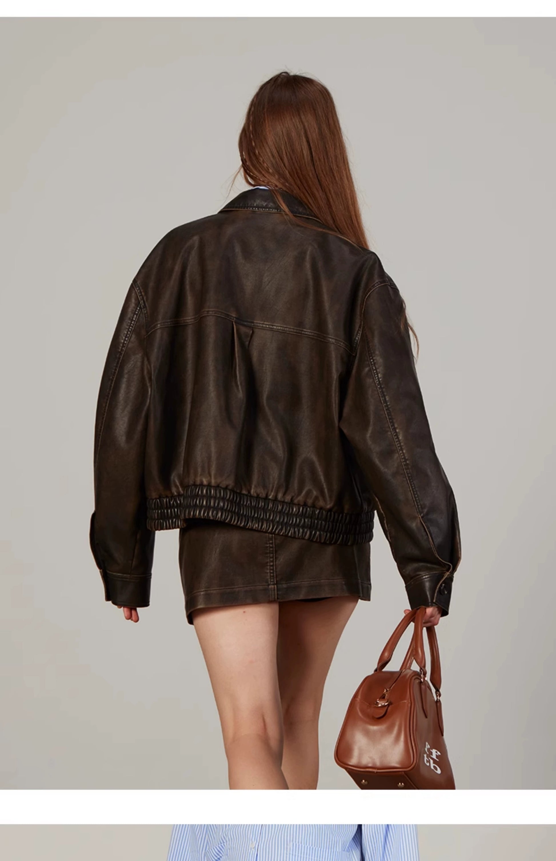 Faux Leather Motorcycle Jacket And Mini Skirt