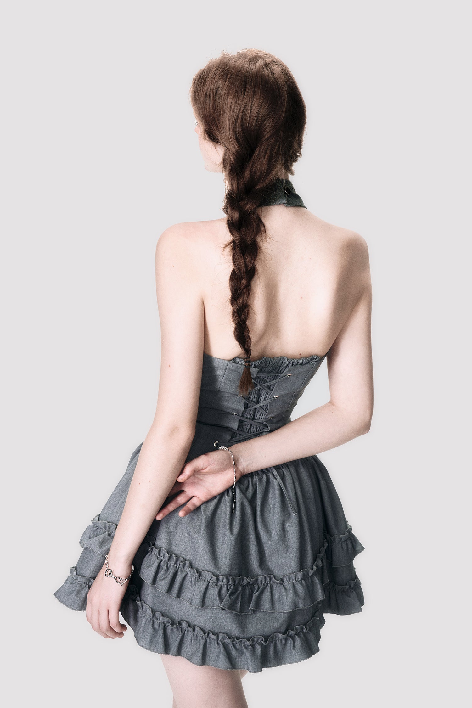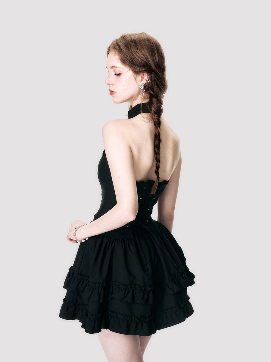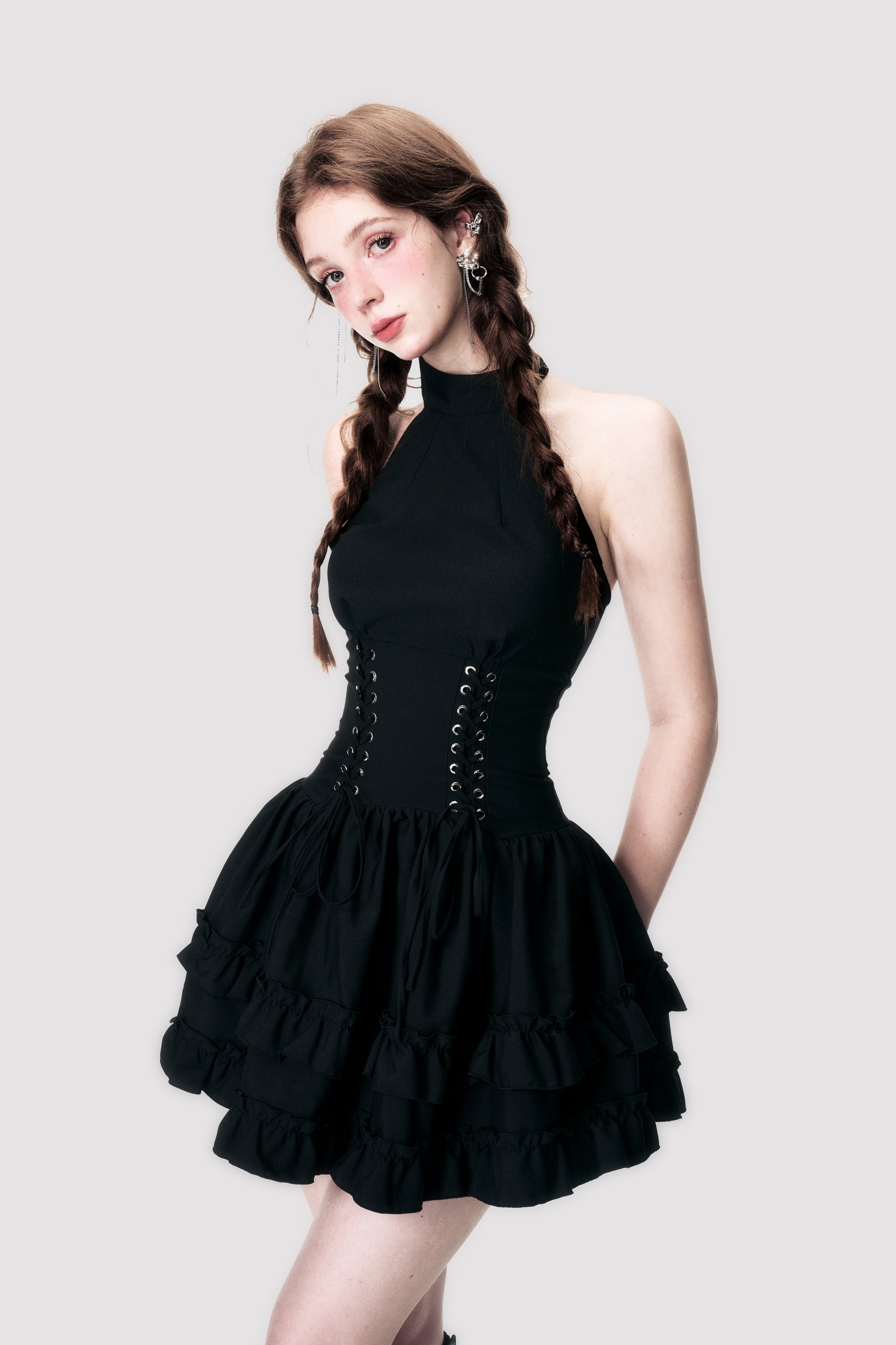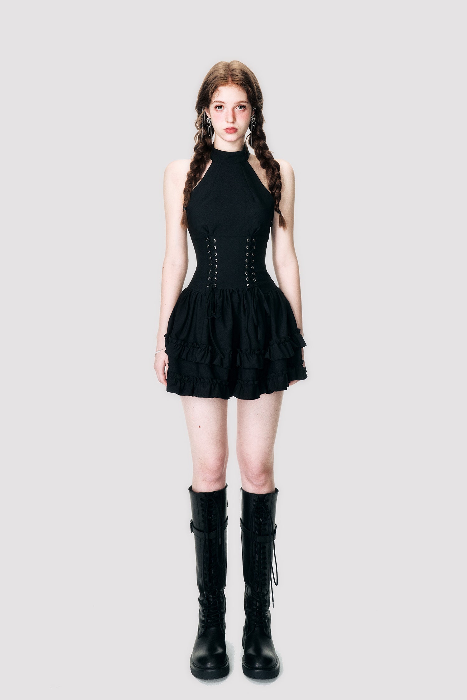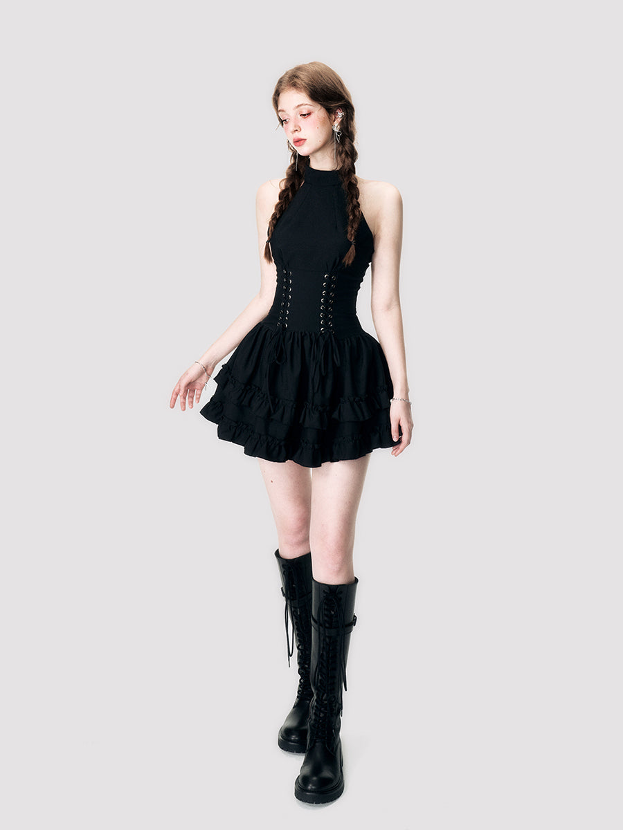 Lace-Up Corset Waist Sleeveless Halter Dress
