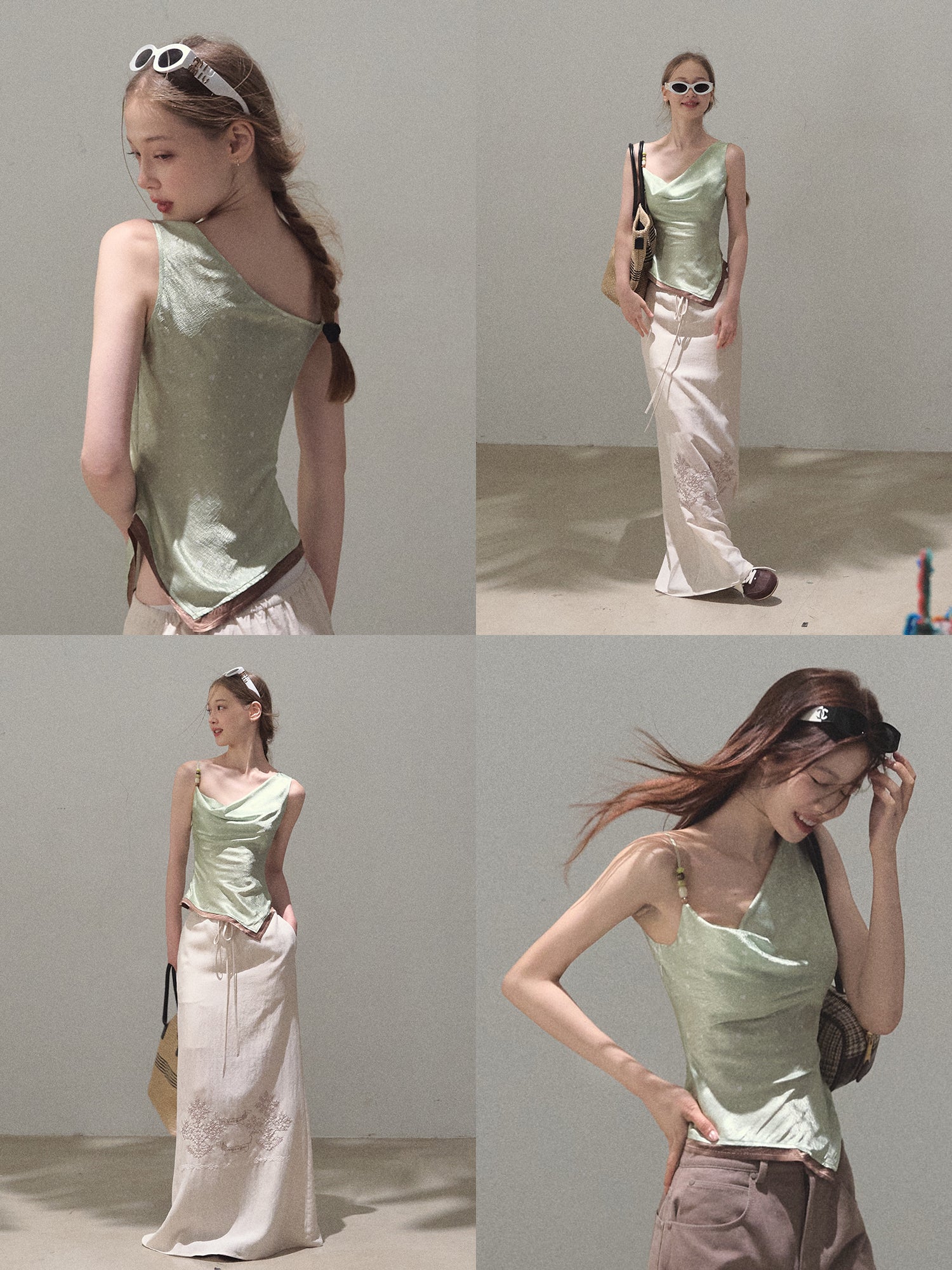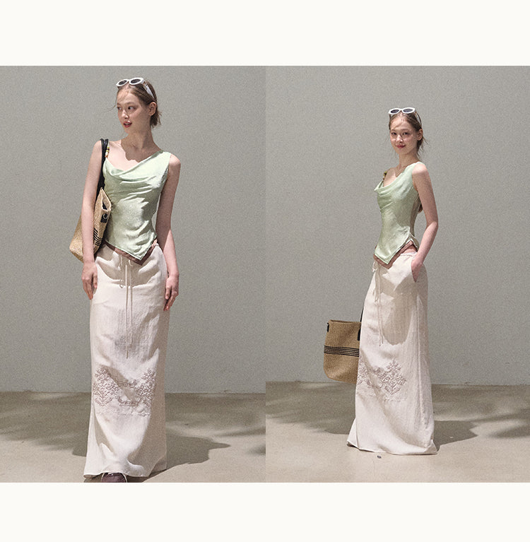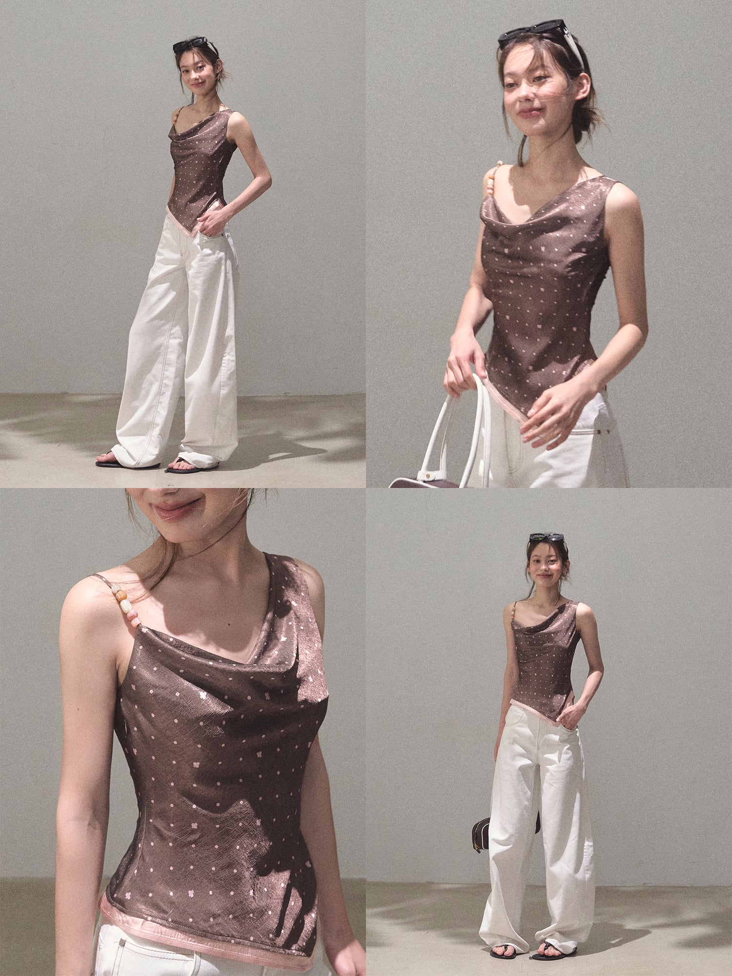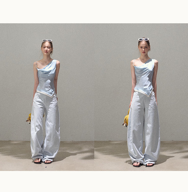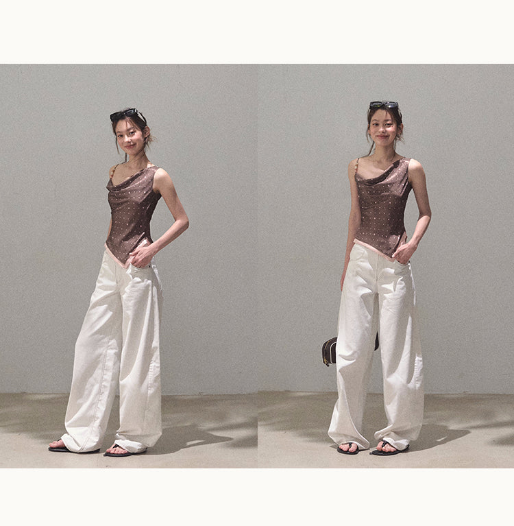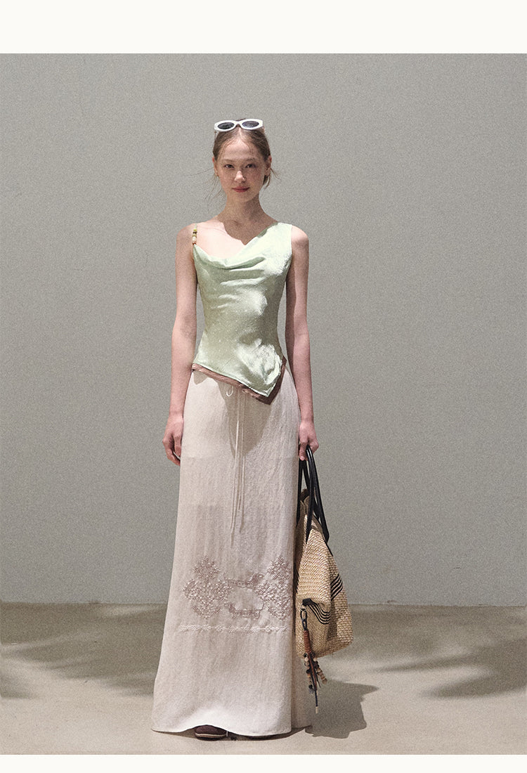One-Shoulder Draped Top With Beaded Strap