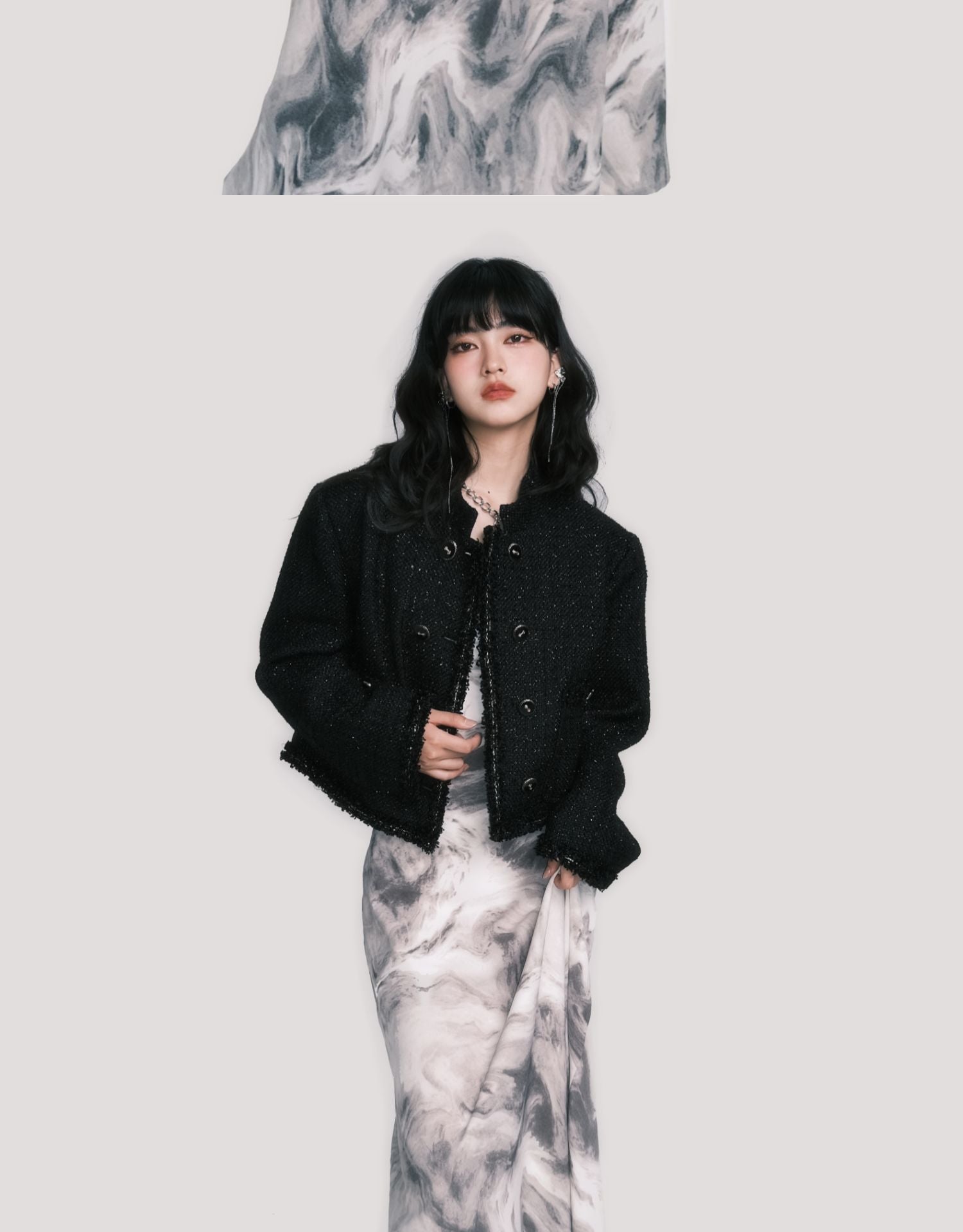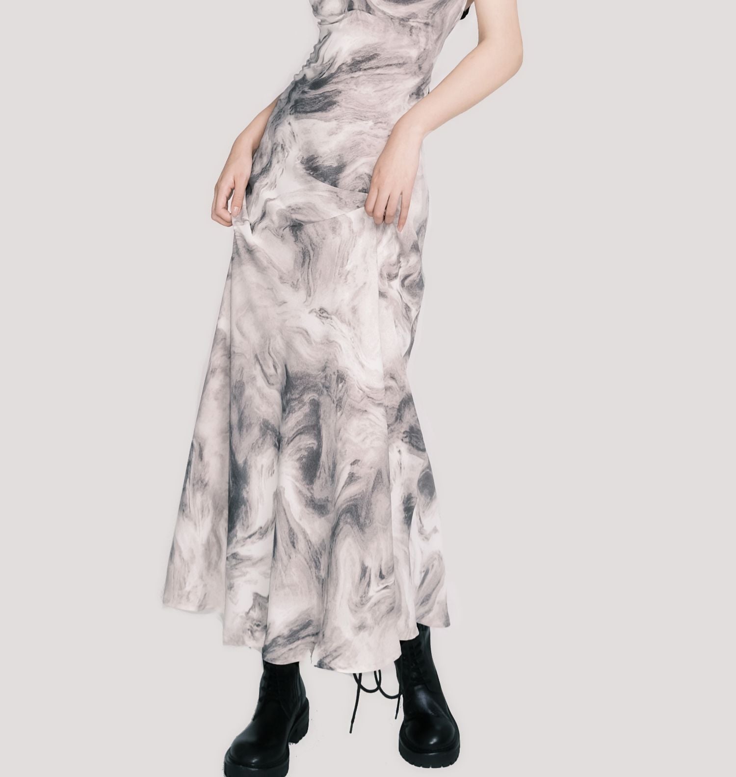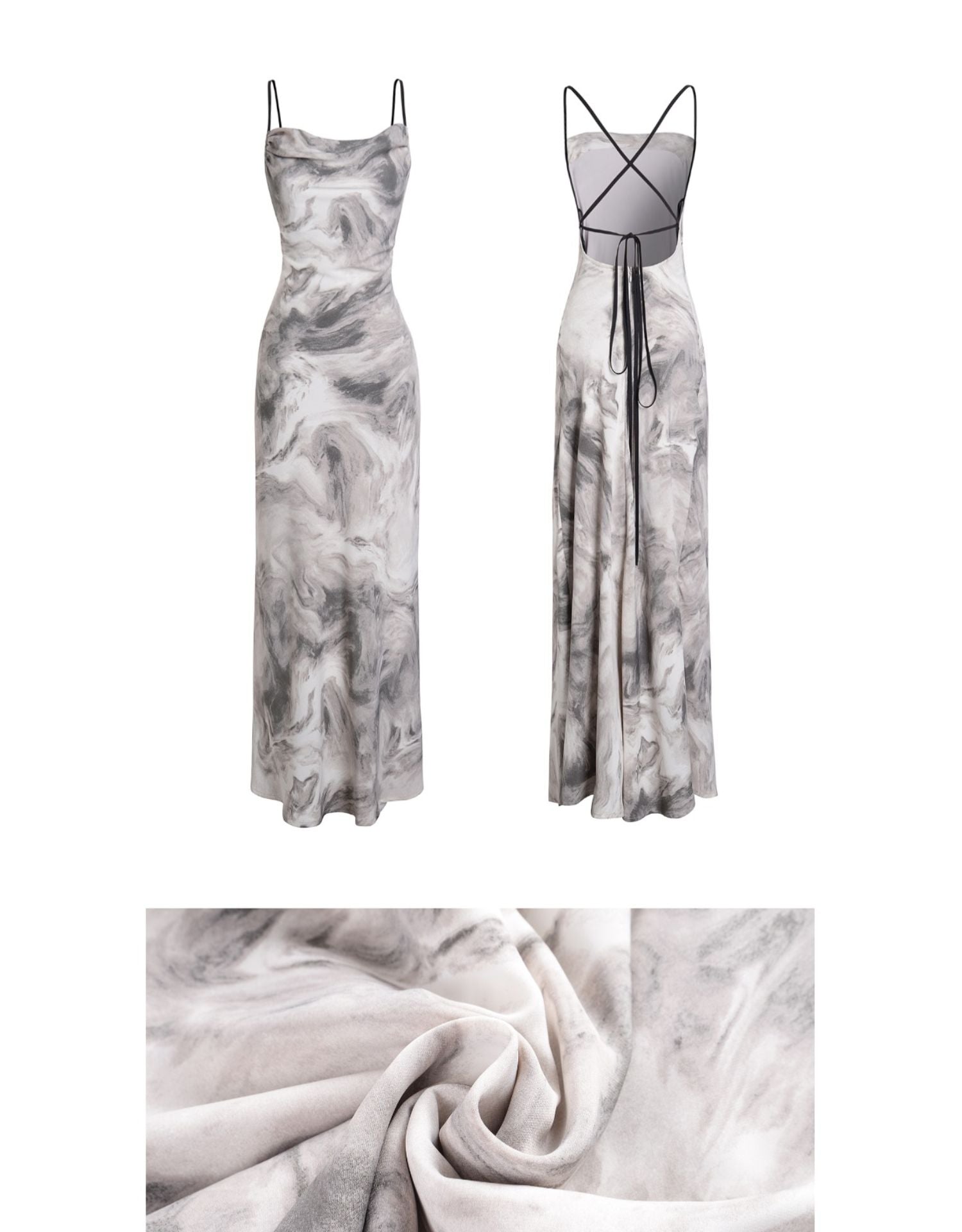 Open-Back Marble Smudge Print Maxi Dress