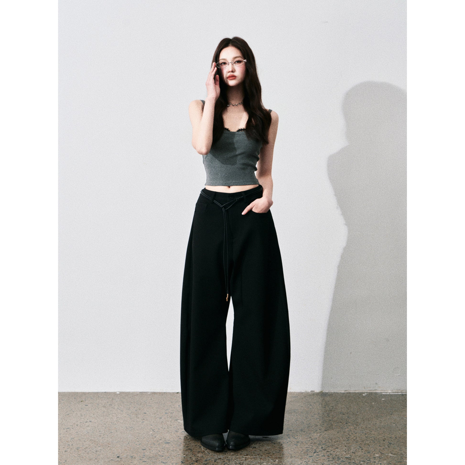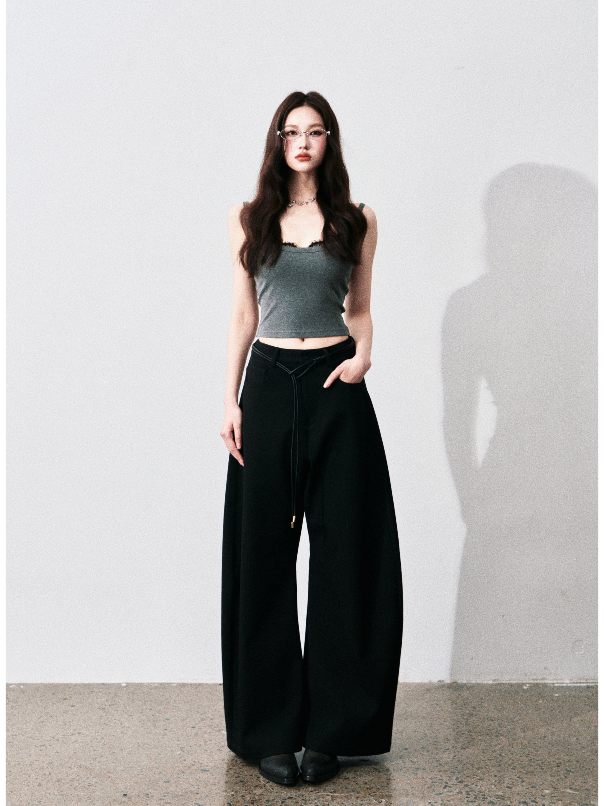 Wide-Leg Scimitar Pants With Cord Belt