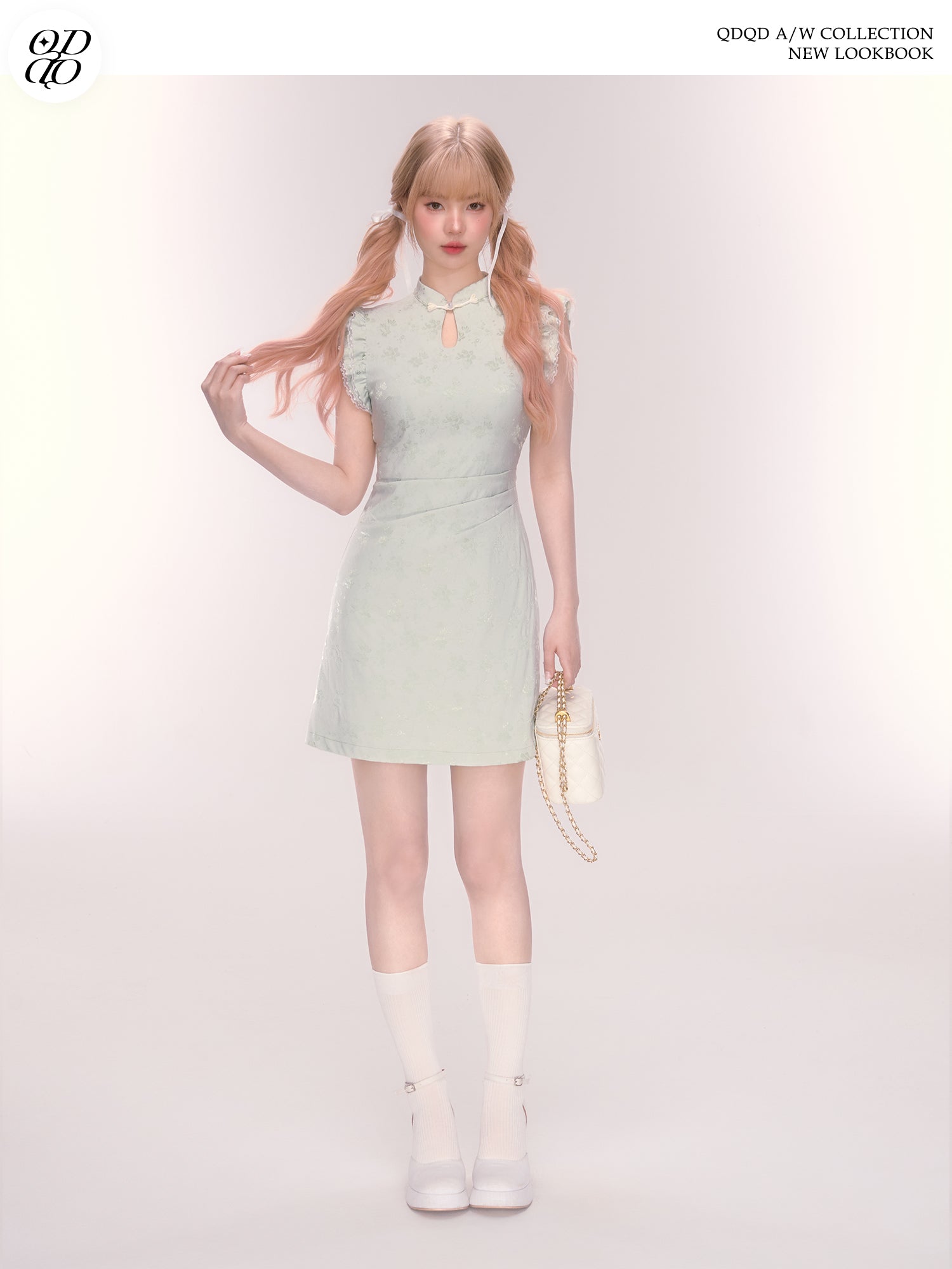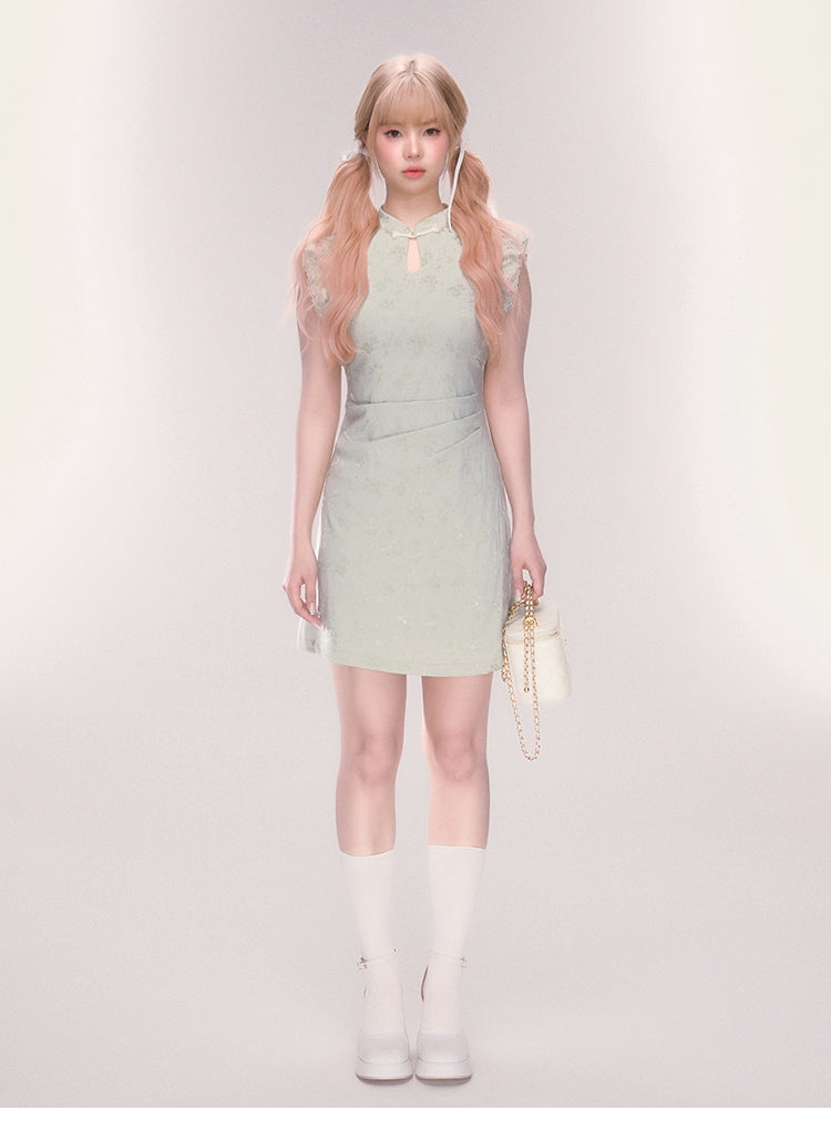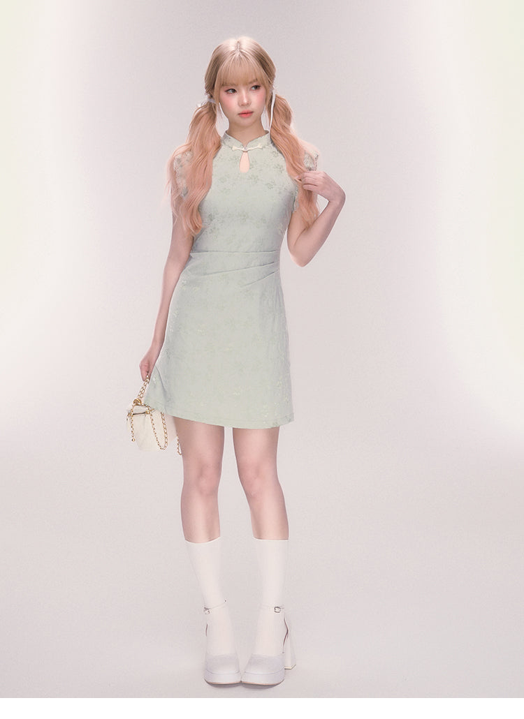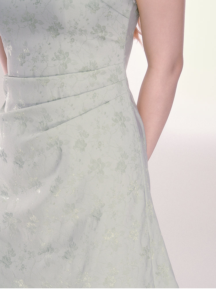 Fitted Jacquard Qipao Dress With Pleated Waist