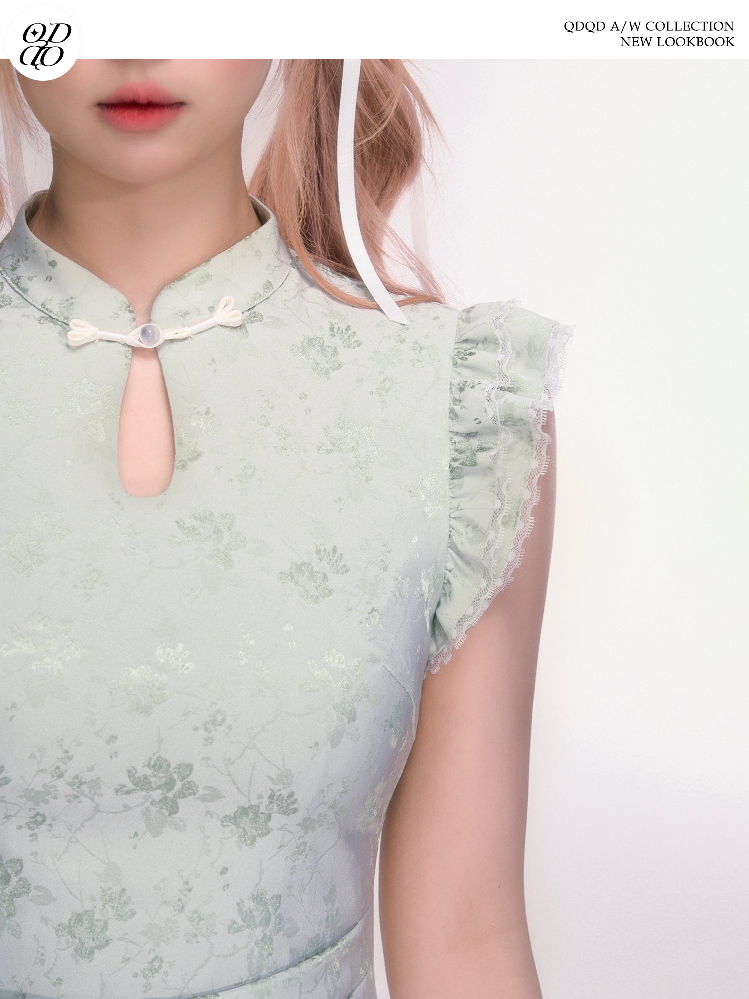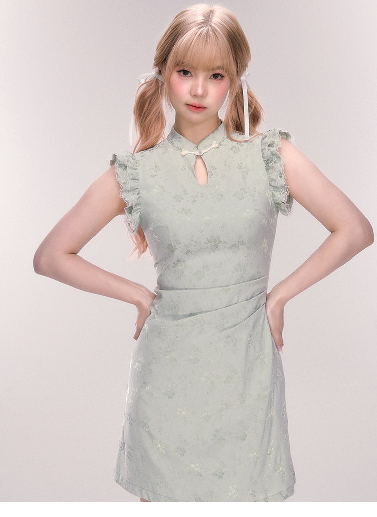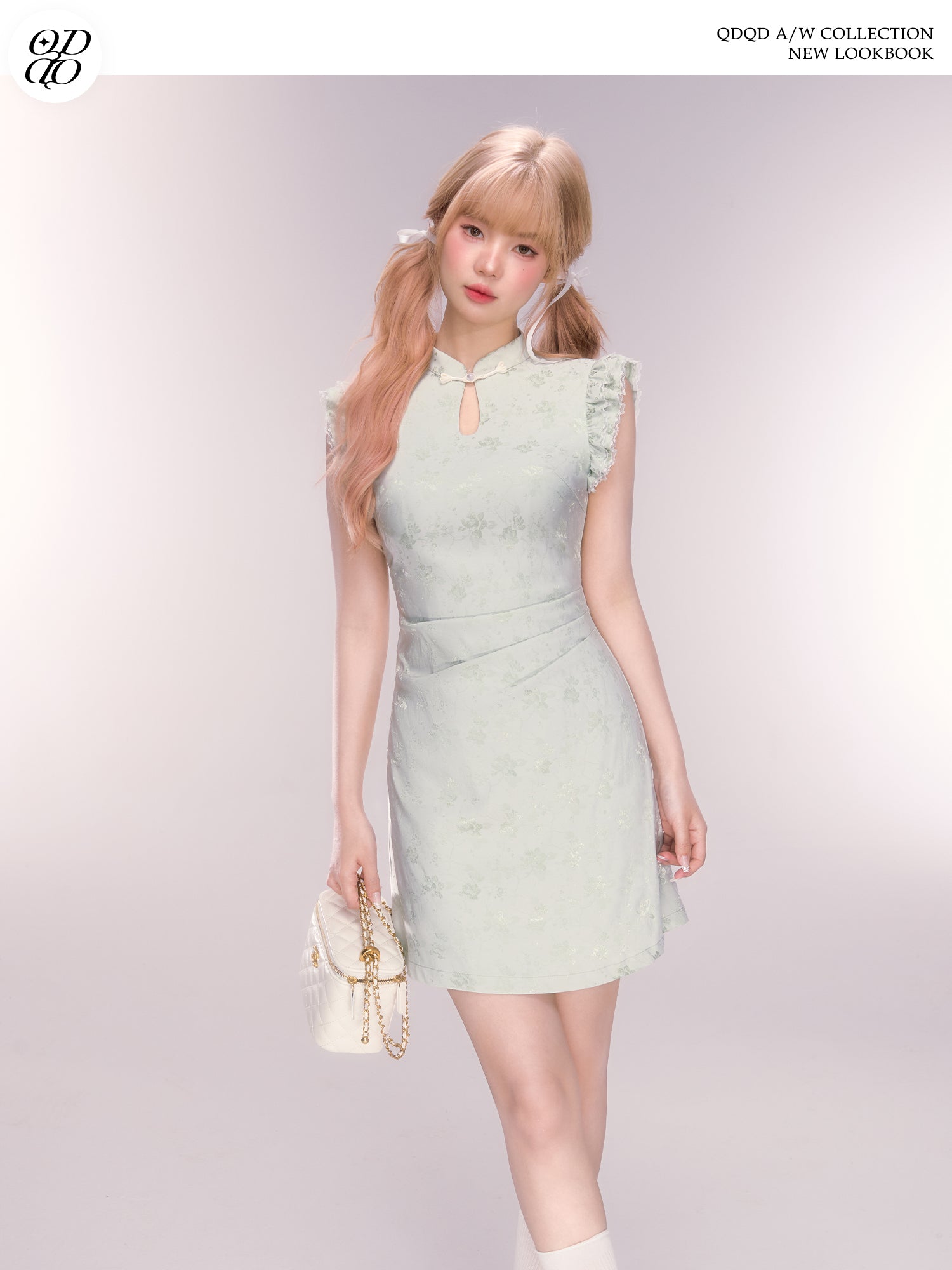 Fitted Jacquard Qipao Dress With Pleated Waist