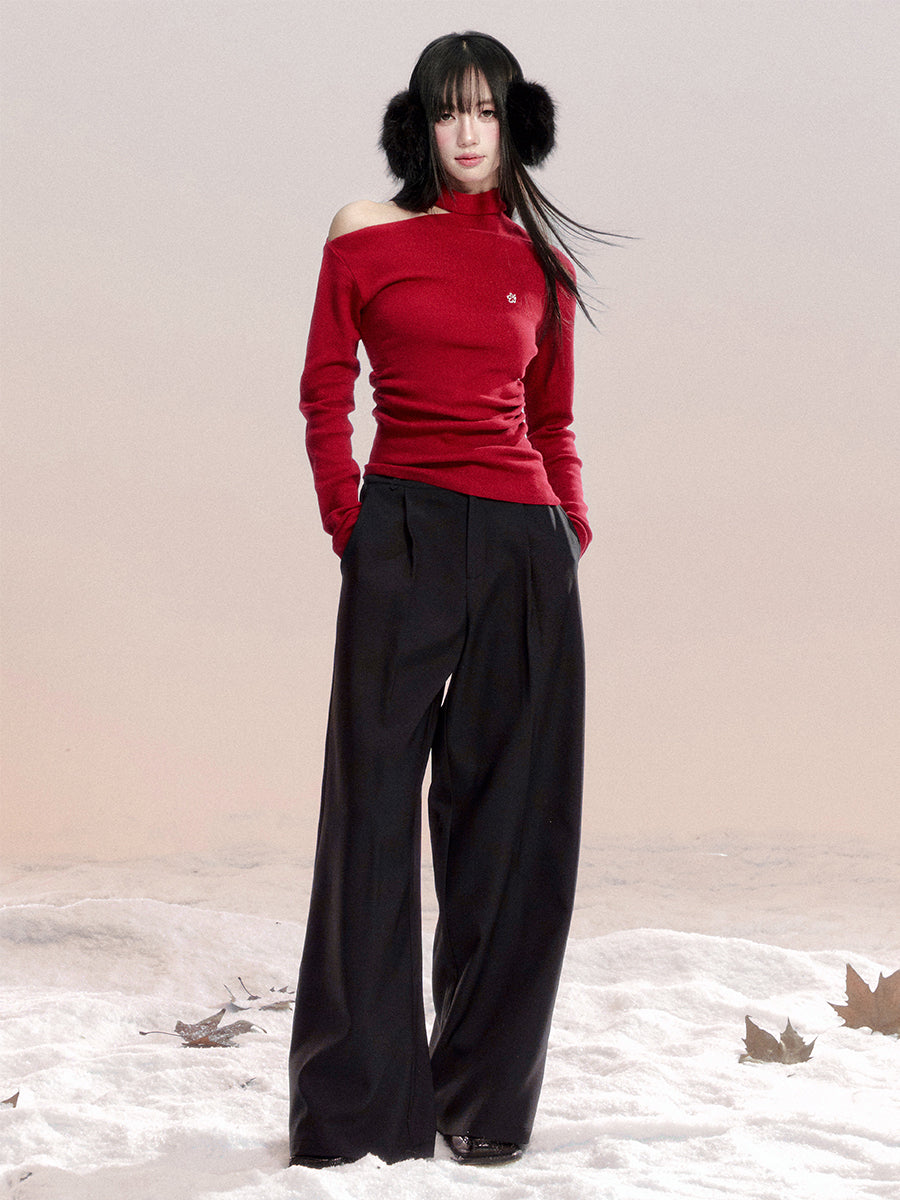 Lace-Detail Flowy Wide-Leg Pants