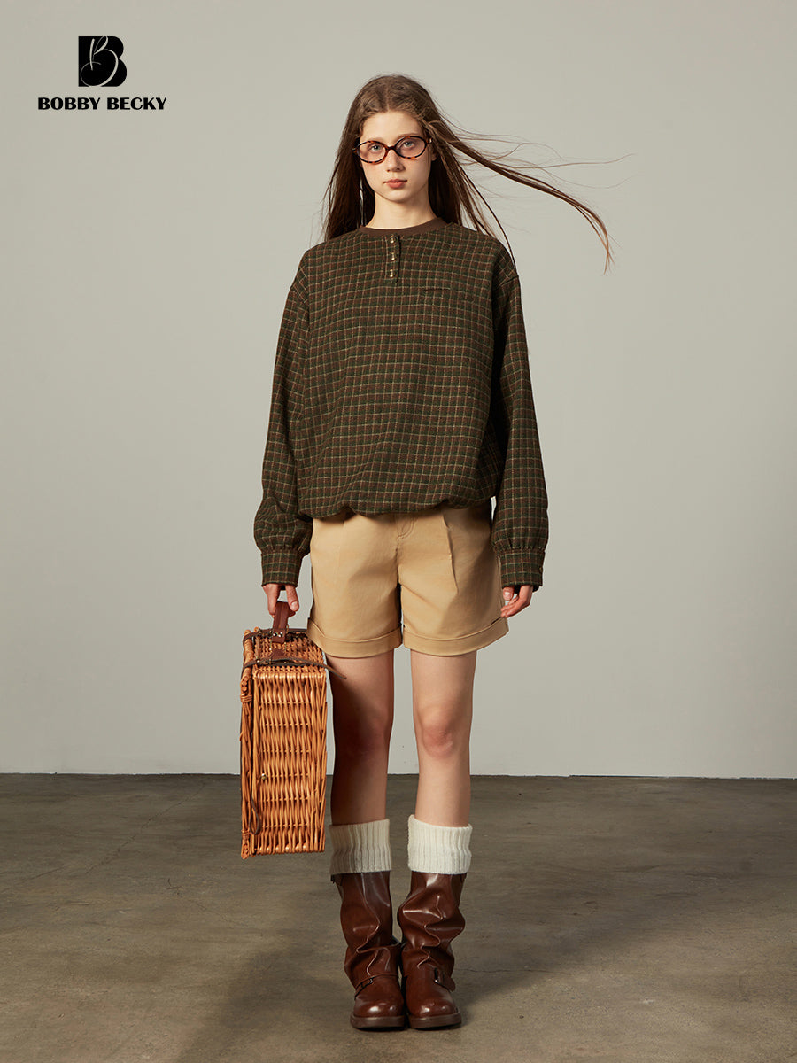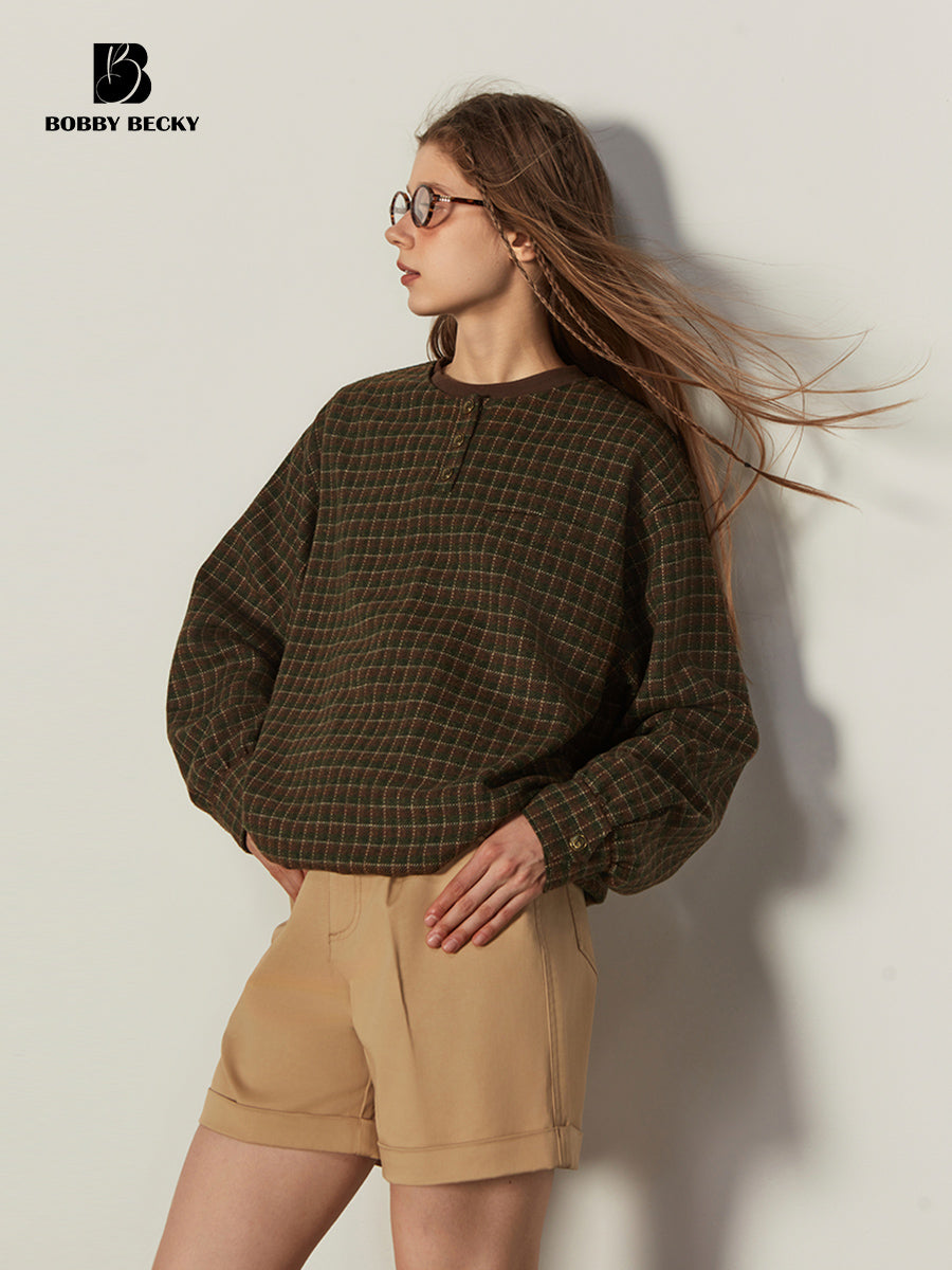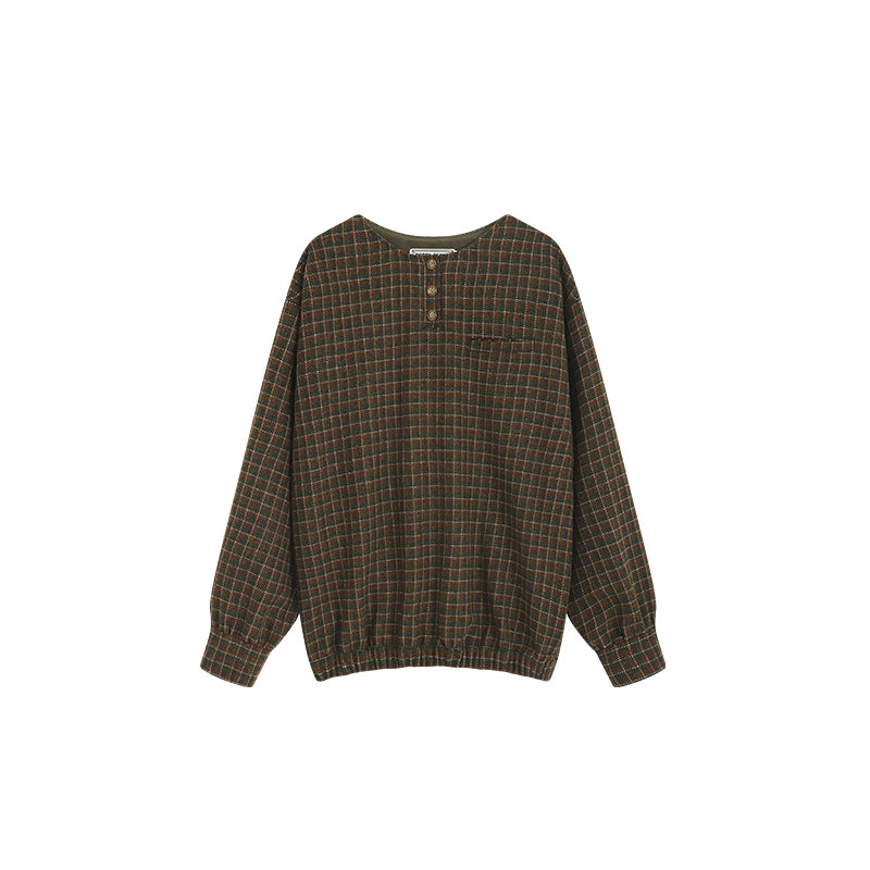 Plaid Relaxed Fit Wool Blend Pullover Sweater