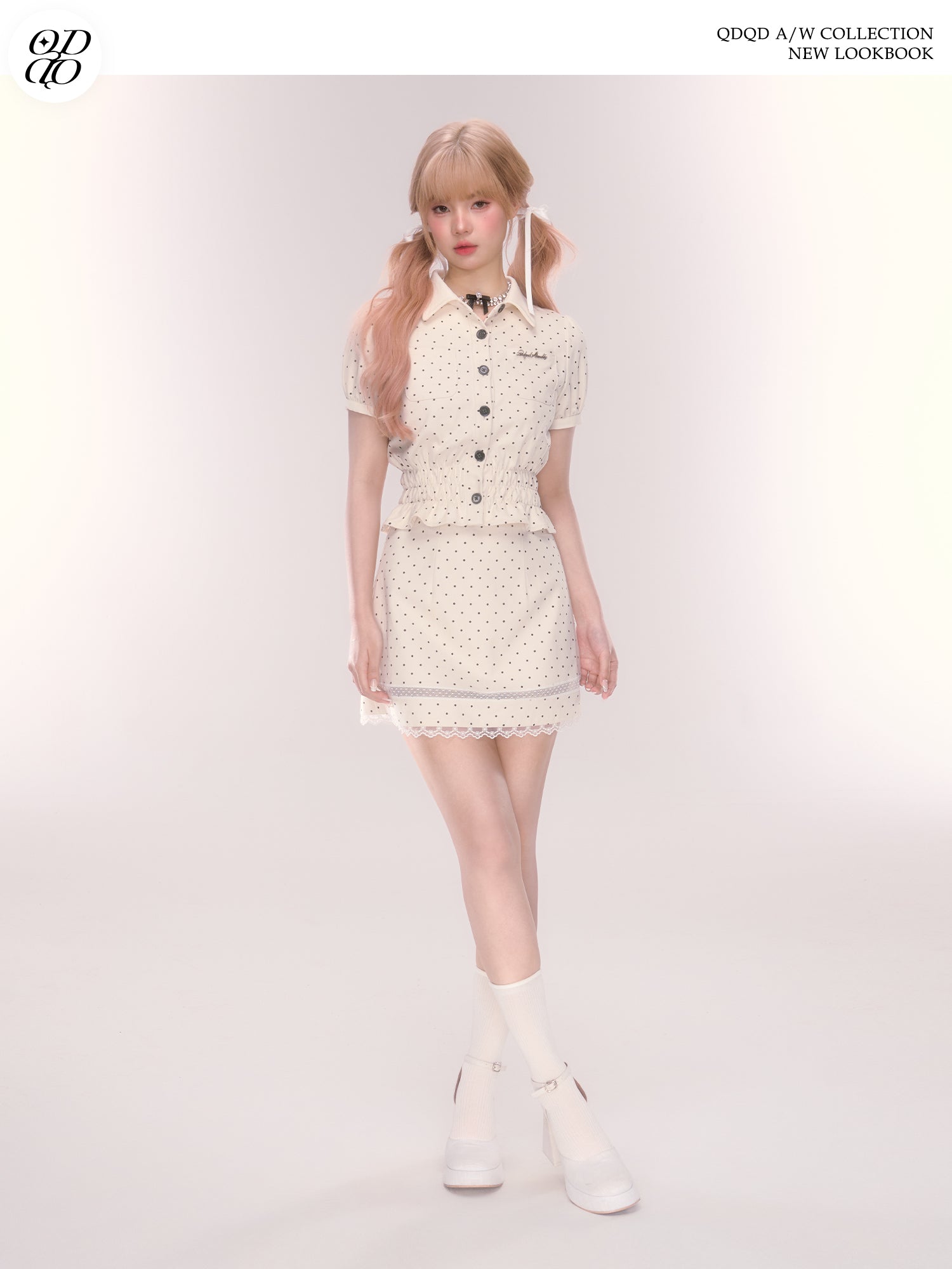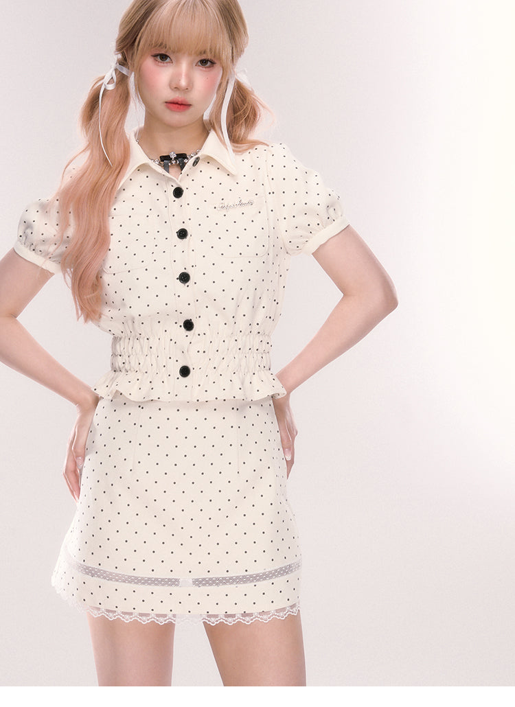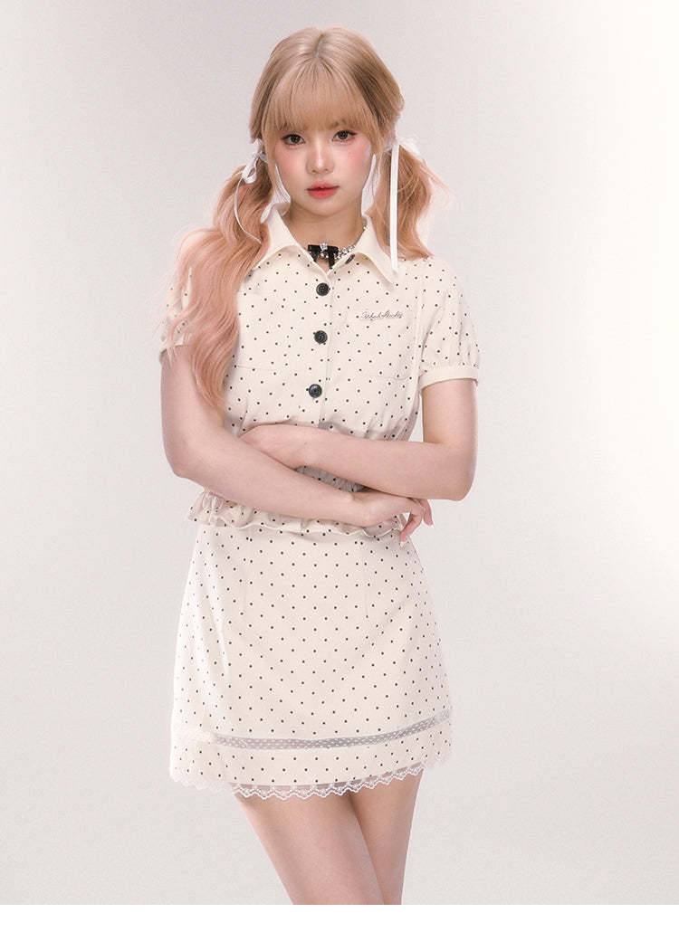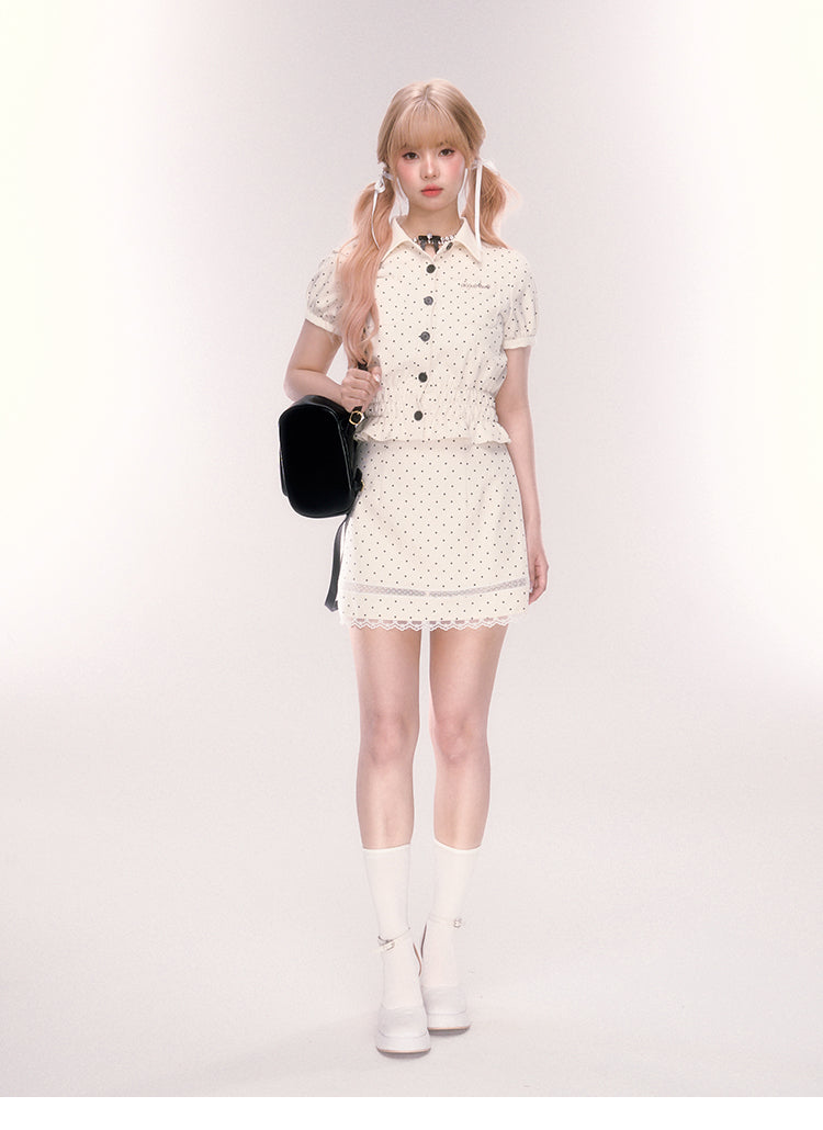 Polka Dot Mini Skirt With Lace Detail