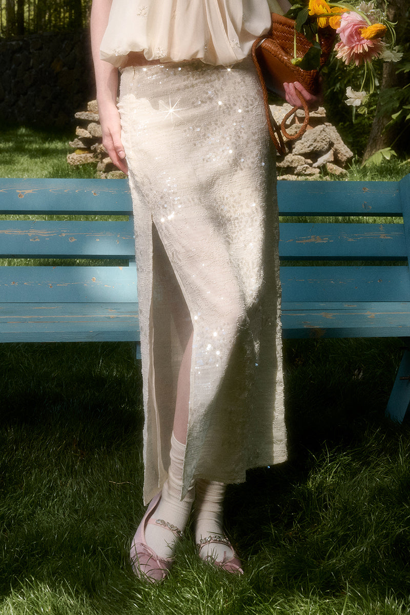 Sparkling Sequin Halter Top & Slit Skirt