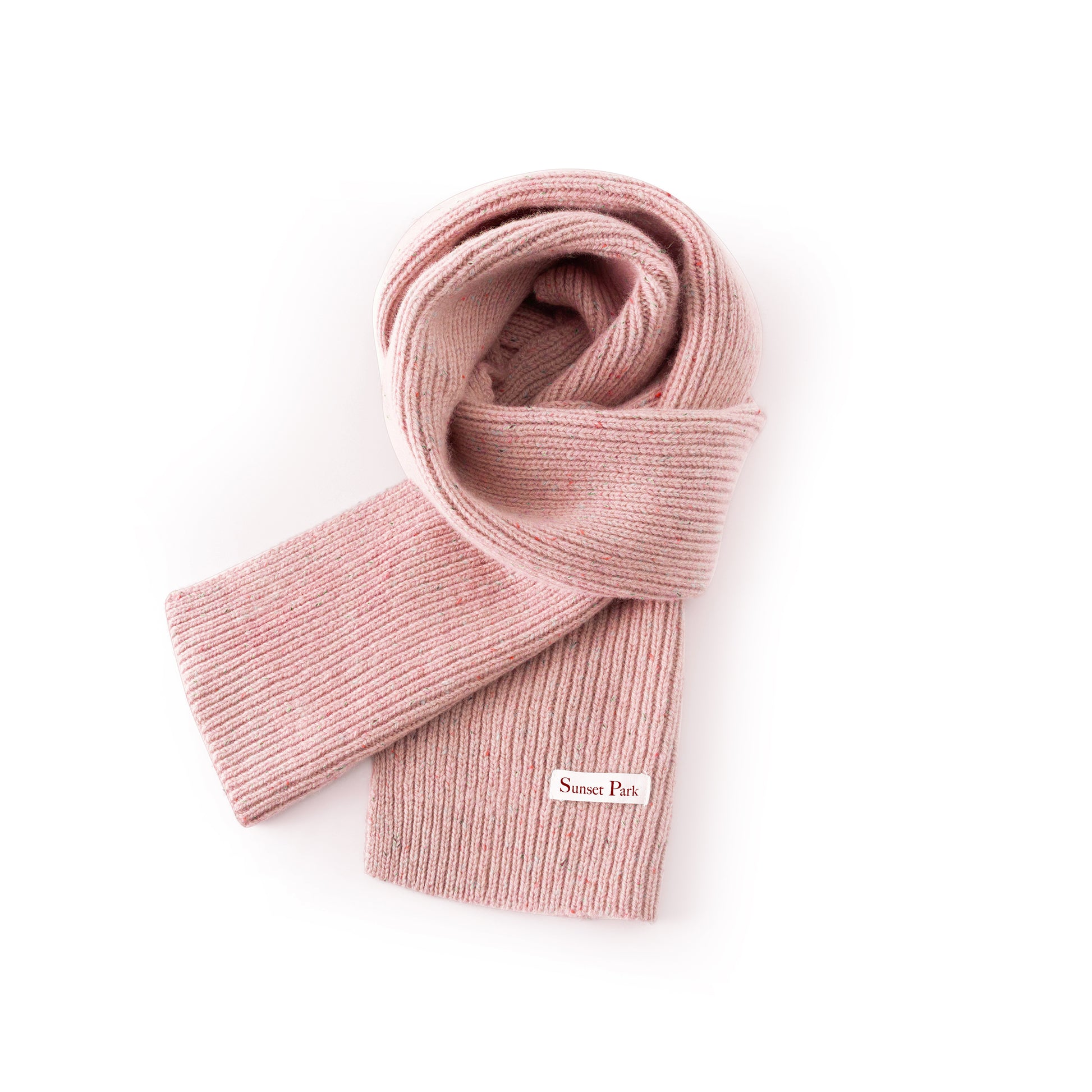 100% Wool Melange Ribbed Knit Scarf And Gloves