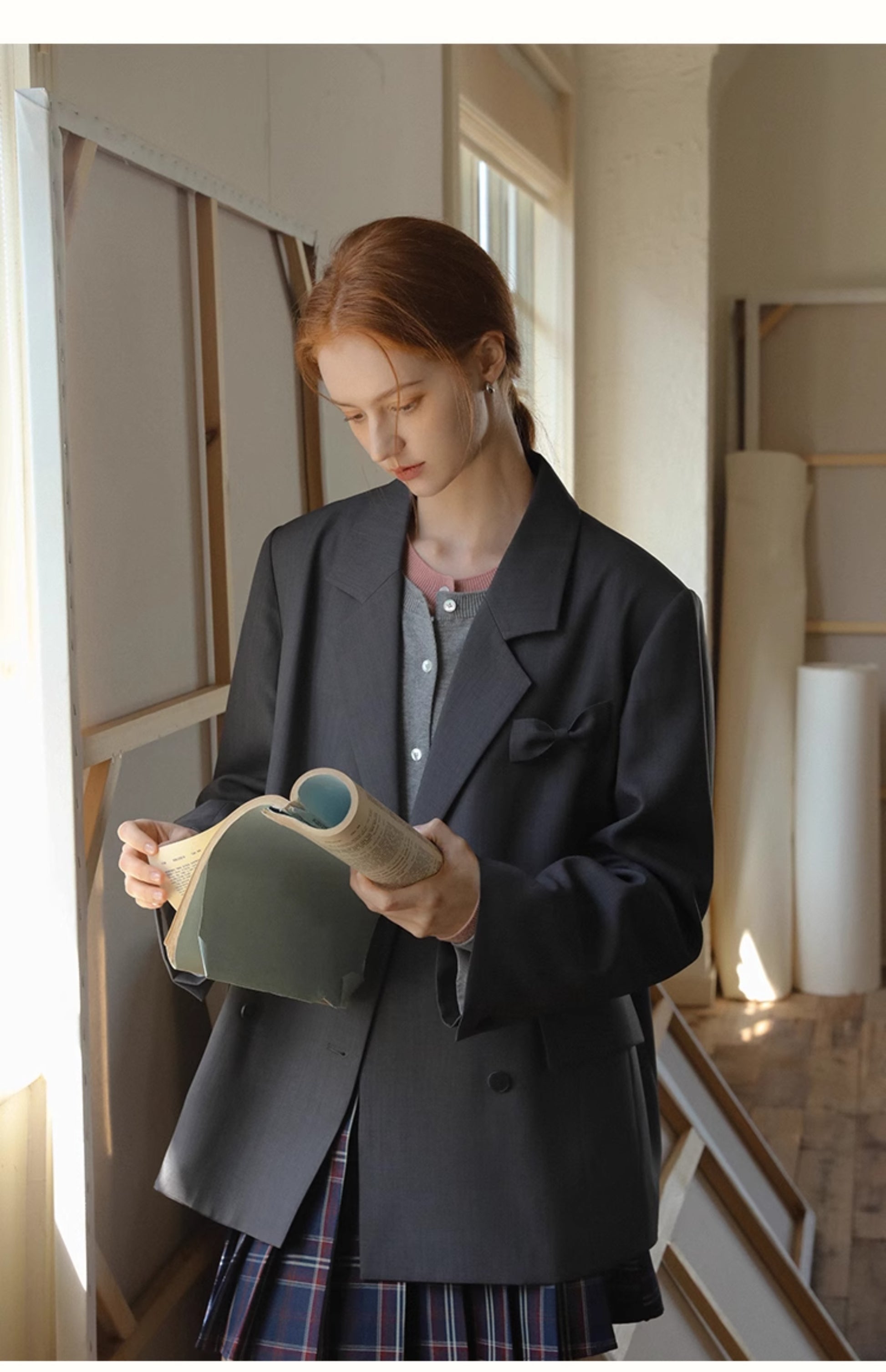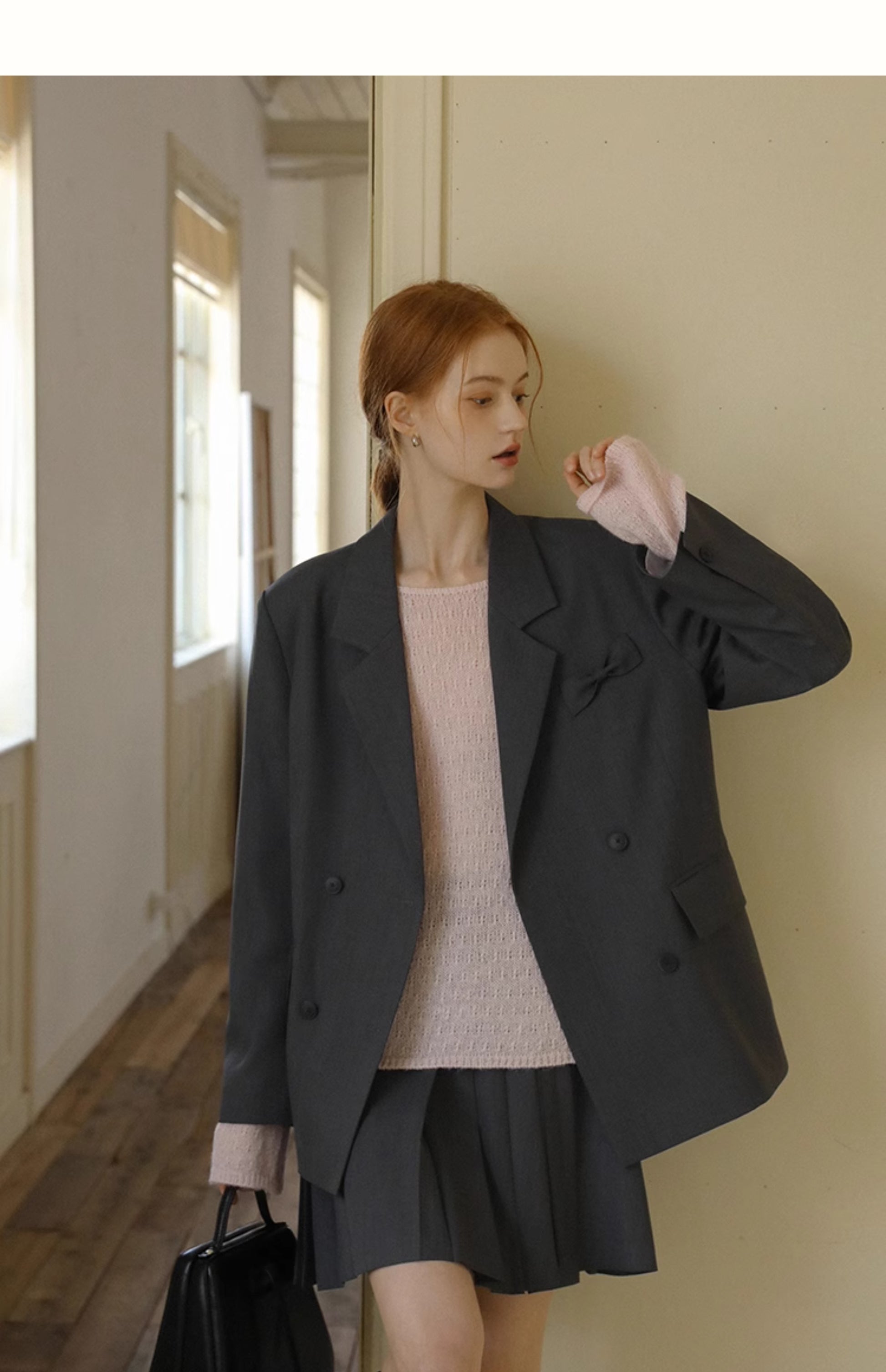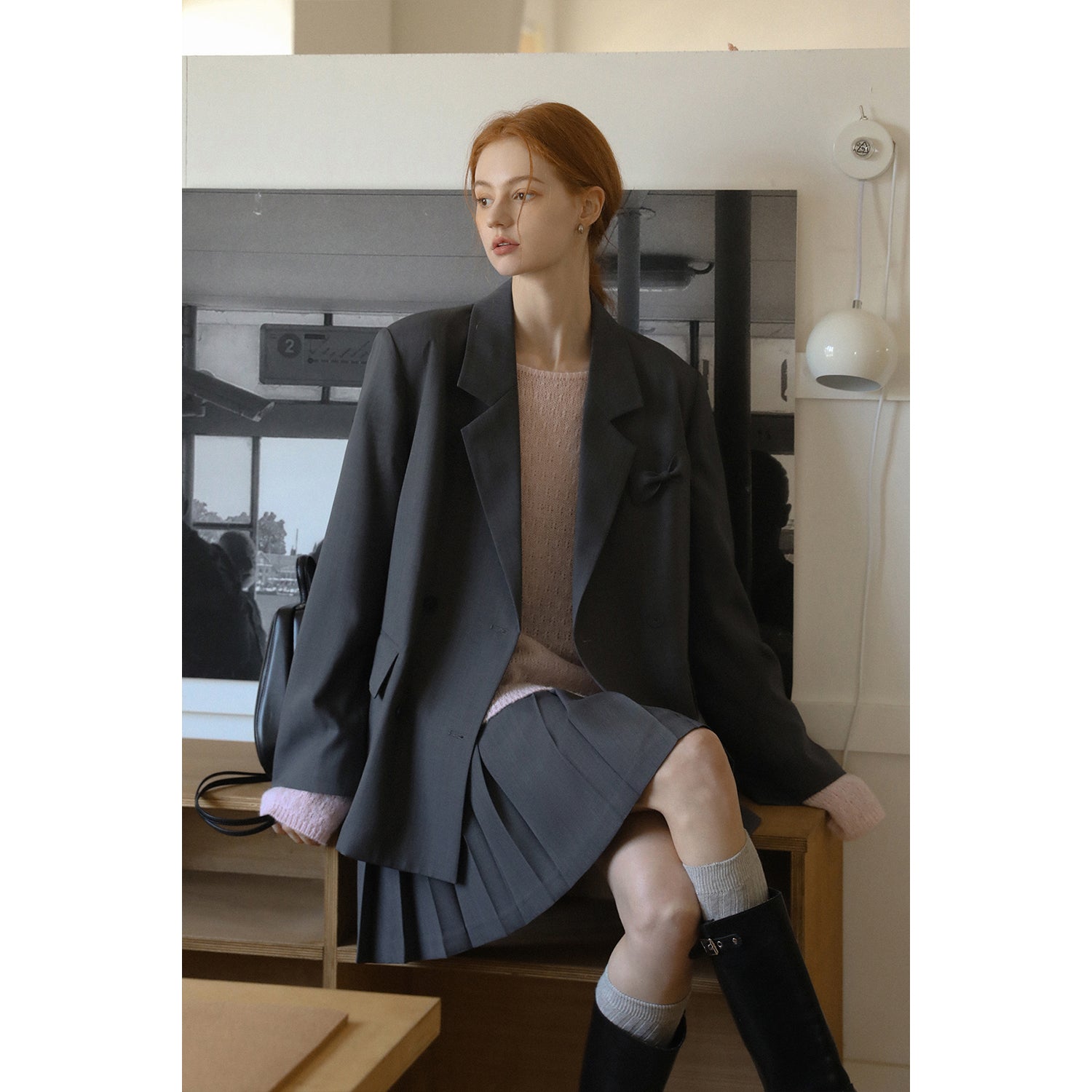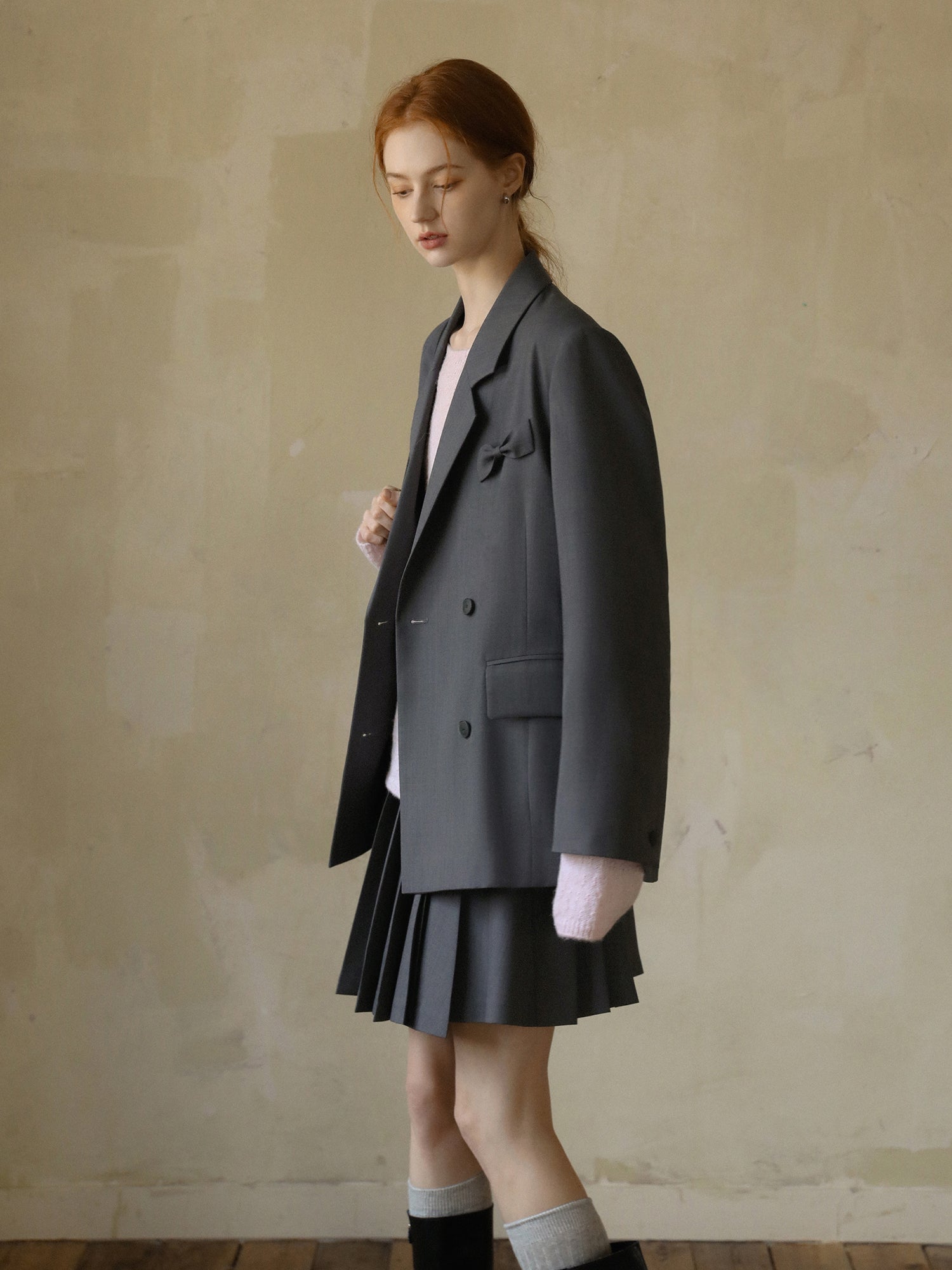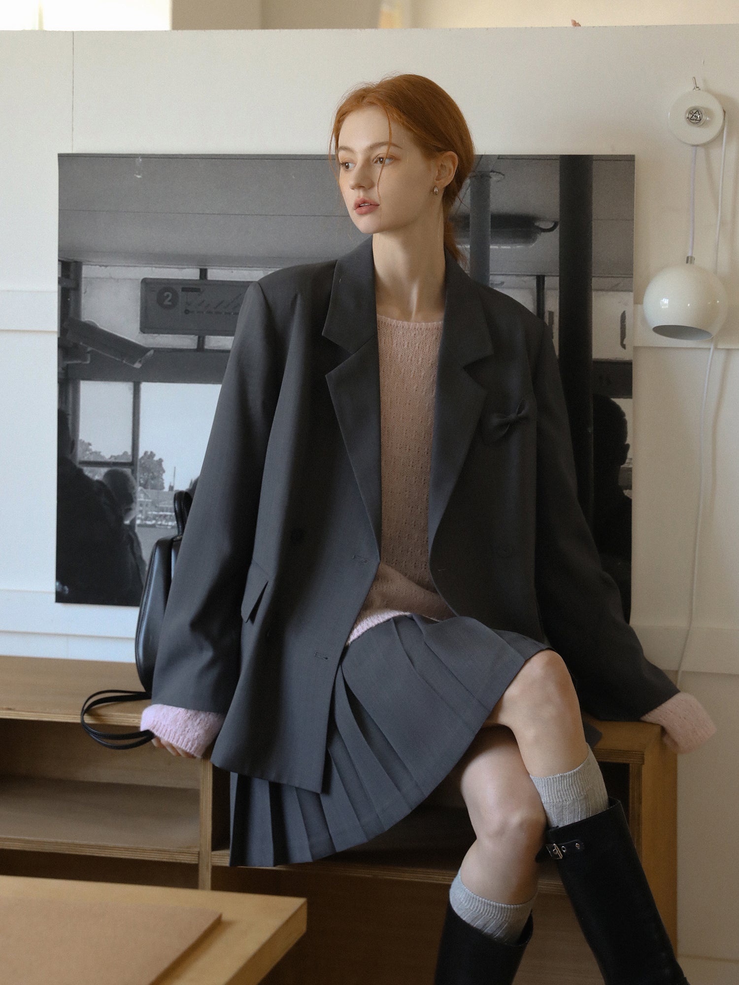 Chic Bow Detail Blazer & Belted Pleated Skirt