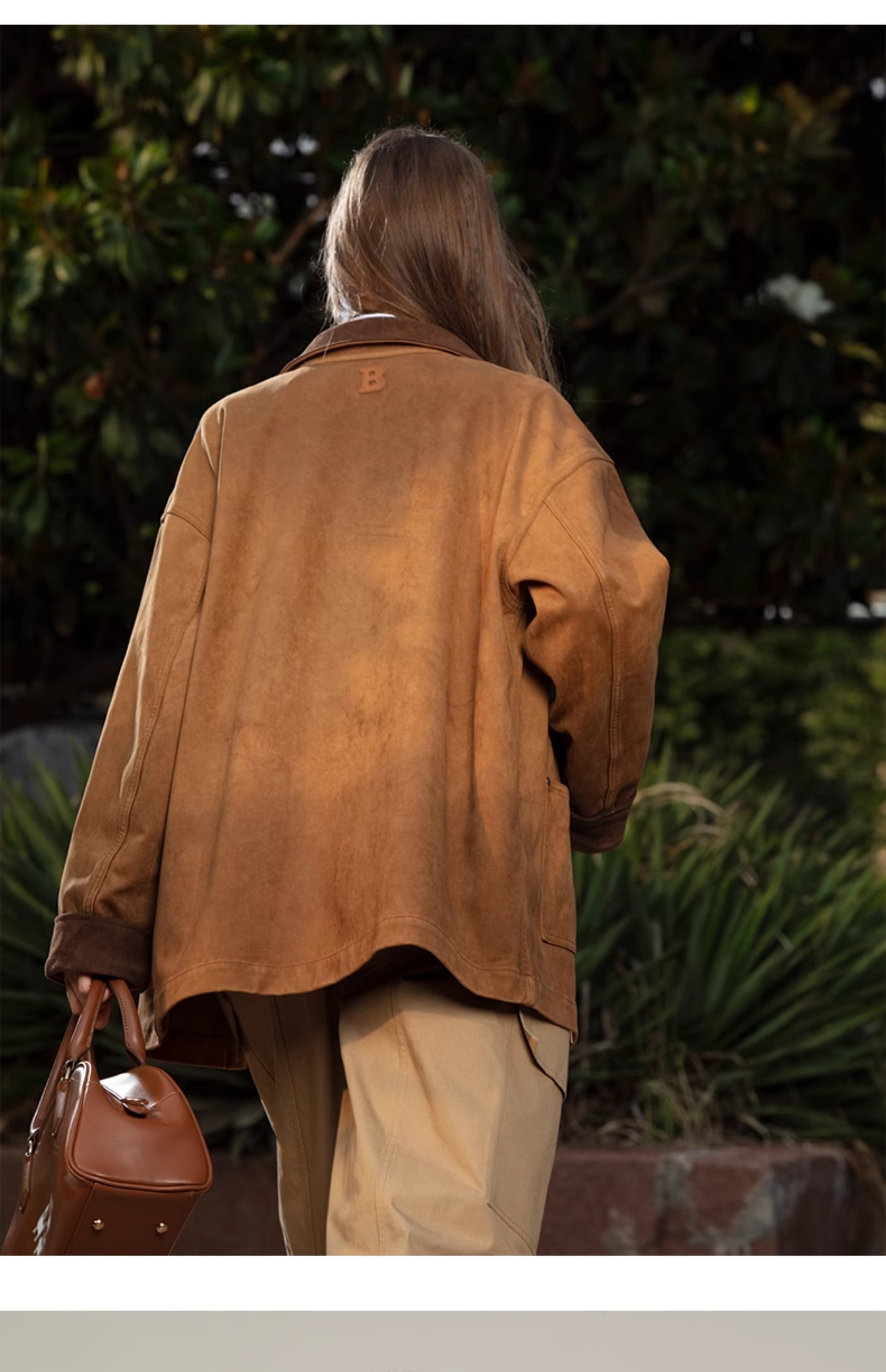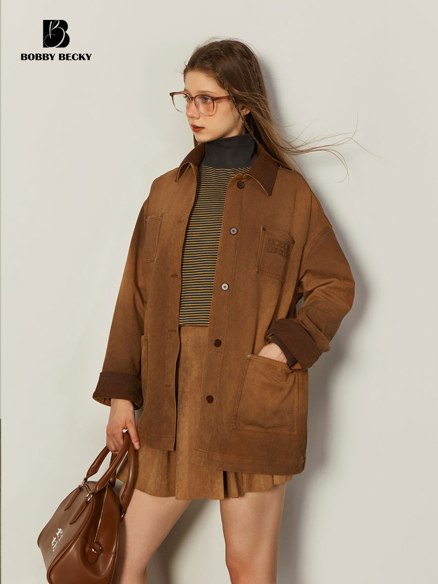 Faux Suede Boxy Jacket And Pleated Mini Skirt
