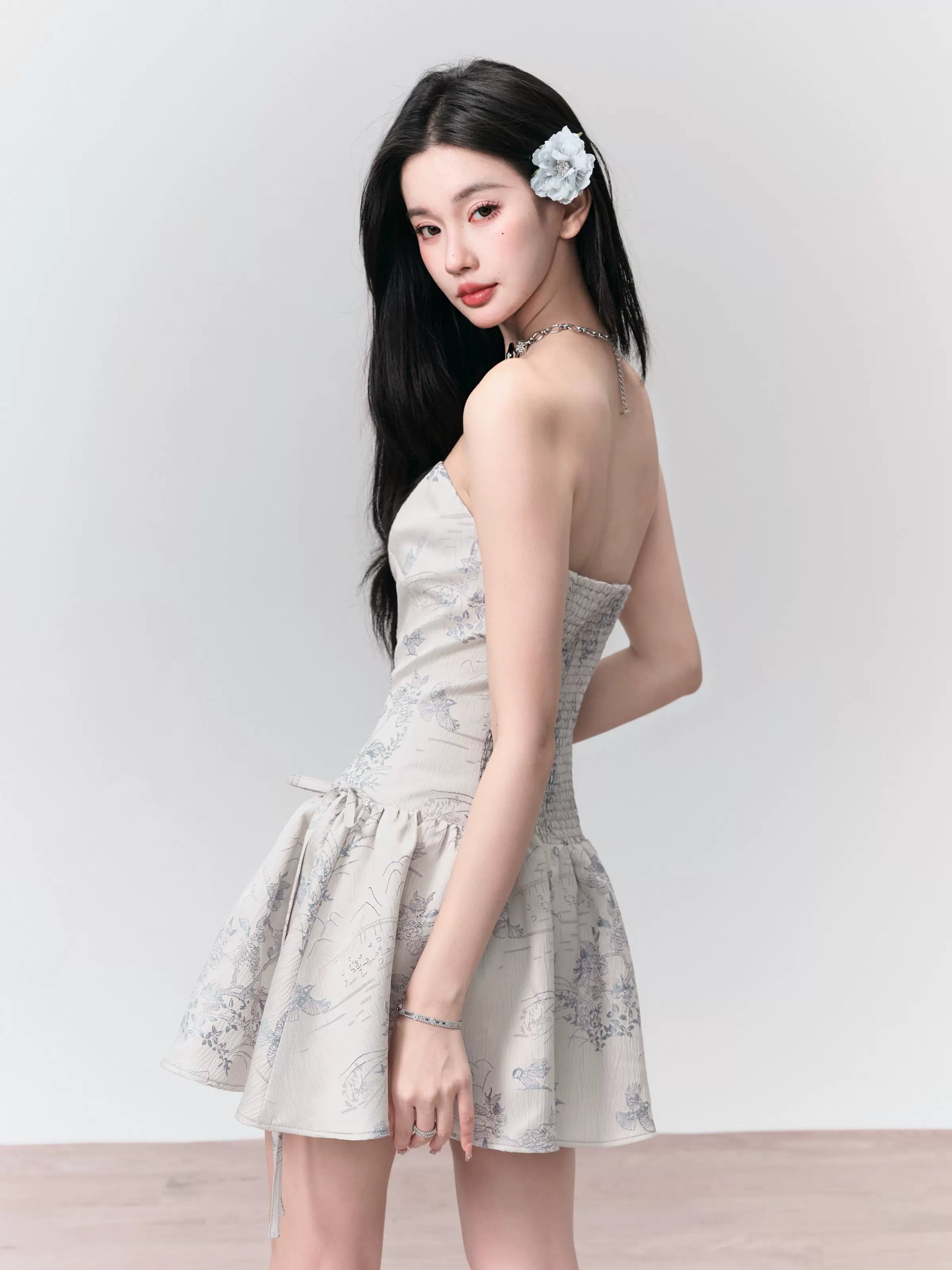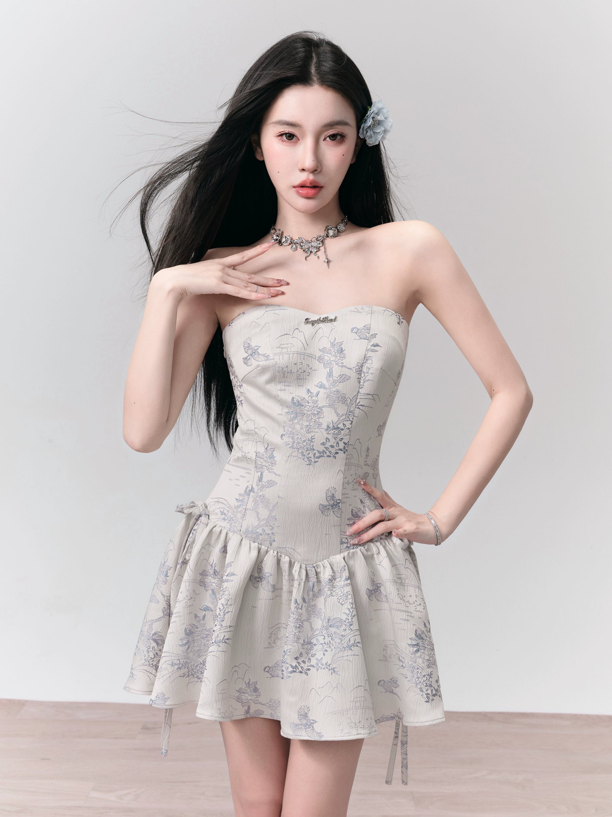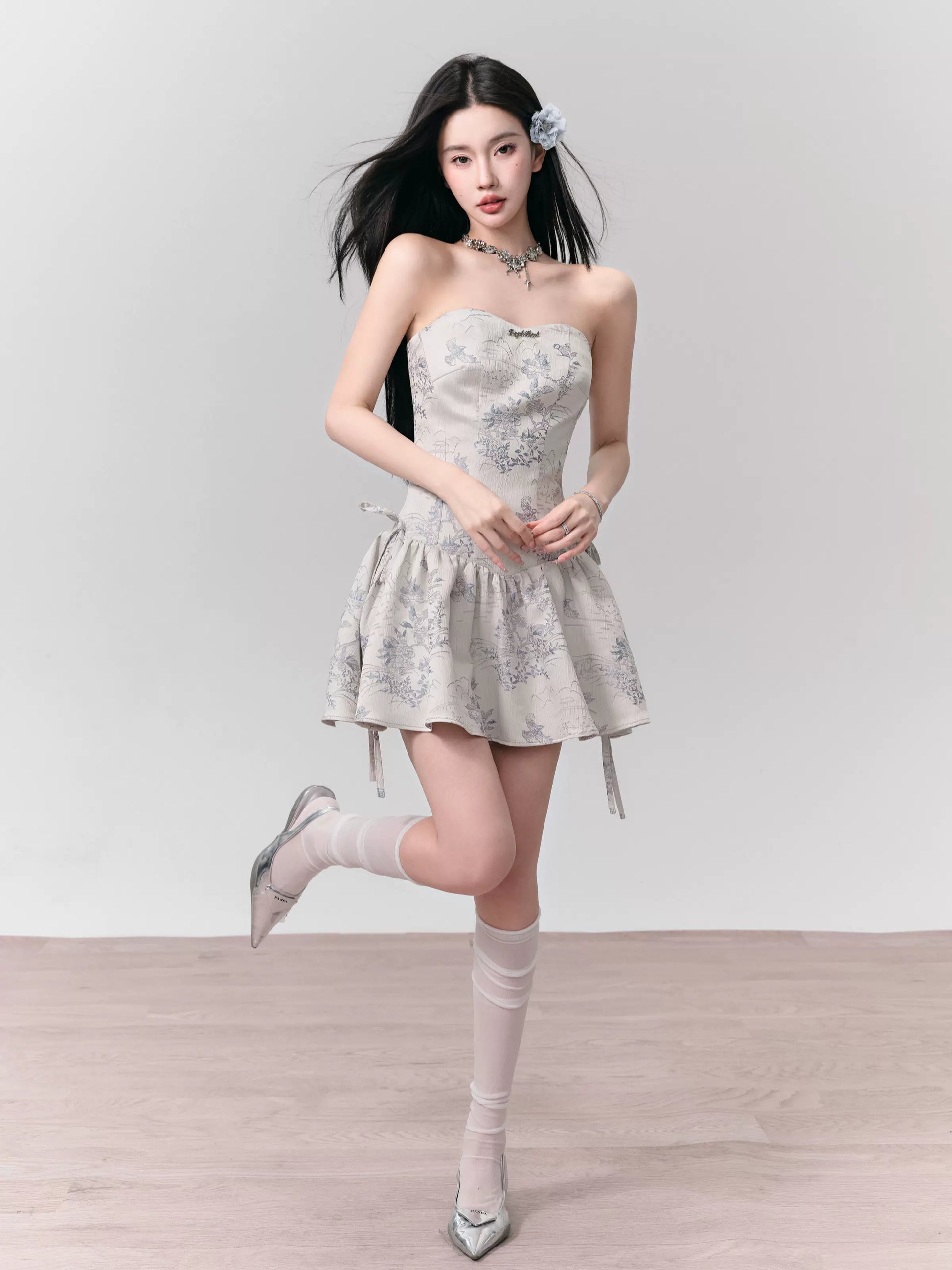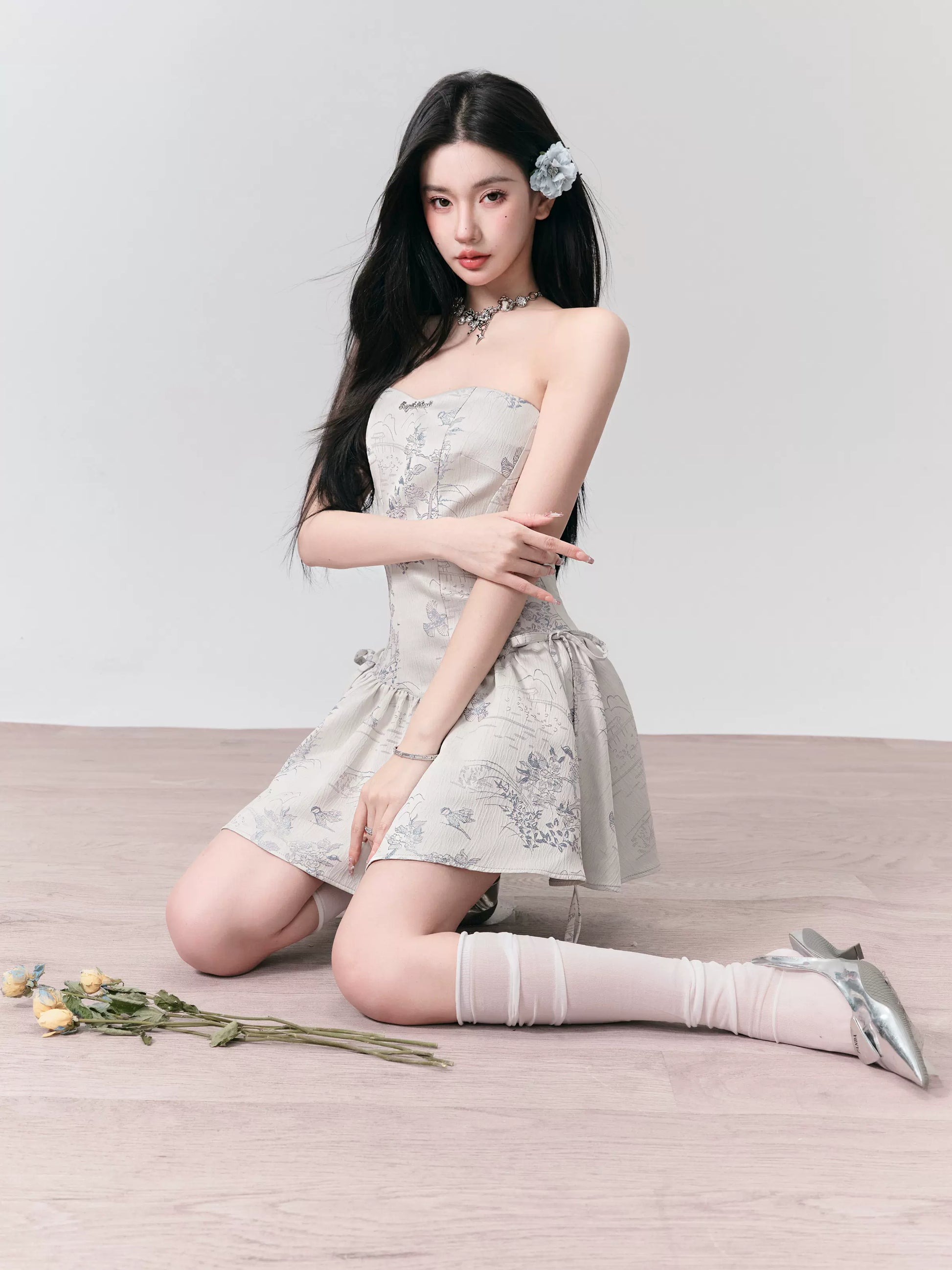 Floral Embroidered Jacquard Mini Tube Top Dress