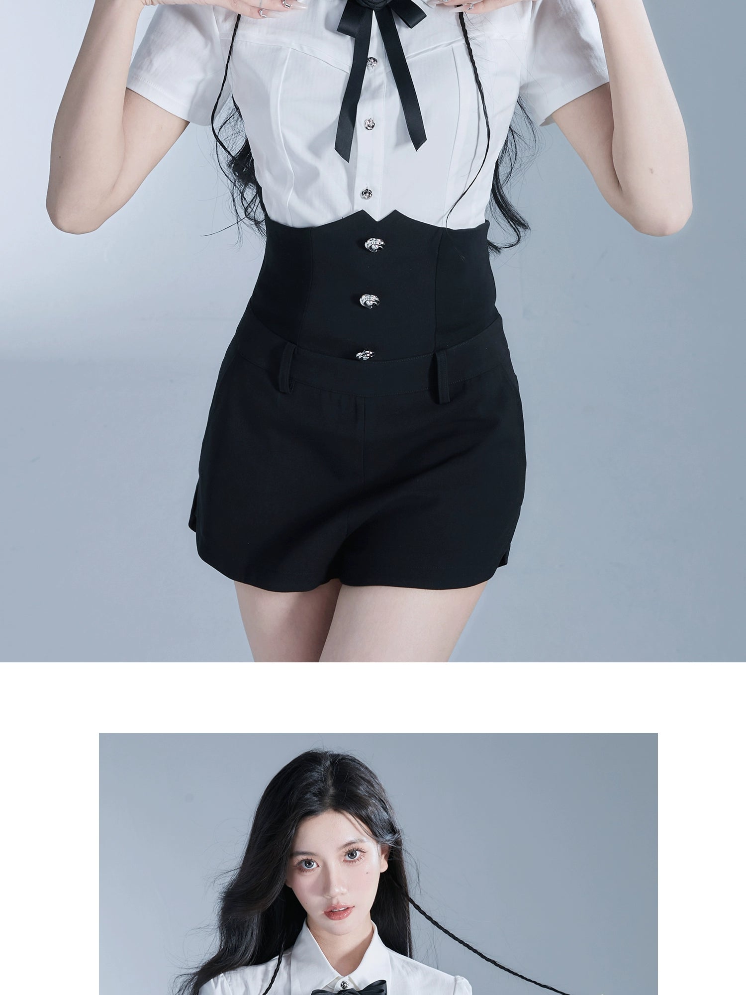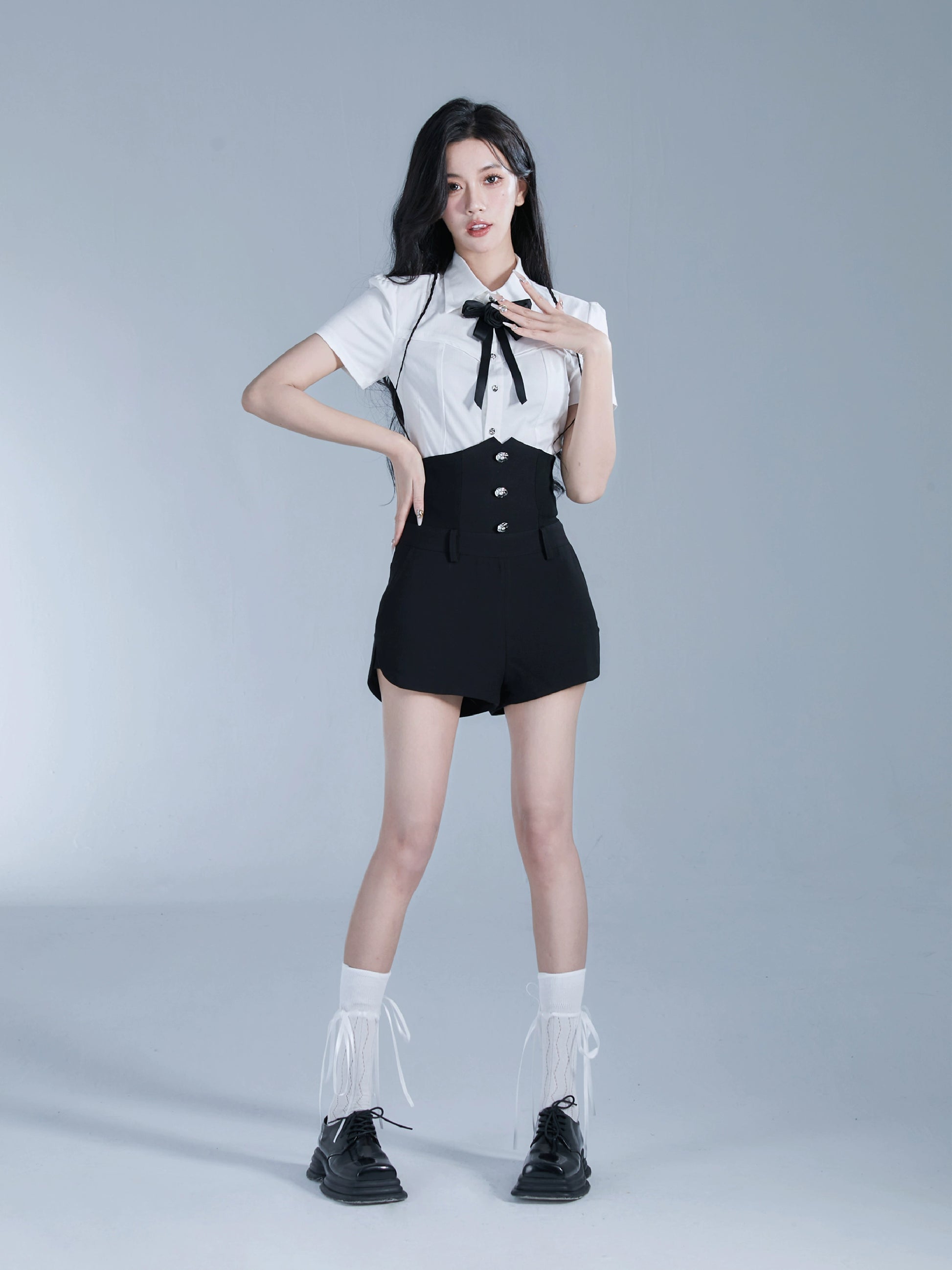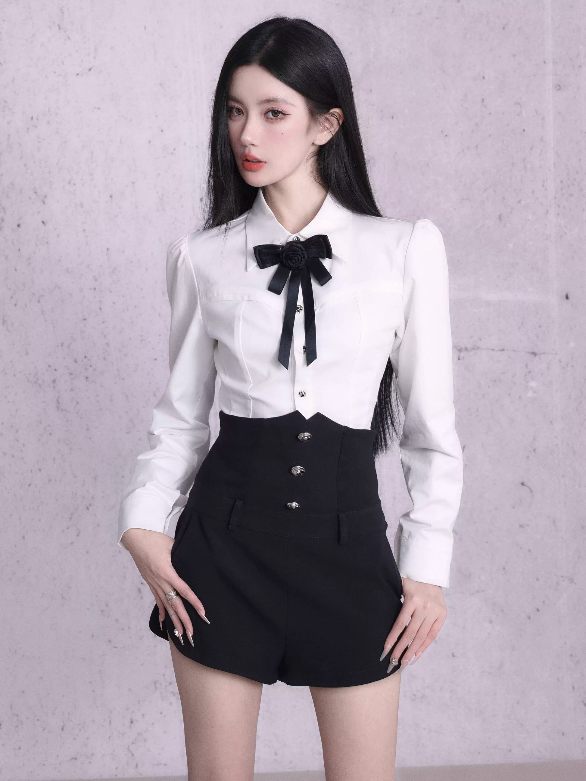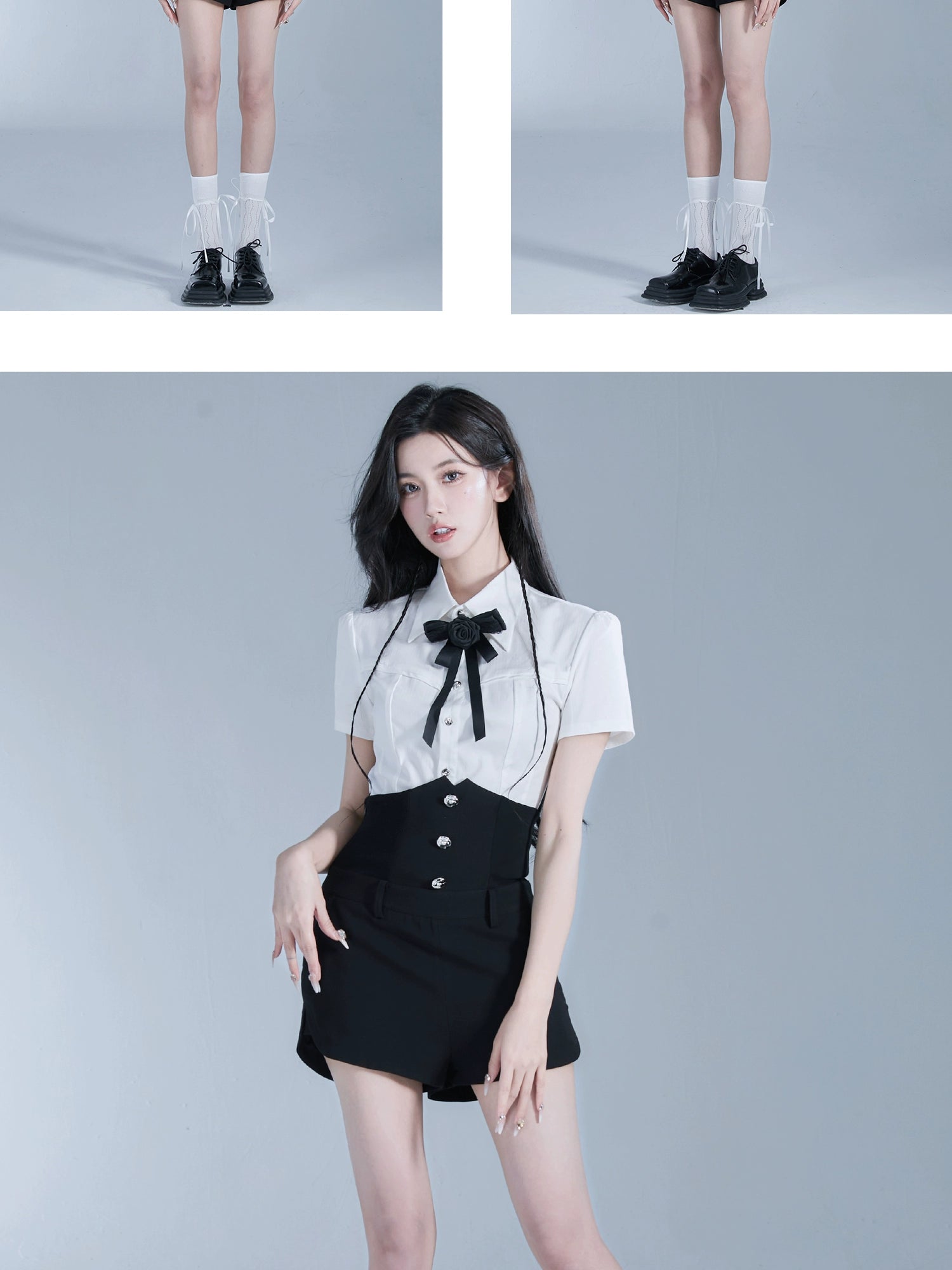 Mix And Match Rose Bow Shirt And High Waisted Hot Pants
