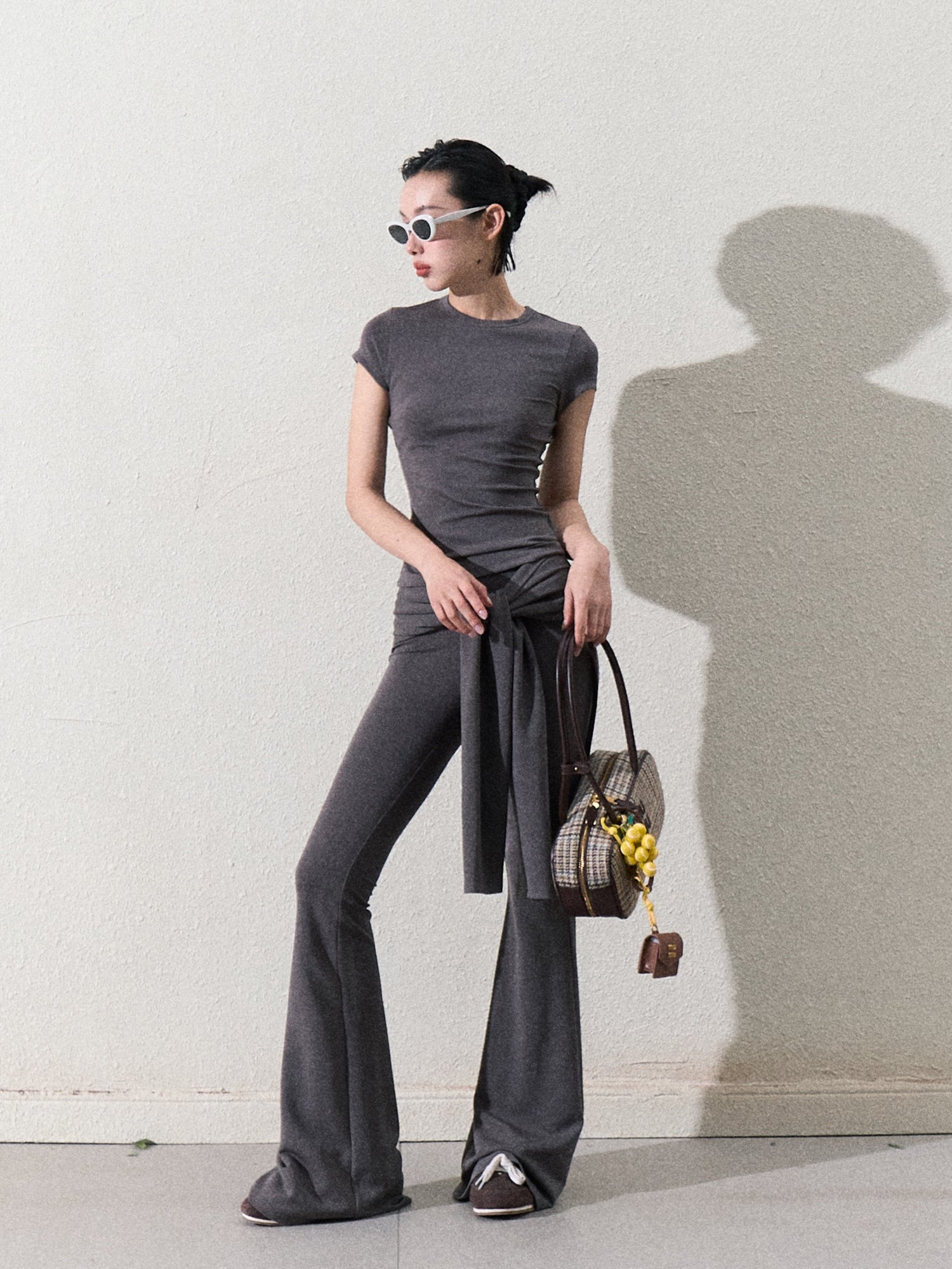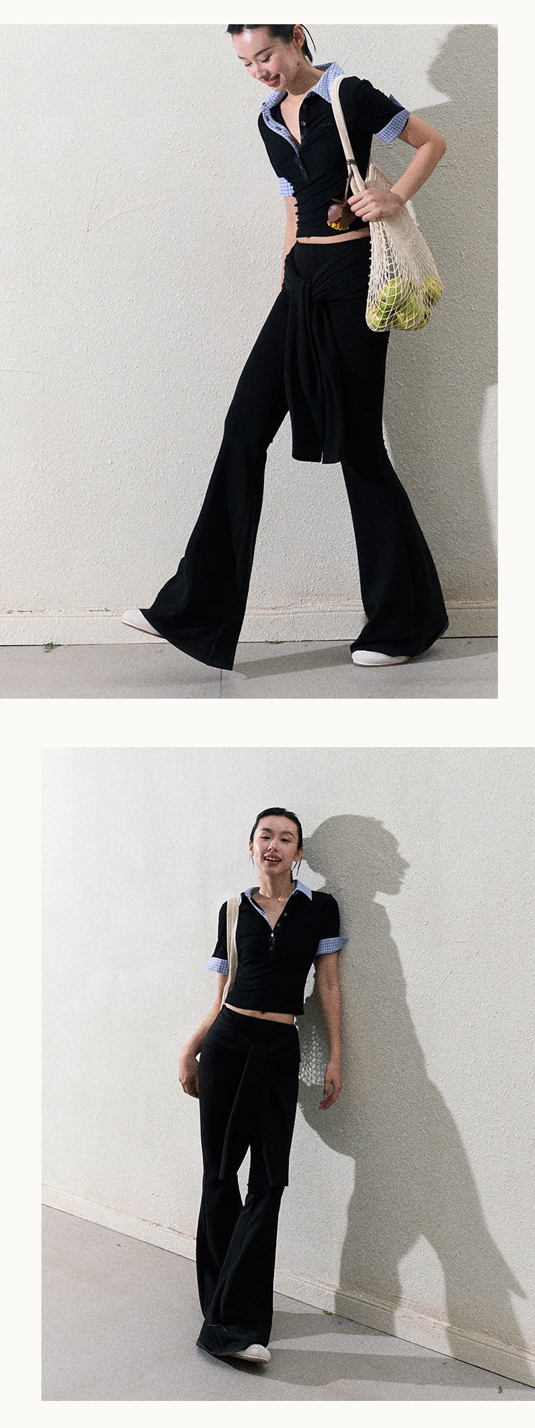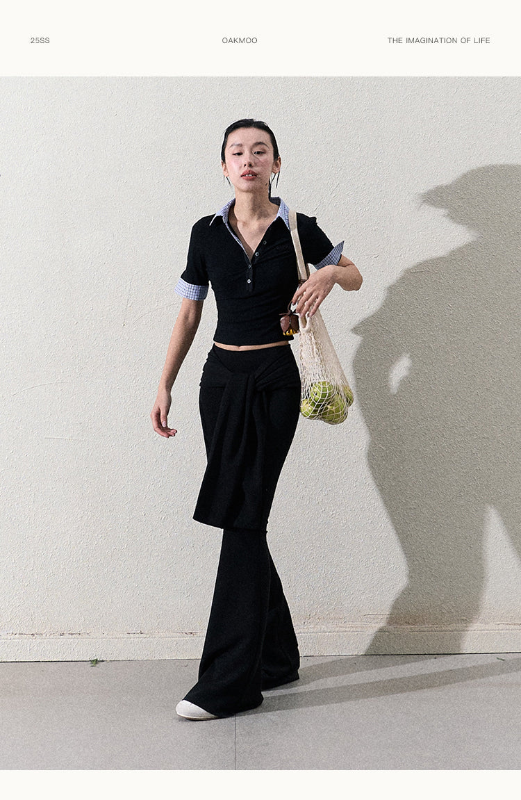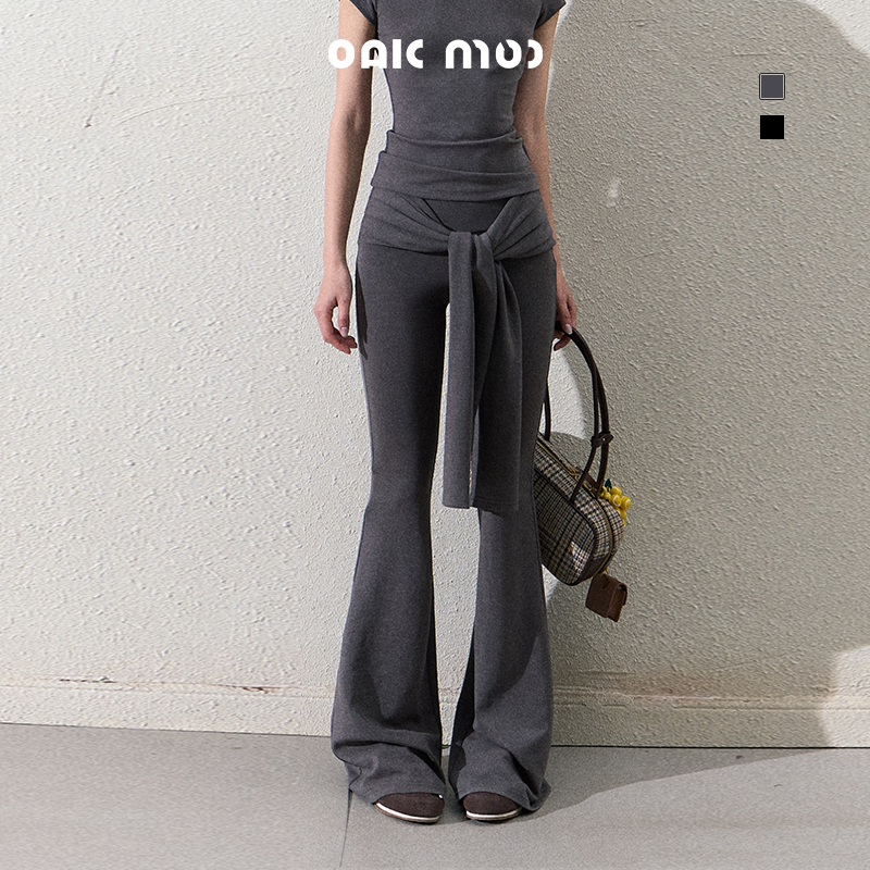 Slim Fit Tie Waist Flared Knit Pants