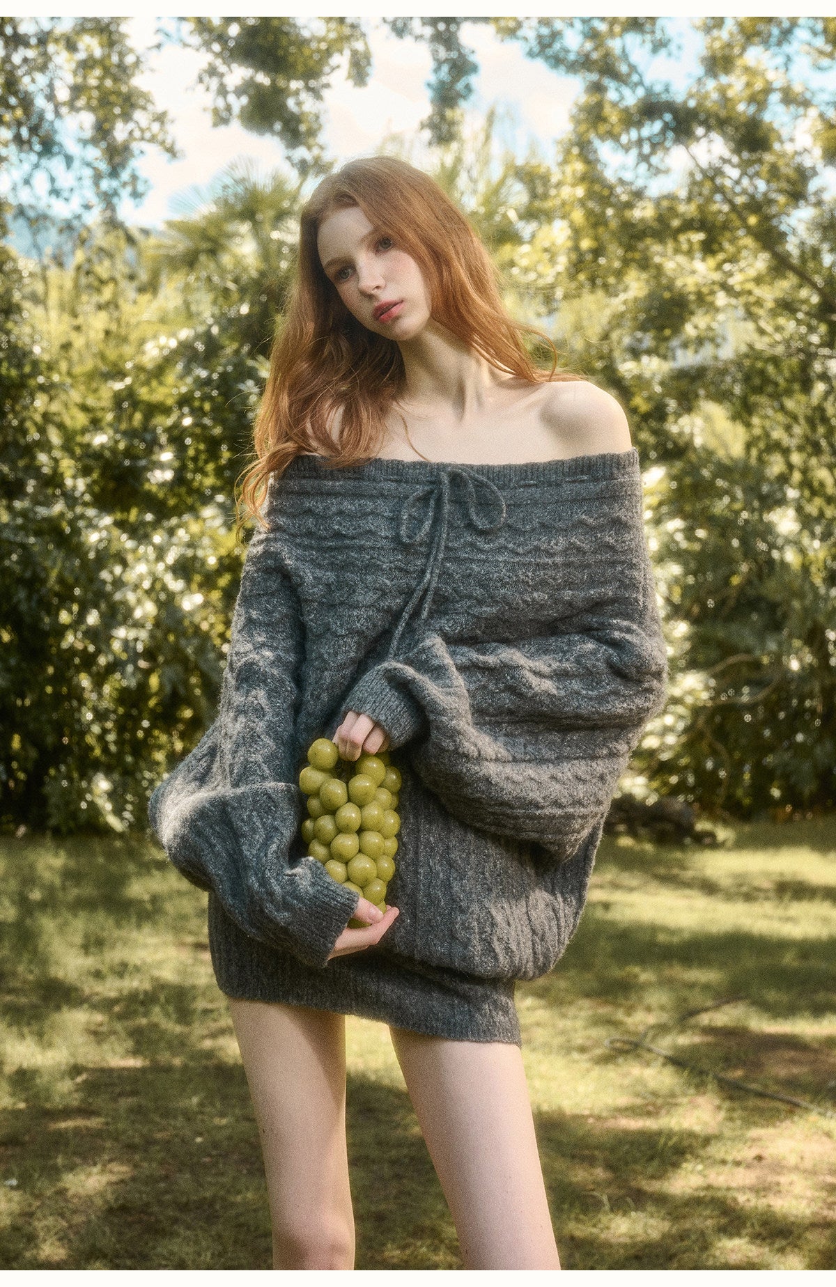 Slouchy Off-Shoulder Knit Top, Skirt & Shorts