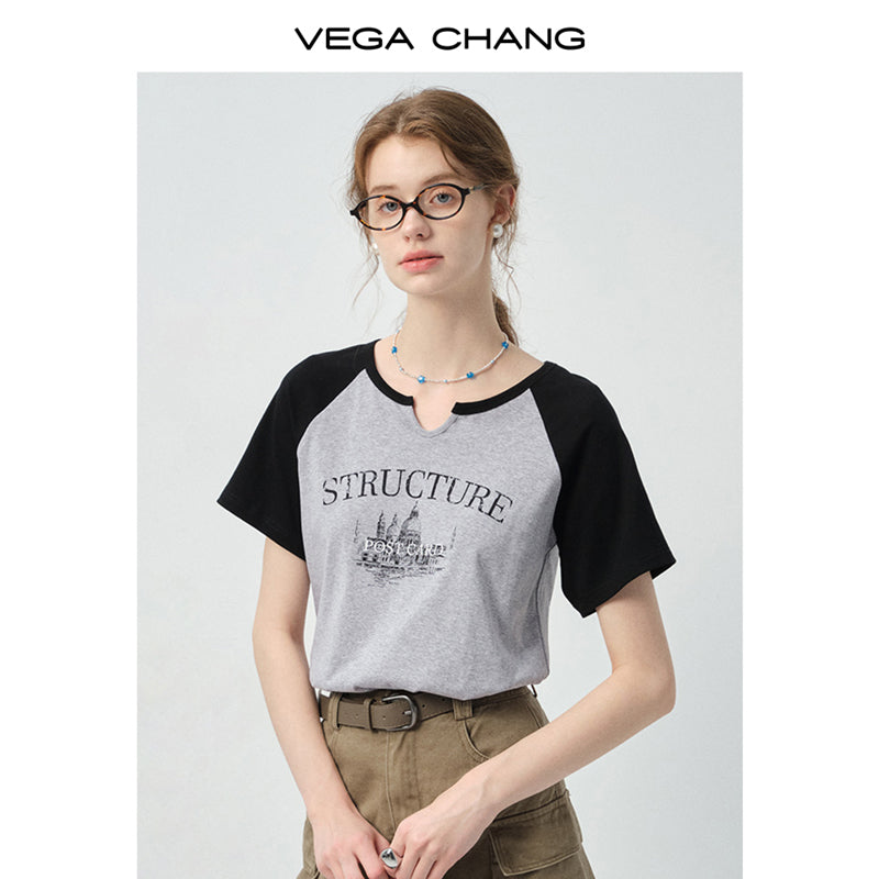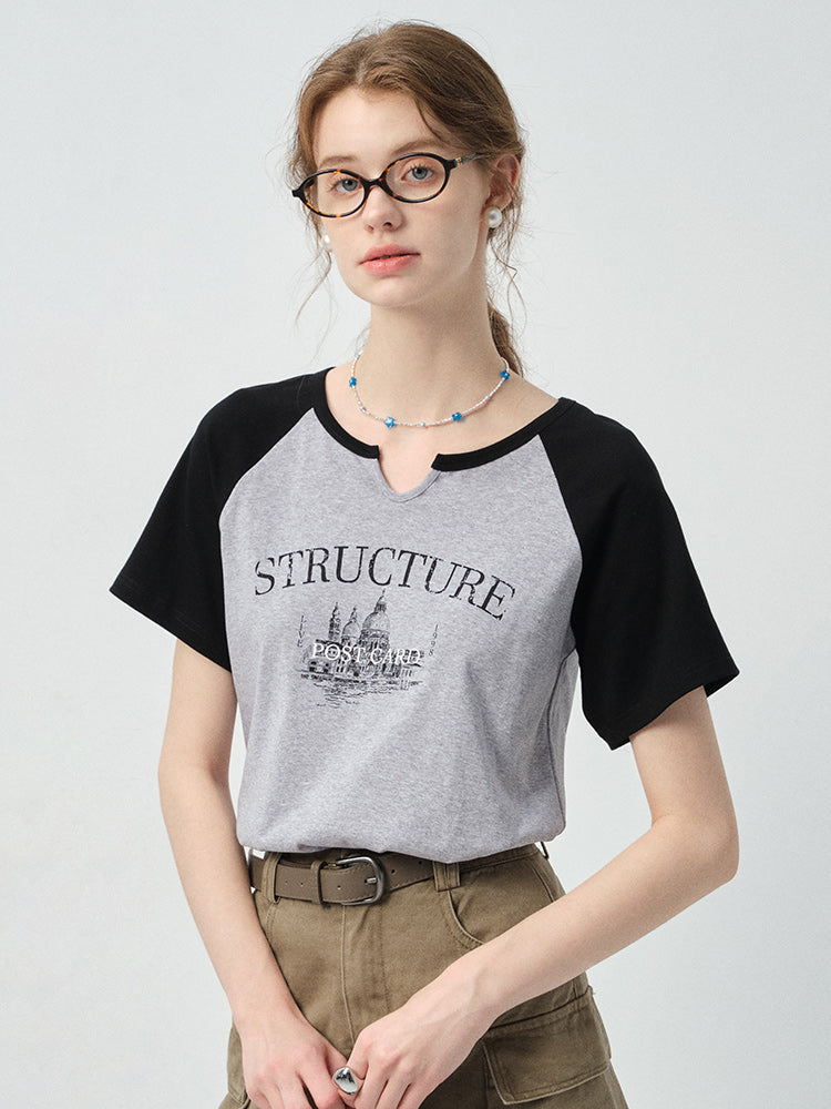 Soft Cotton Notch Neck Raglan Tee