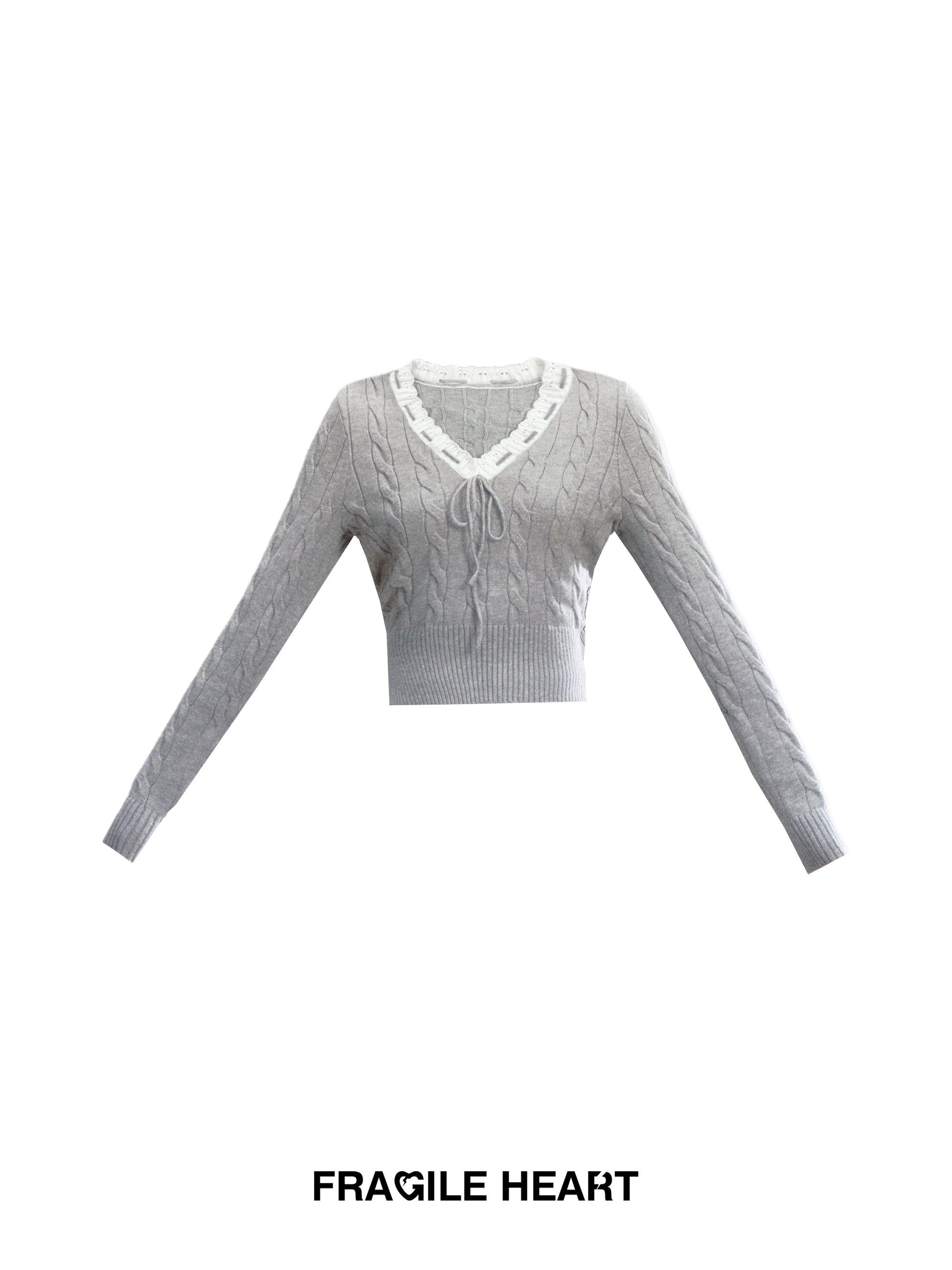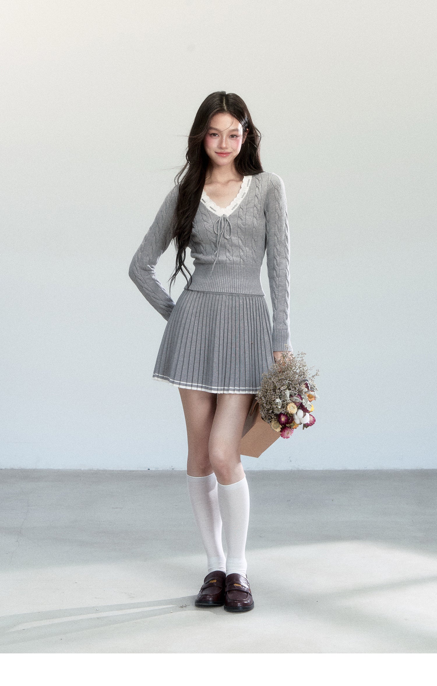 V-Neck Cable-Knit Top And Pleated A-Line Skirt