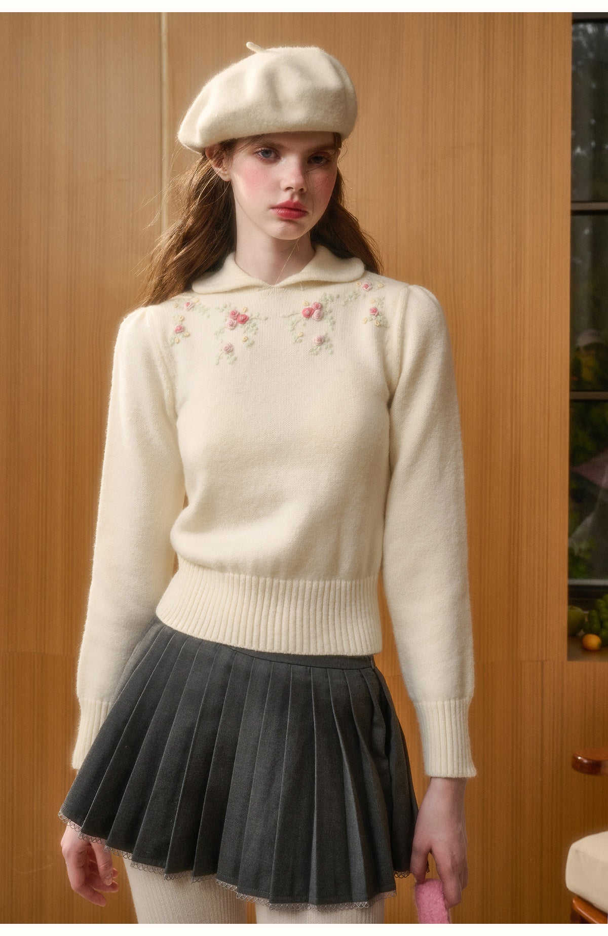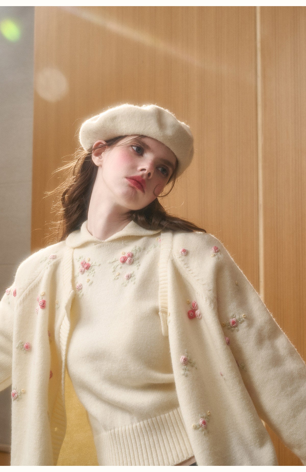 Cotton Blend Floral Embroidery Knit Top