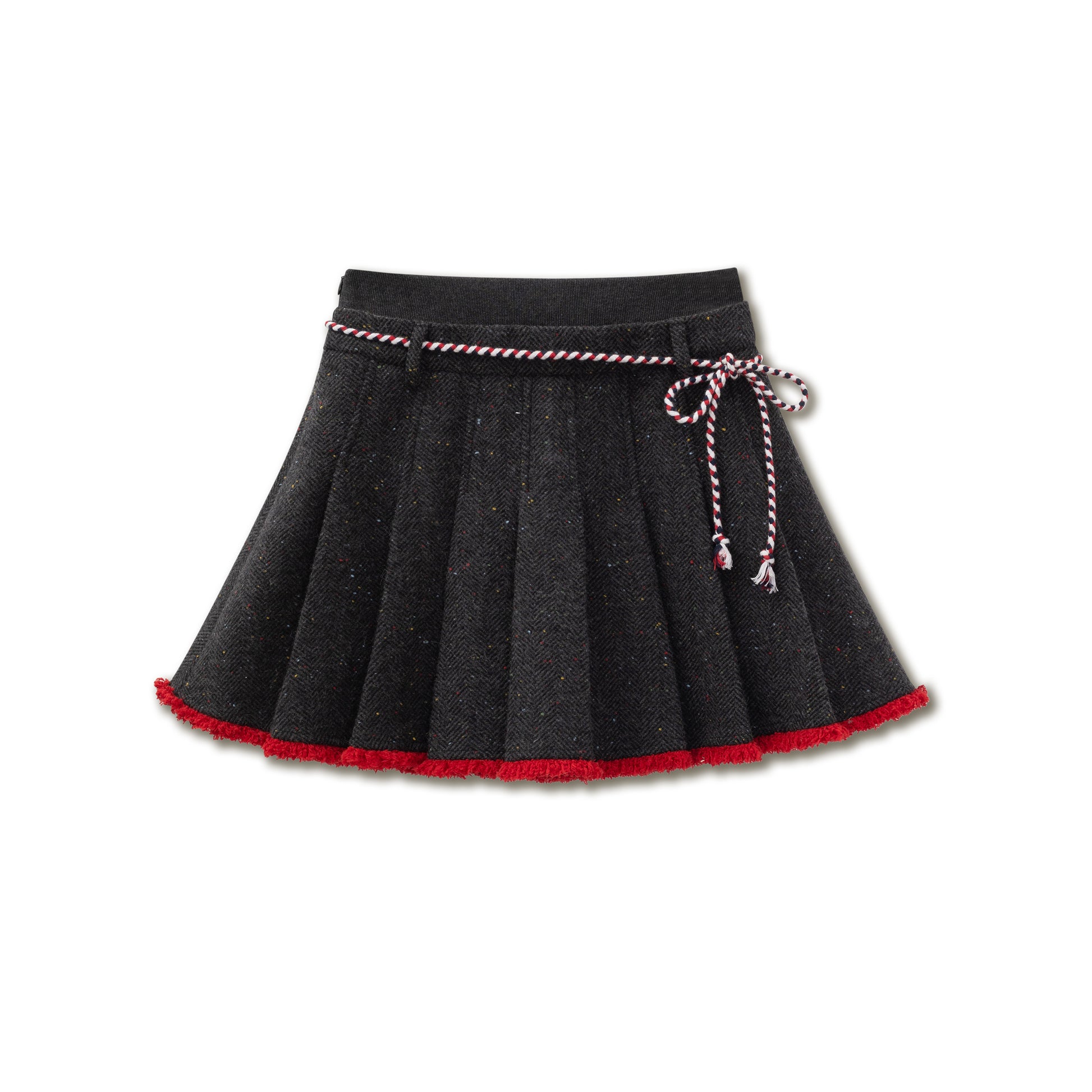 Fringed Contrast Varsity Jacket & Pleated Skirt