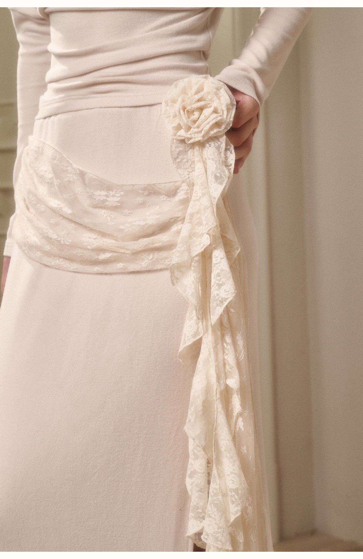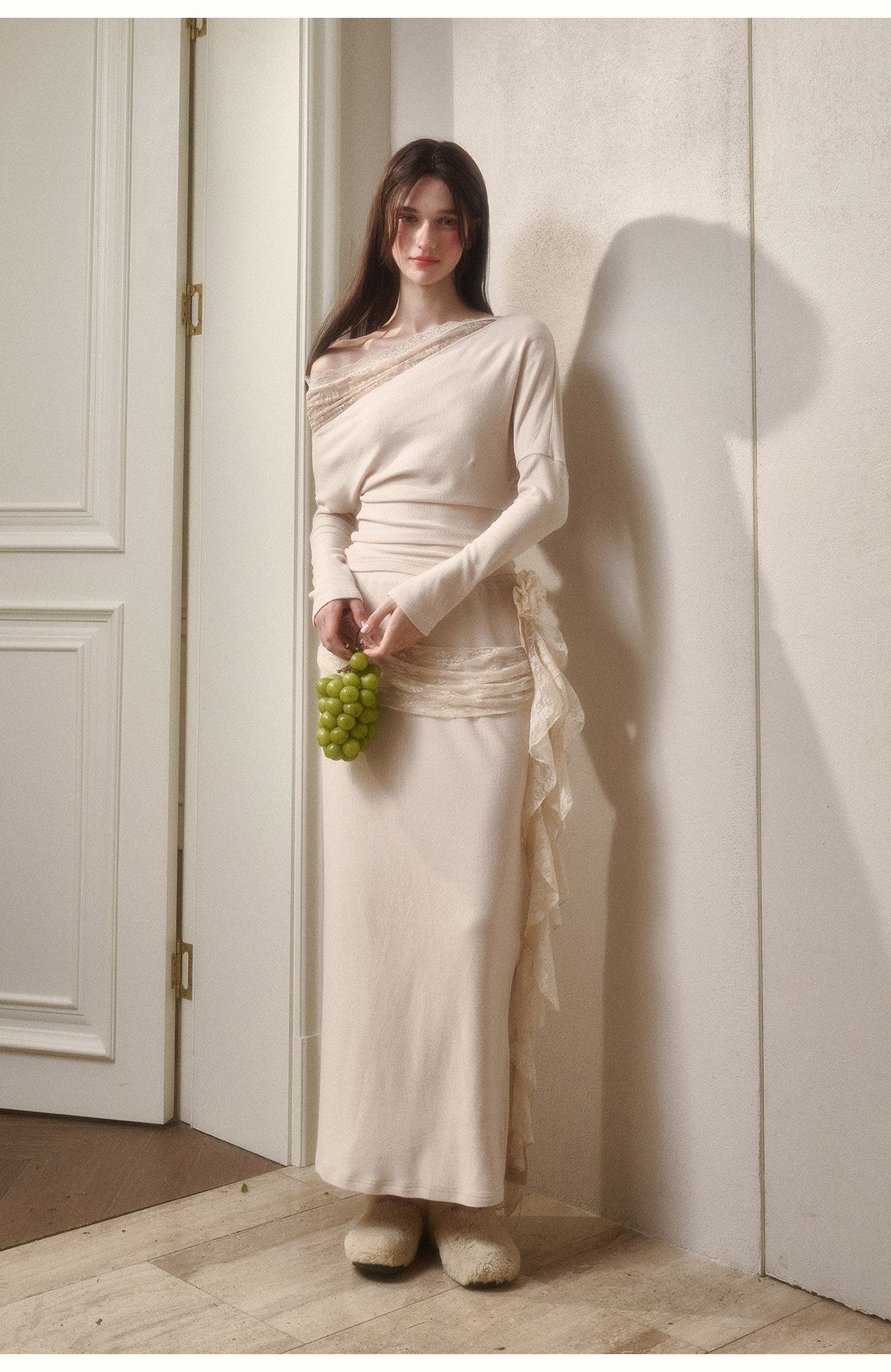 Lace-Detail Asymmetric One-Shoulder Top & Slit Skirt