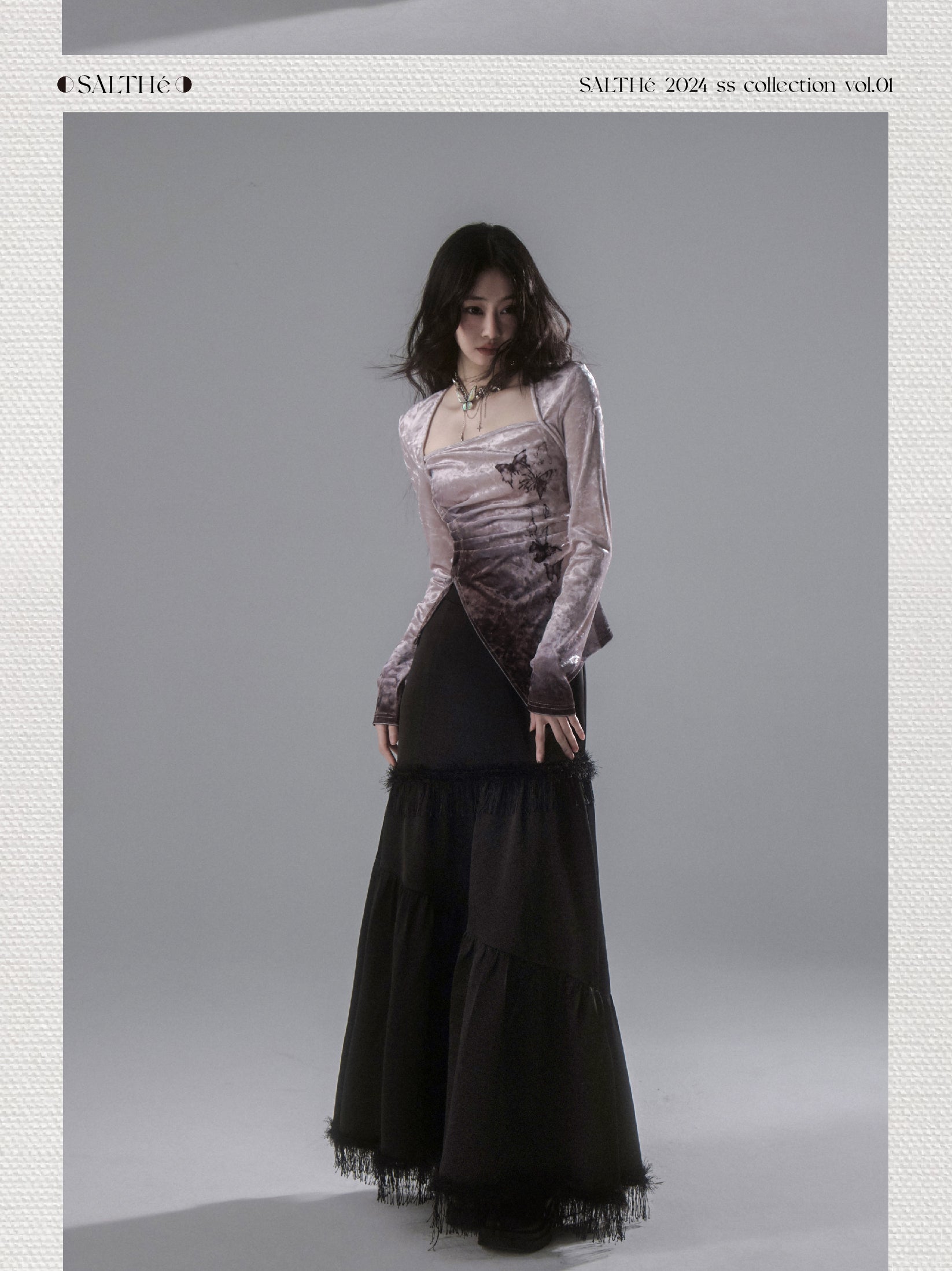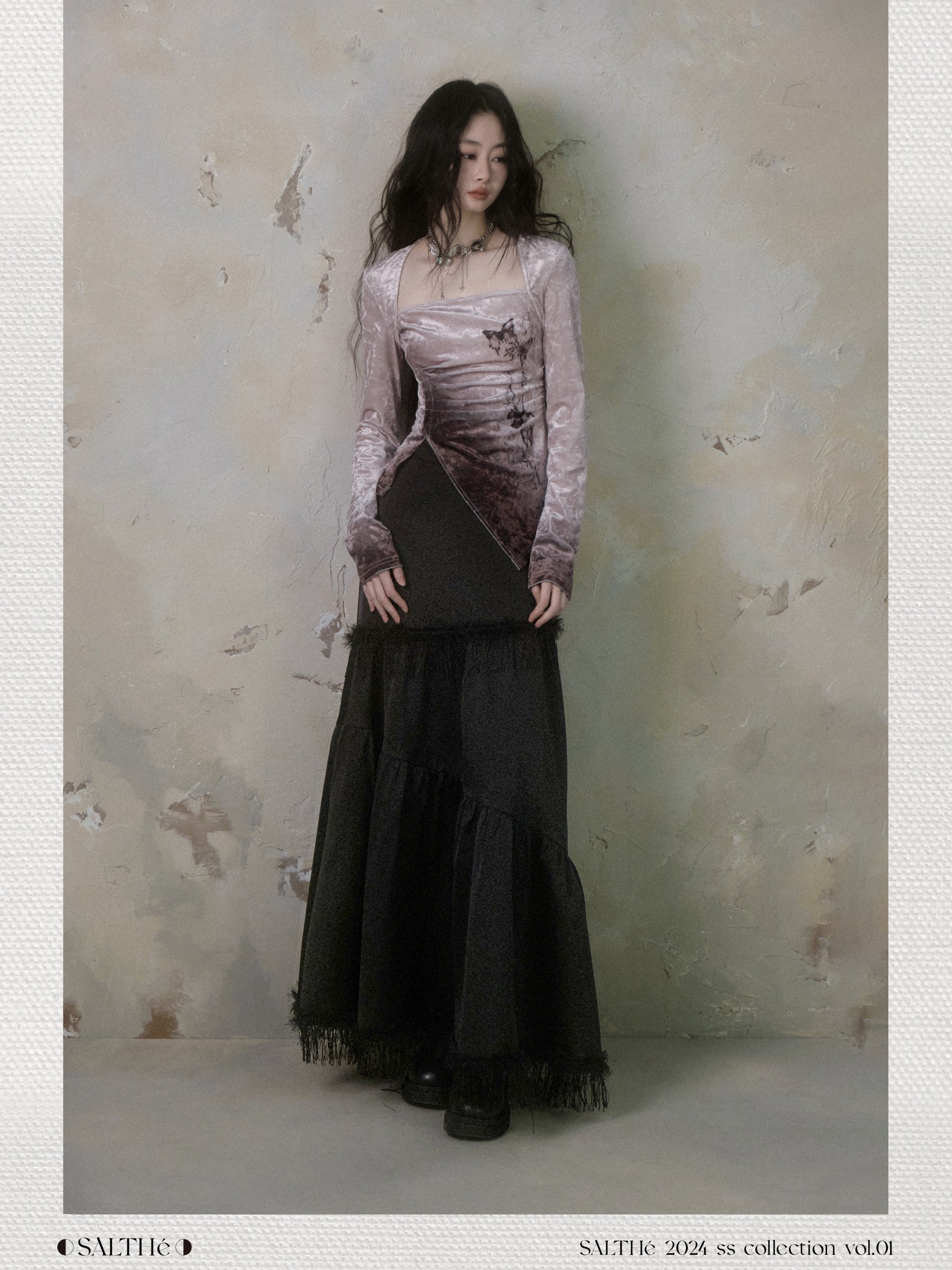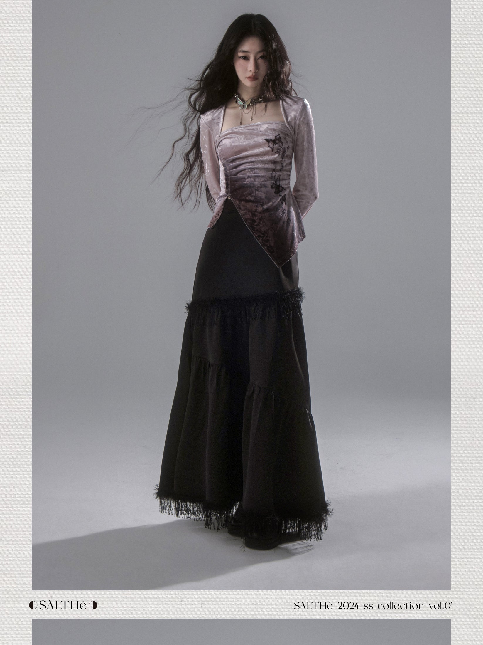 | Size | 着丈 Length | ウェスト Waist | ヒップ Hip | 裾 Hem |