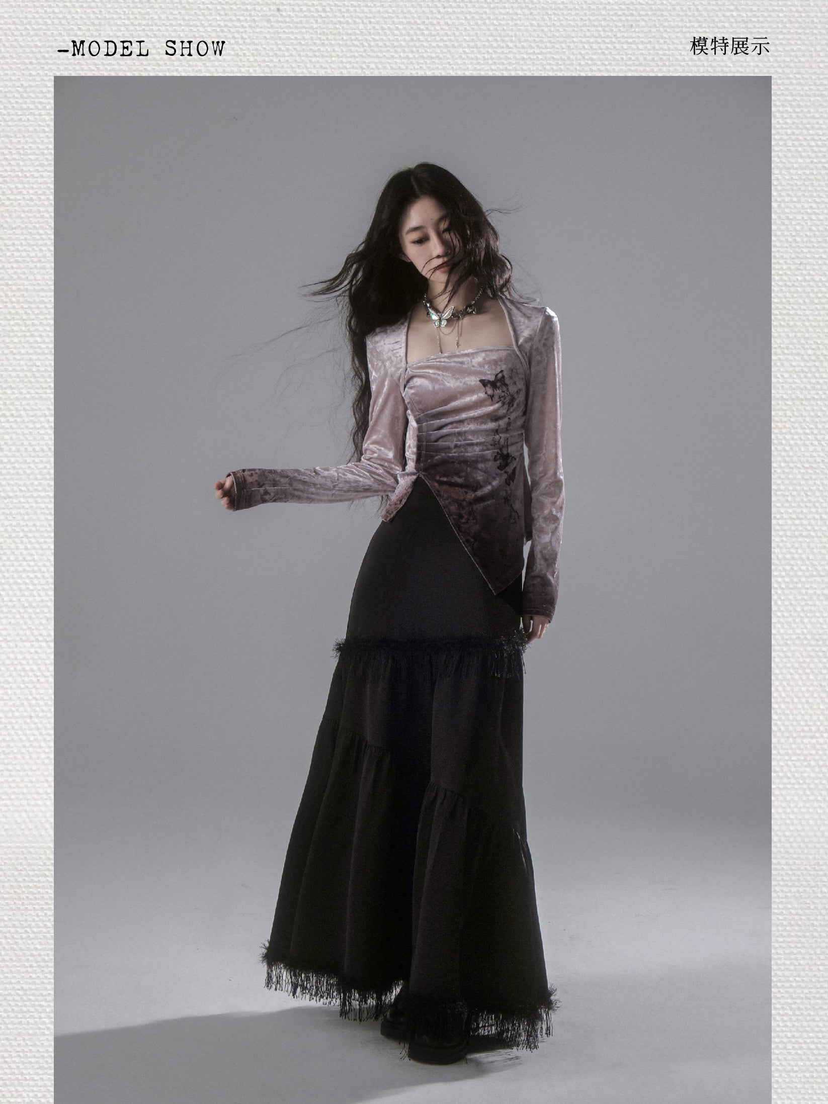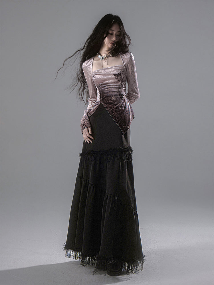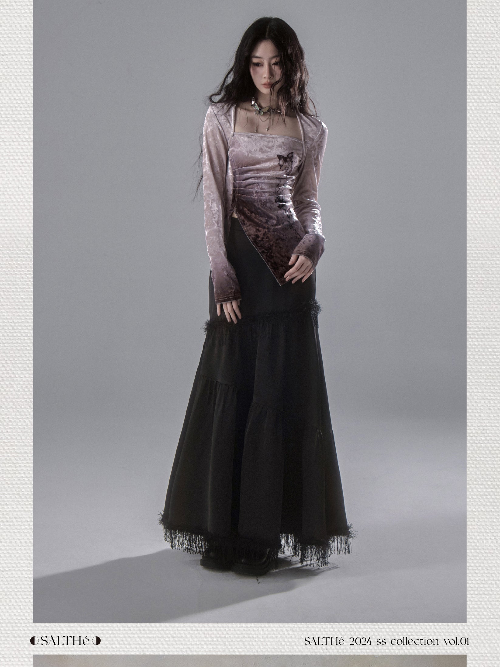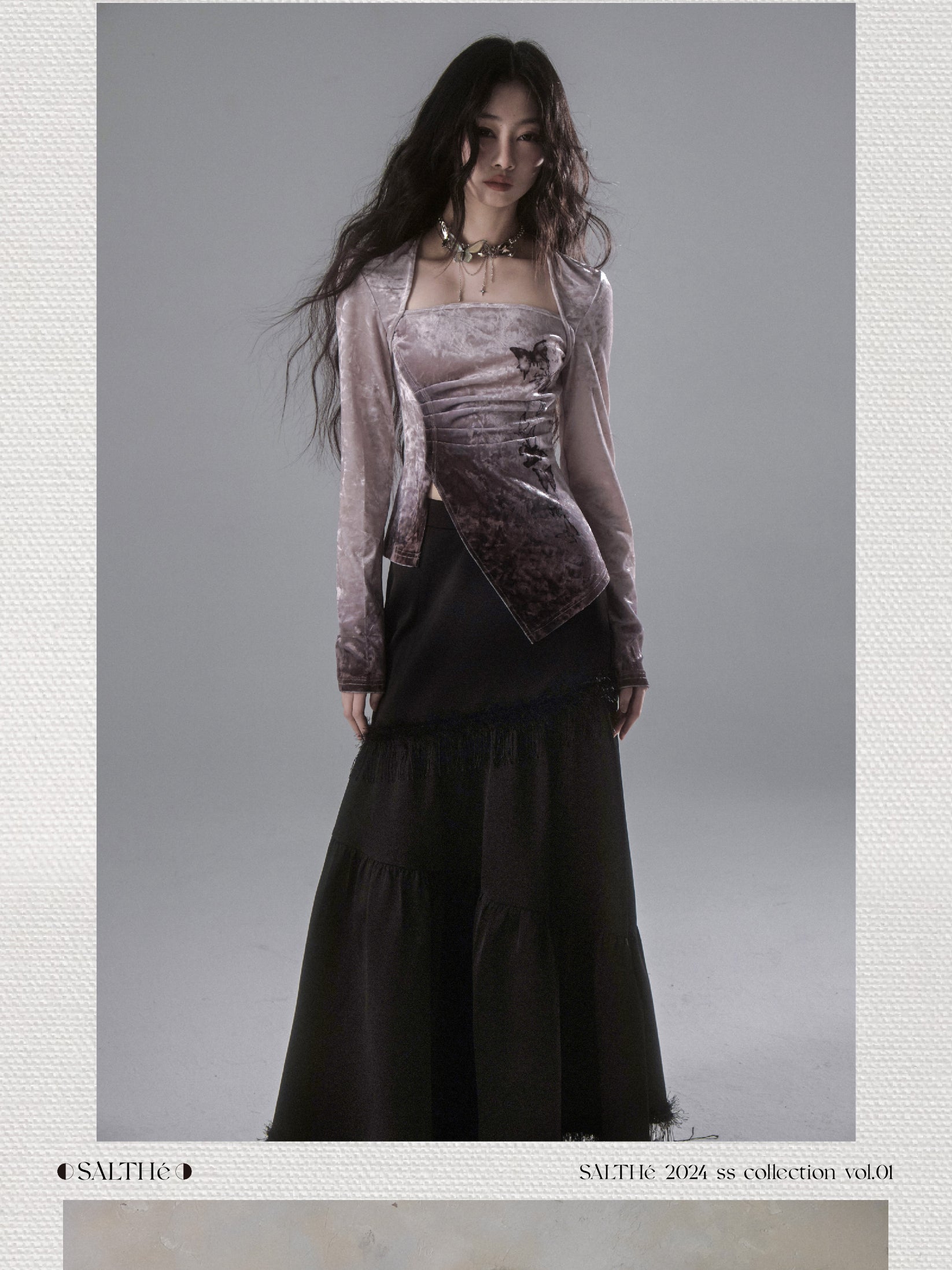 | Size | 着丈 Length | ウェスト Waist | ヒップ Hip | 裾 Hem |