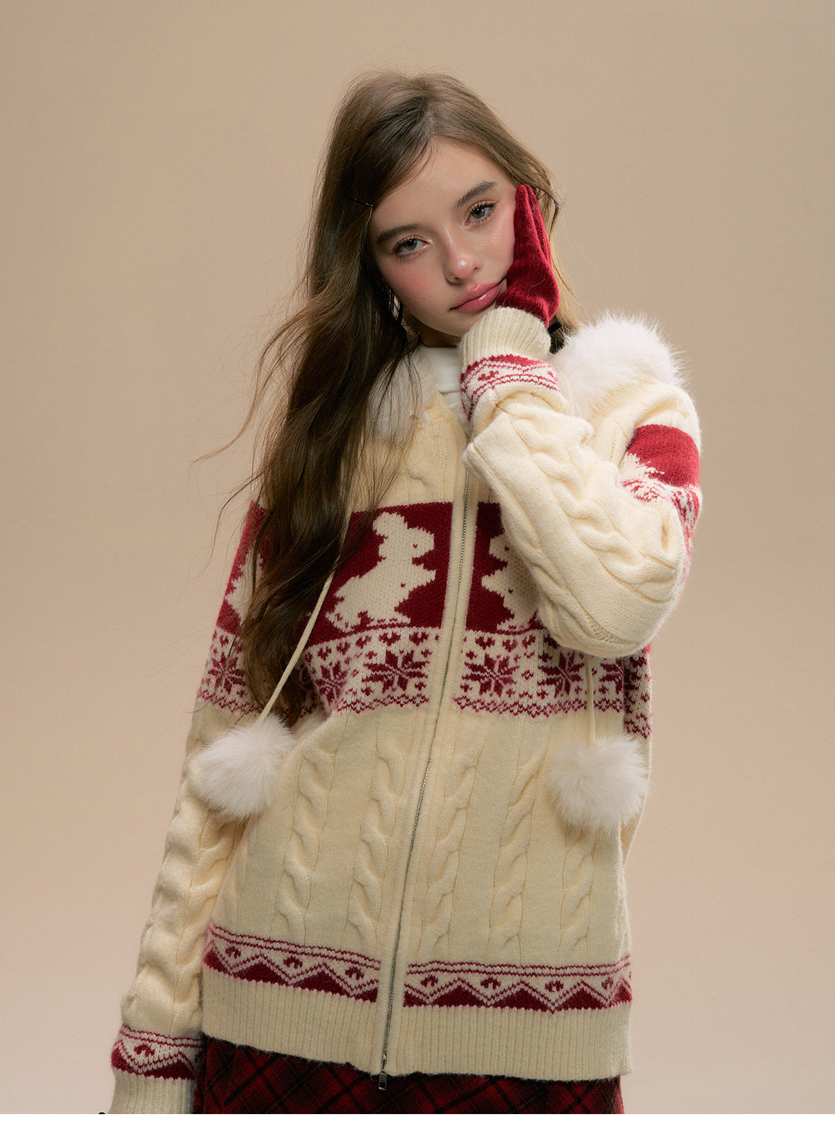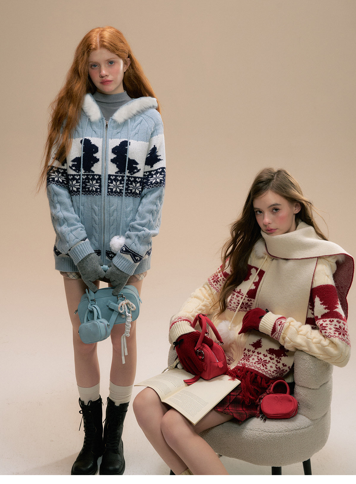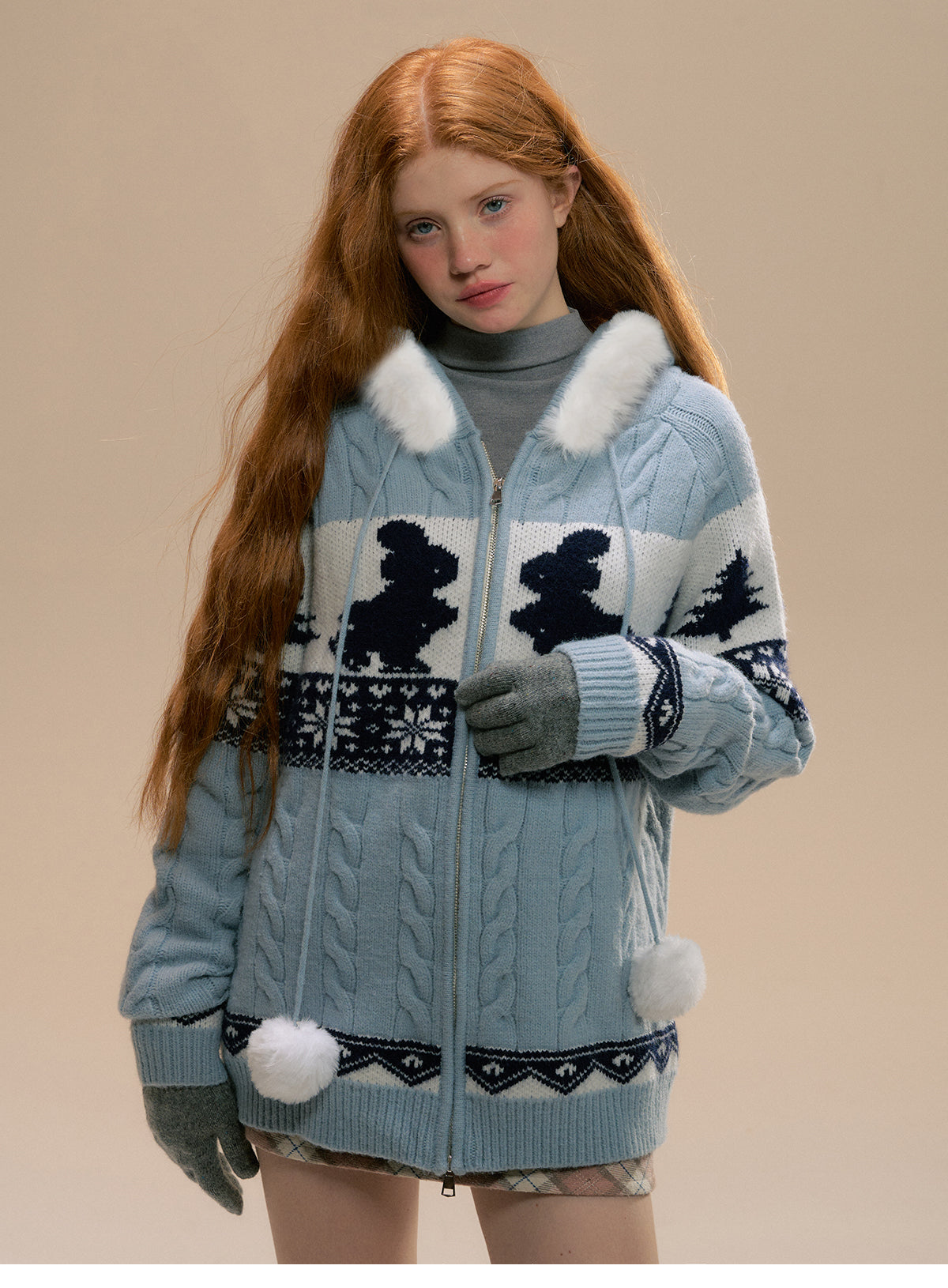 Faux Fur Trimmed Knit Bunny Hoodie And Matching Scarf