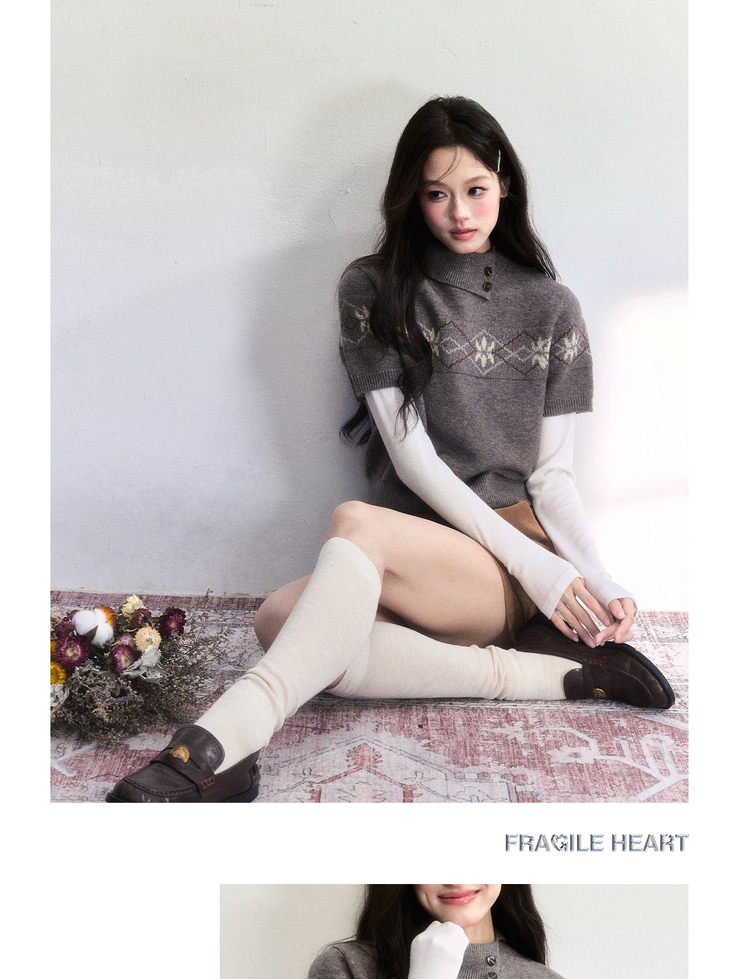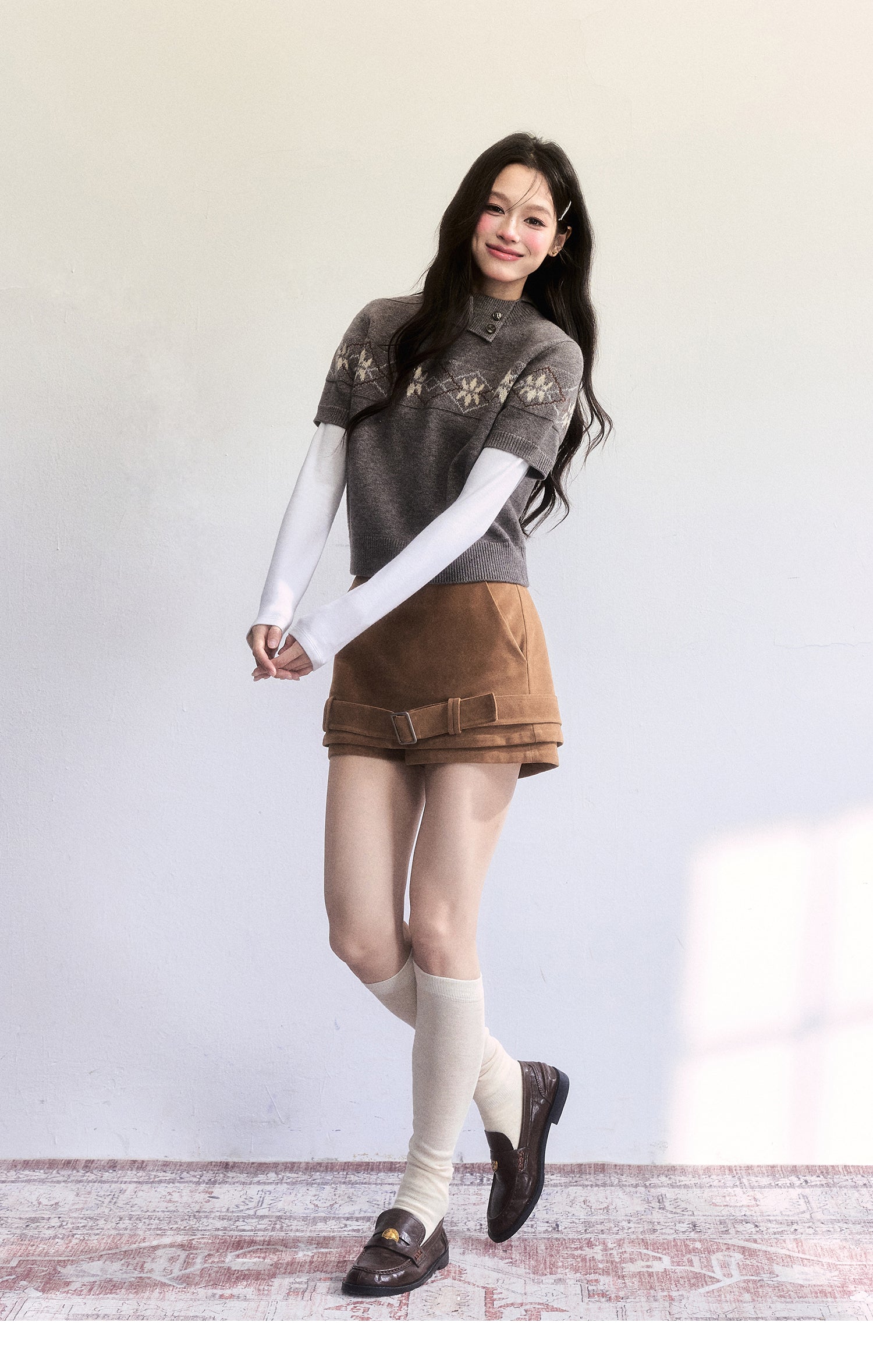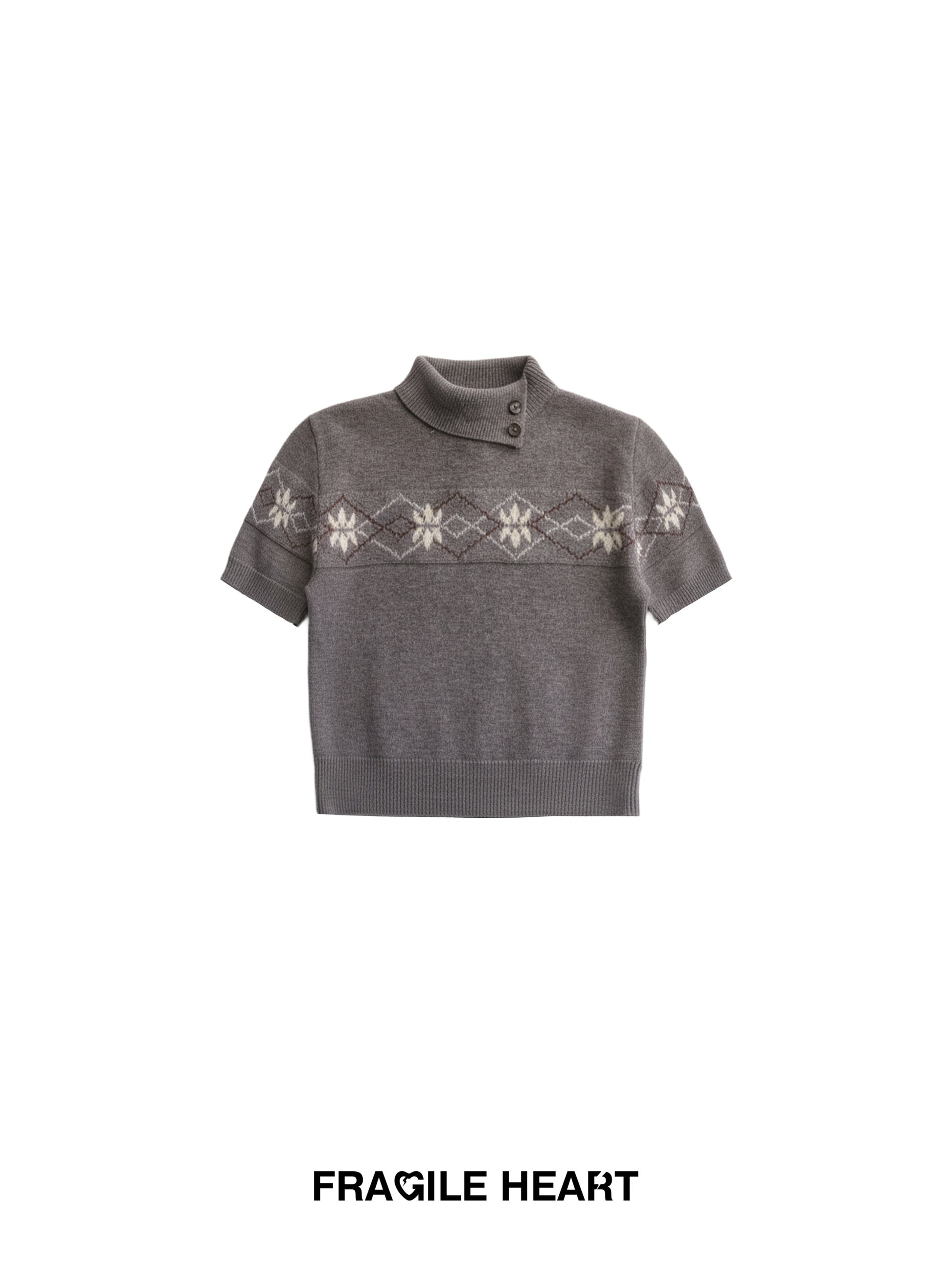 Short-Sleeve Fair Isle Jacquard Knit Top