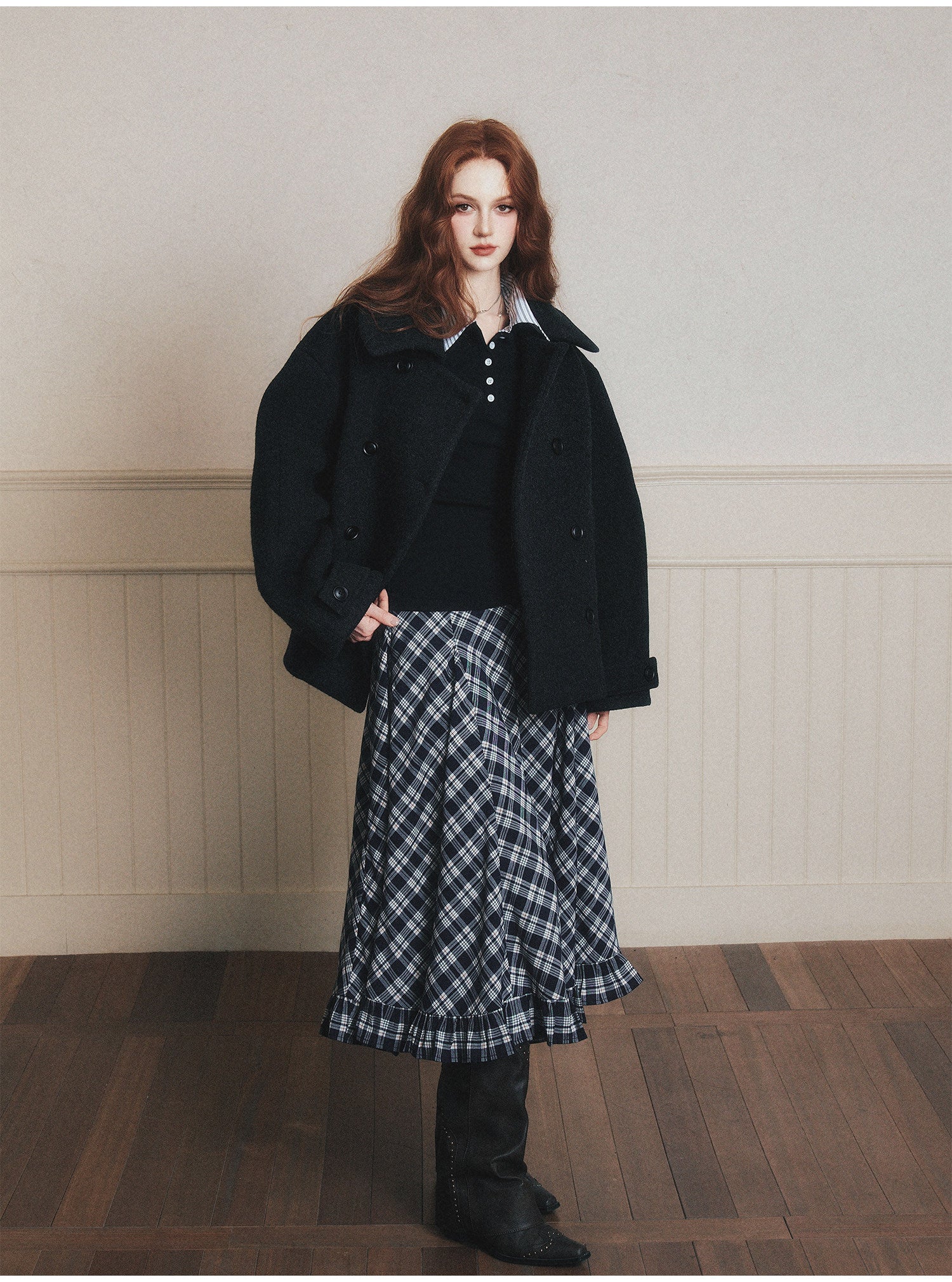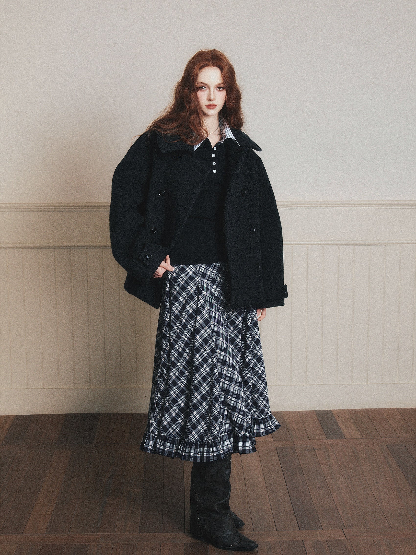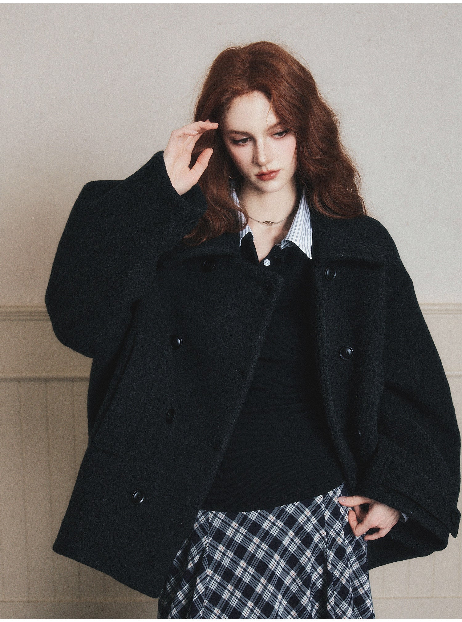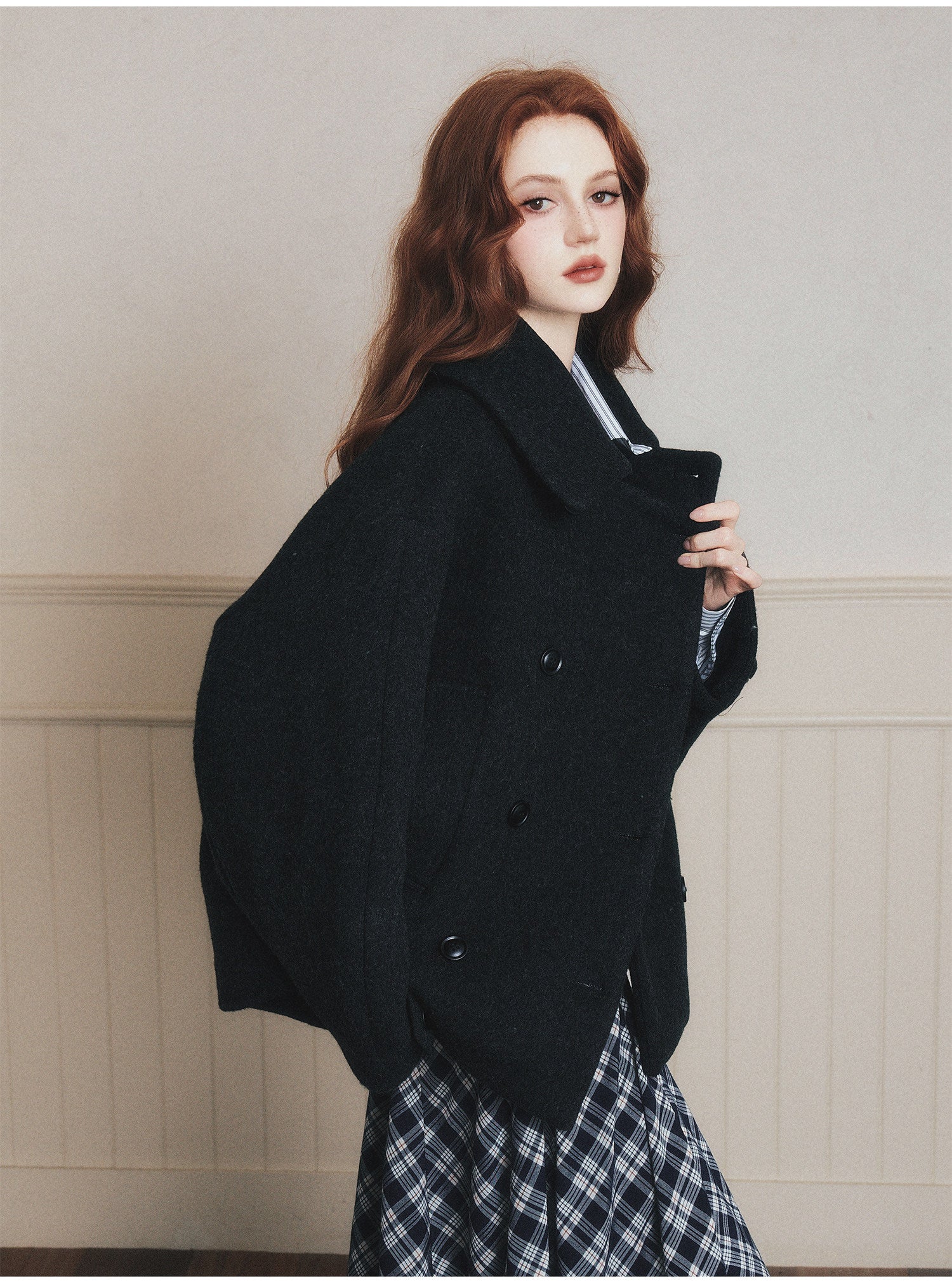 Double-Breasted Oversized Wool Short Coat