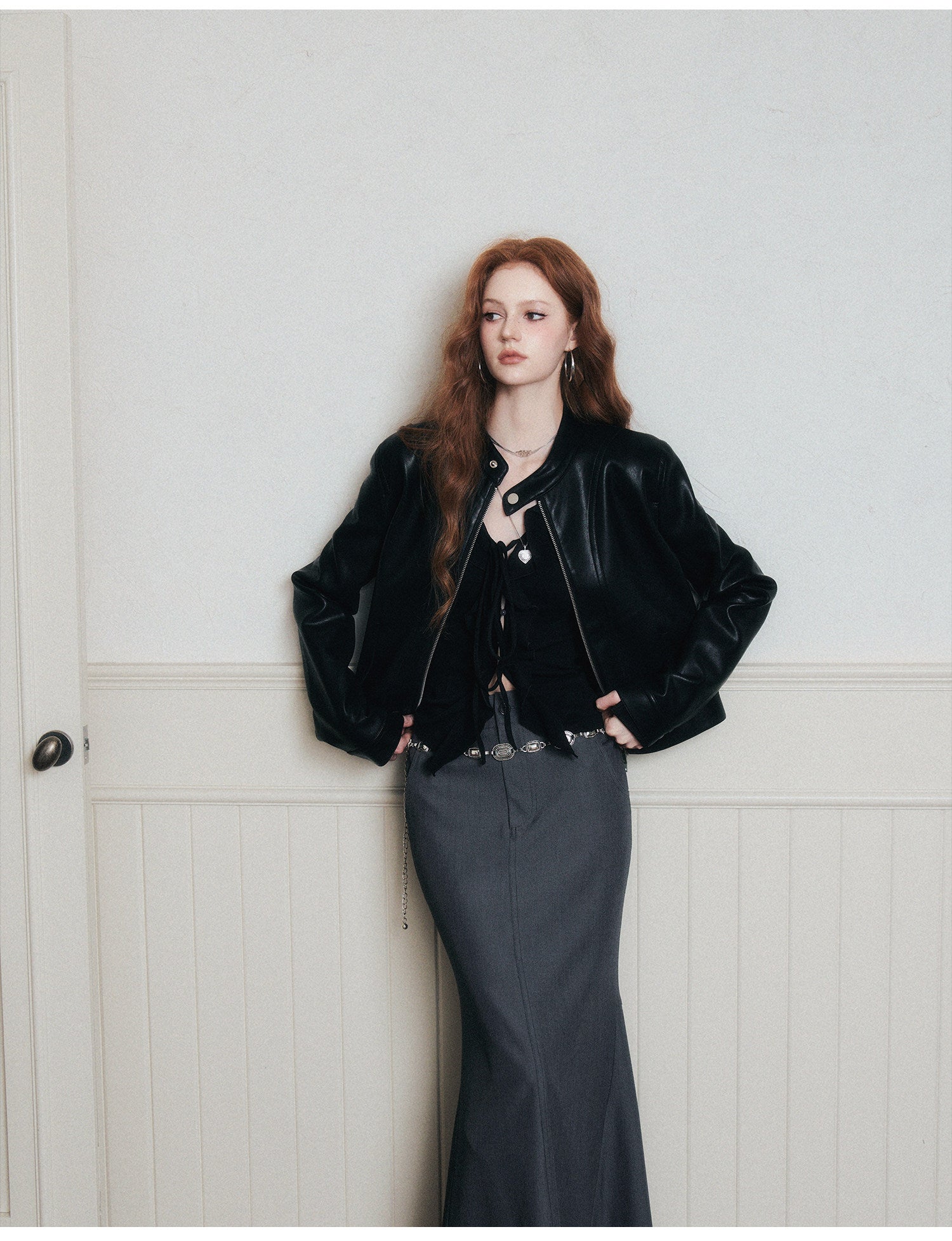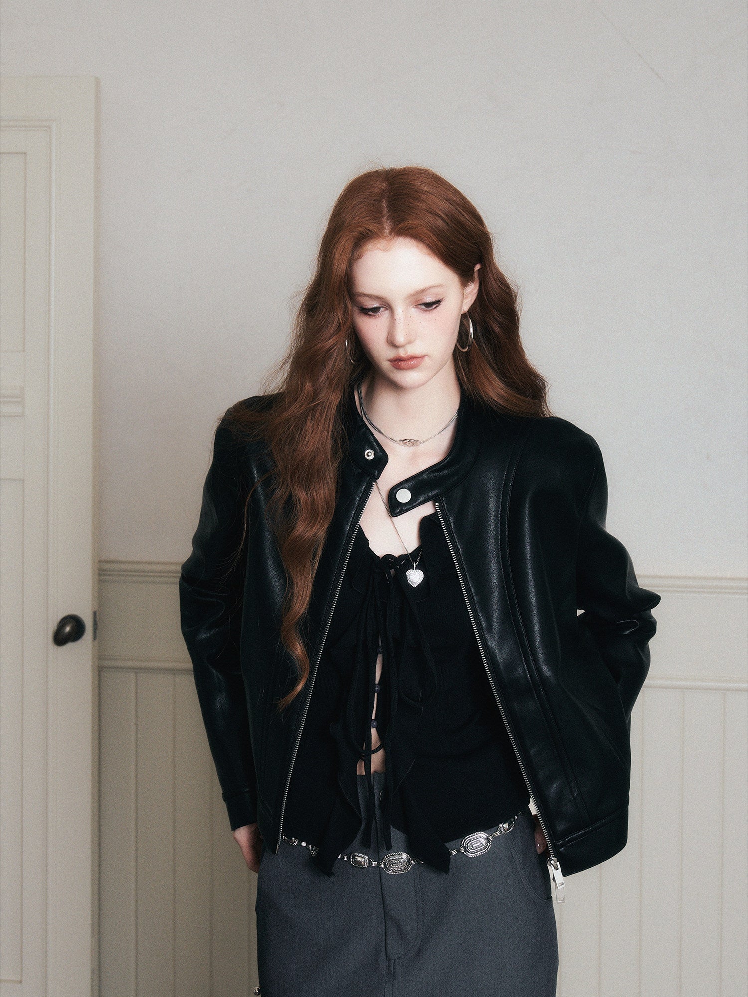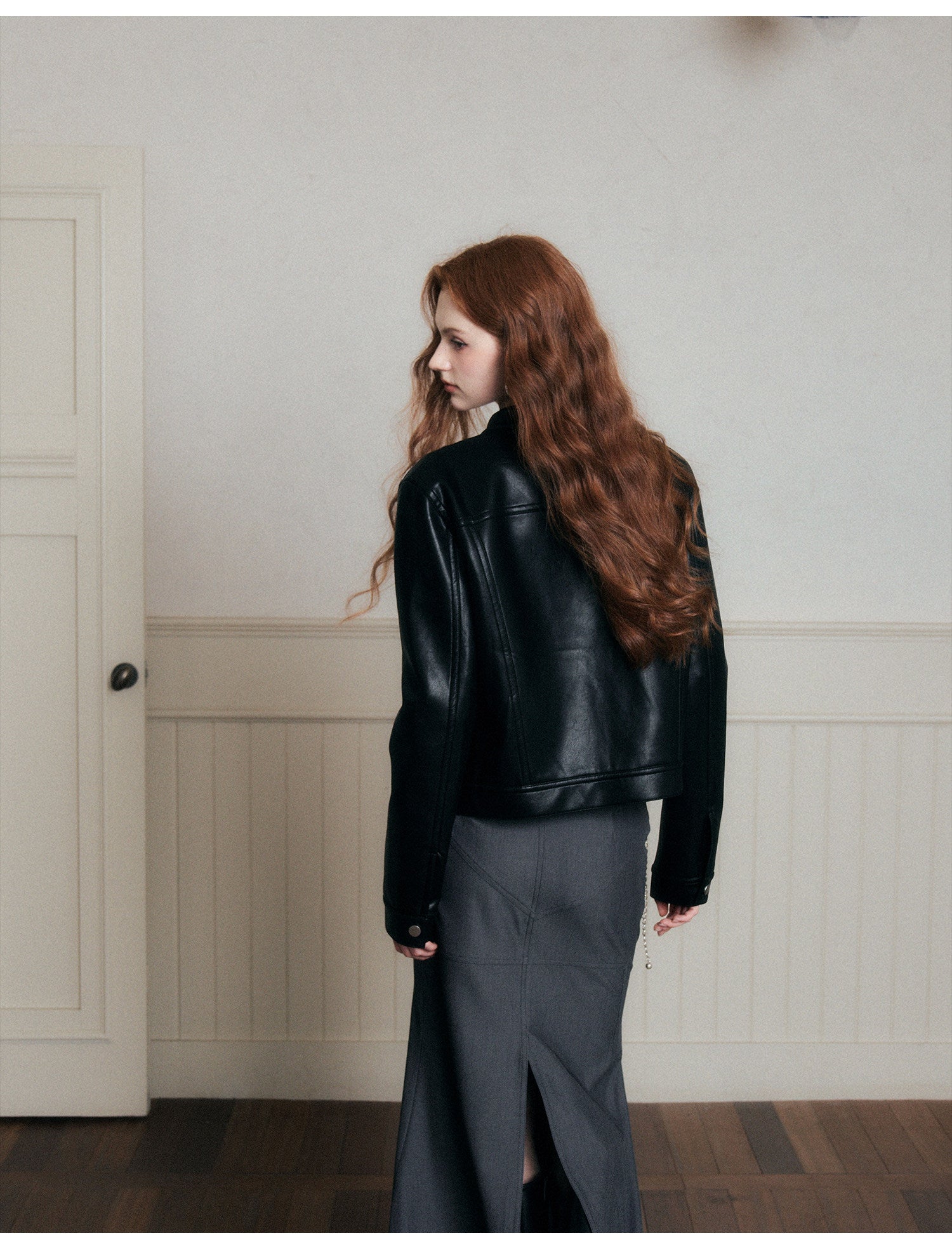 Faux Leather Jacket With Stand Collar
