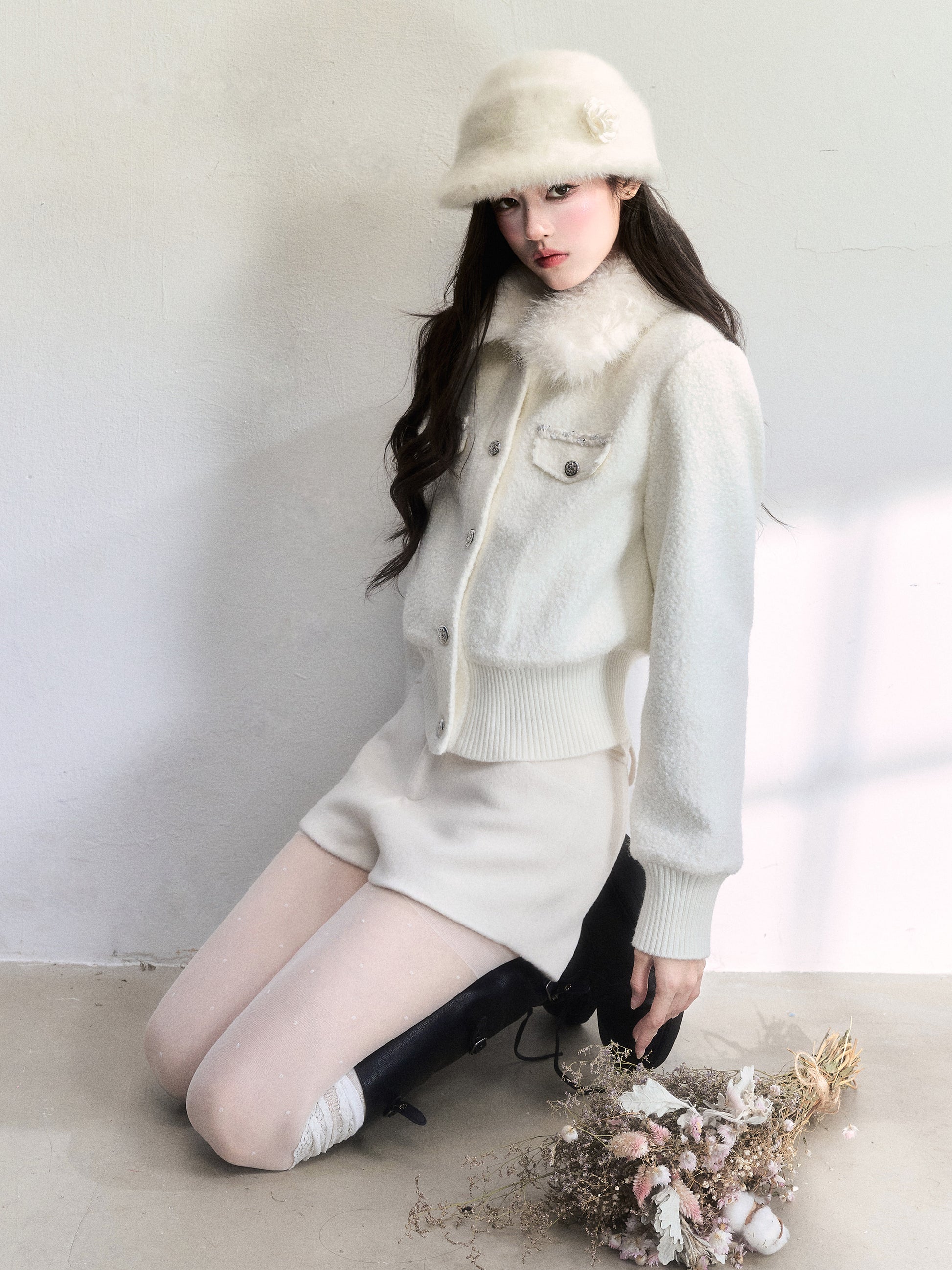 Metallic-Detail Fur Collar Jacket