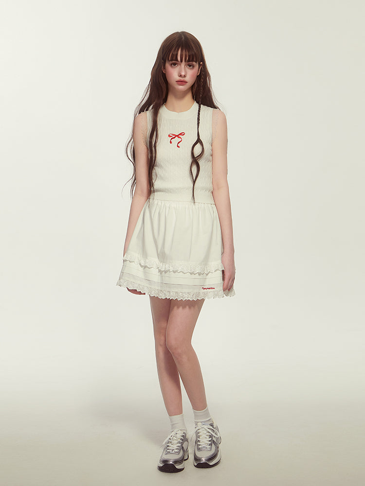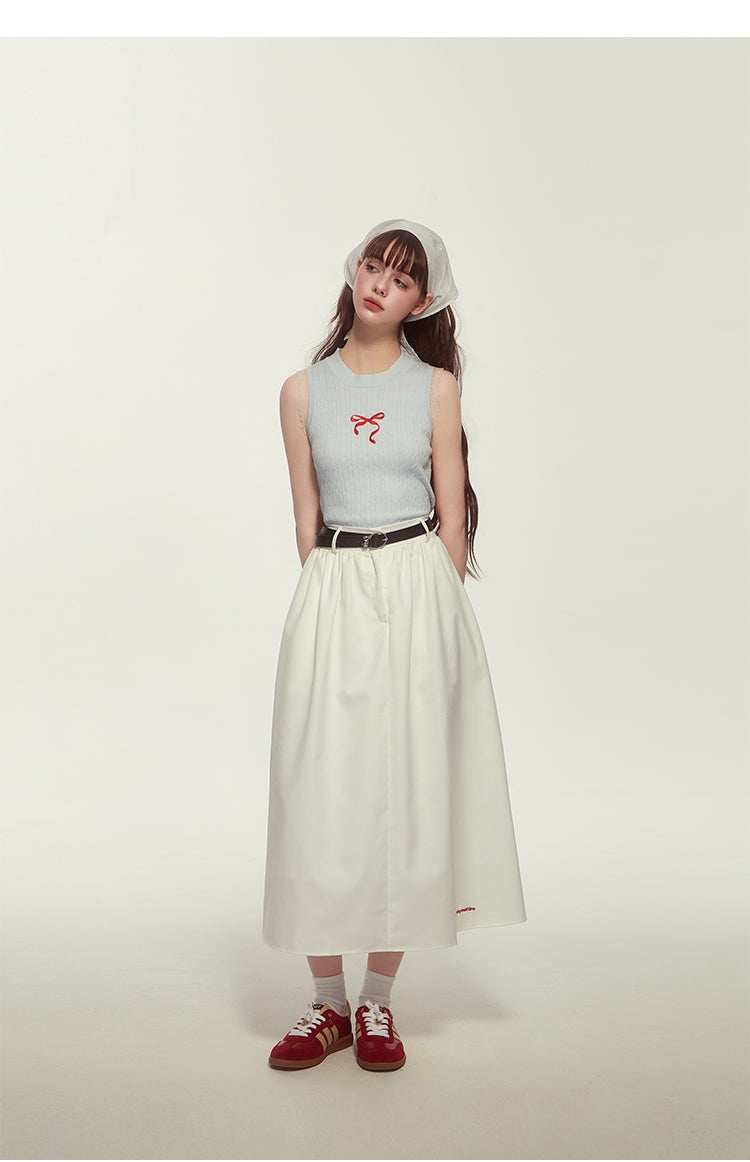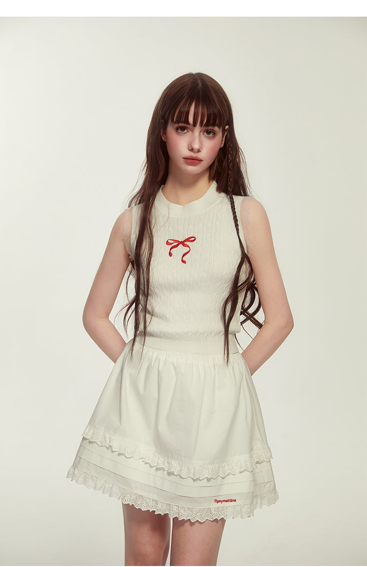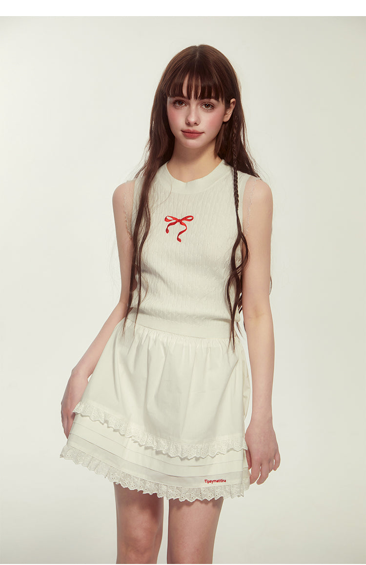 Bow-Embroidered Sleeveless Fitted Cable Knit Top