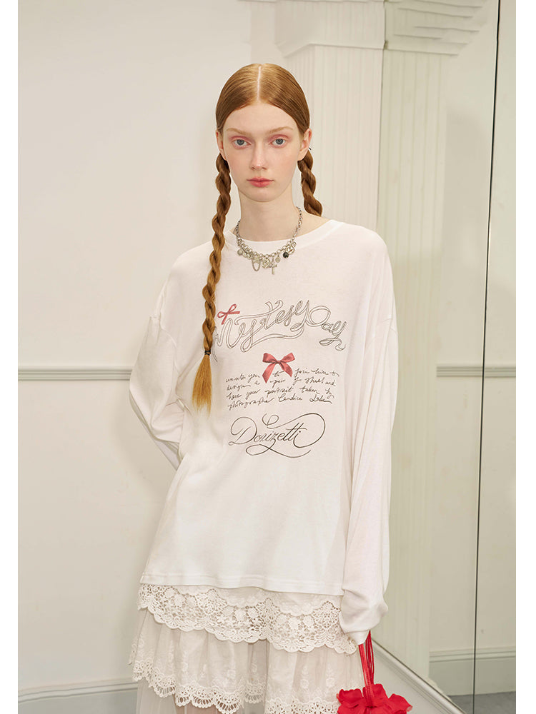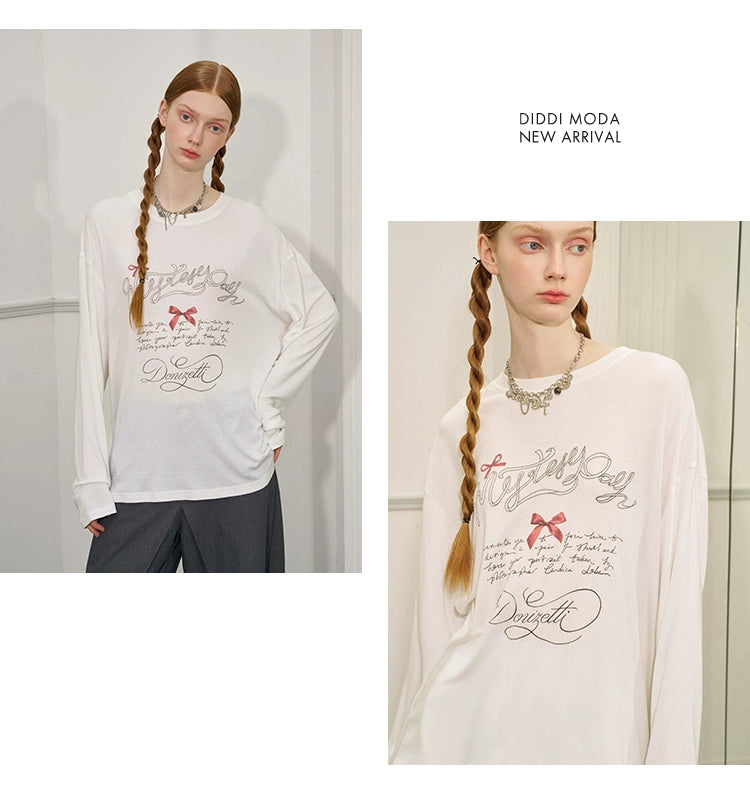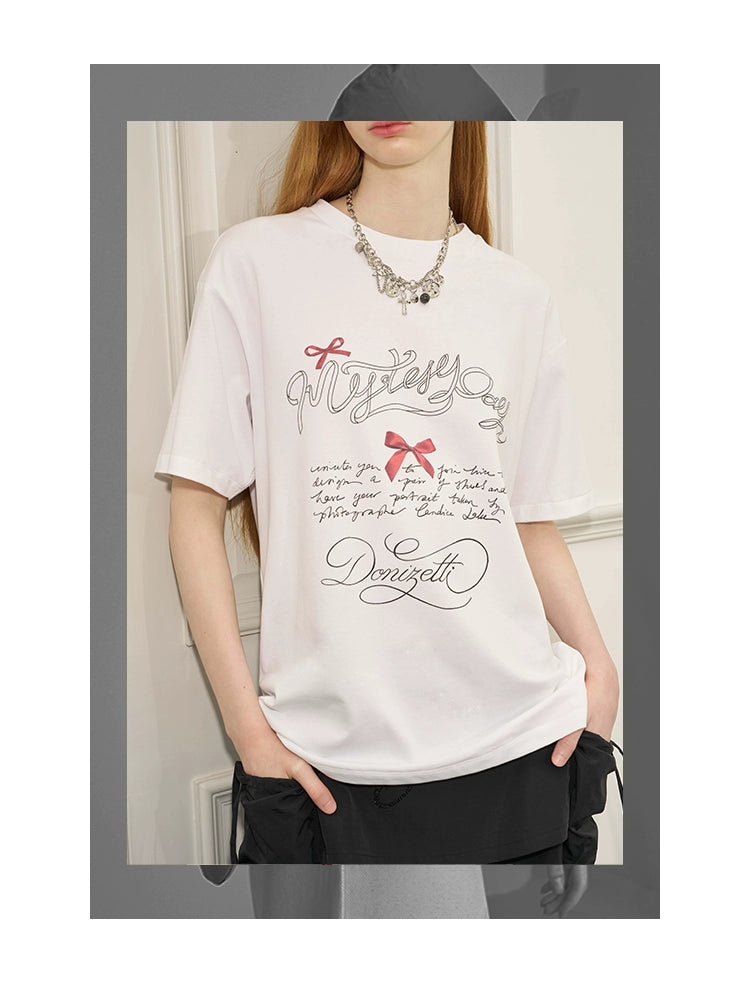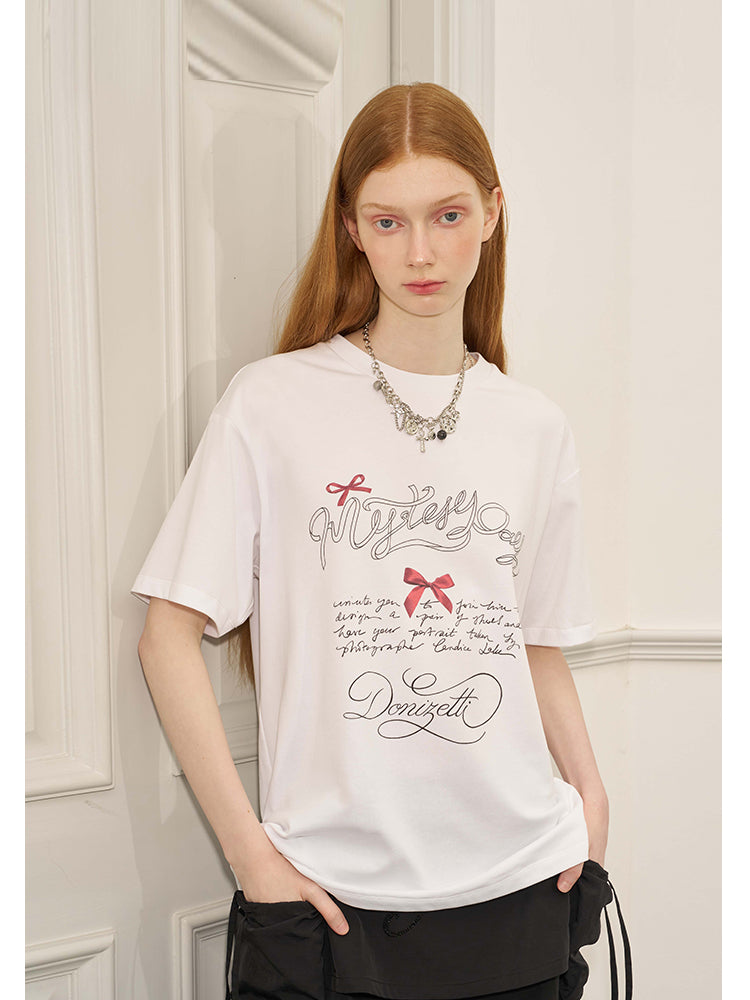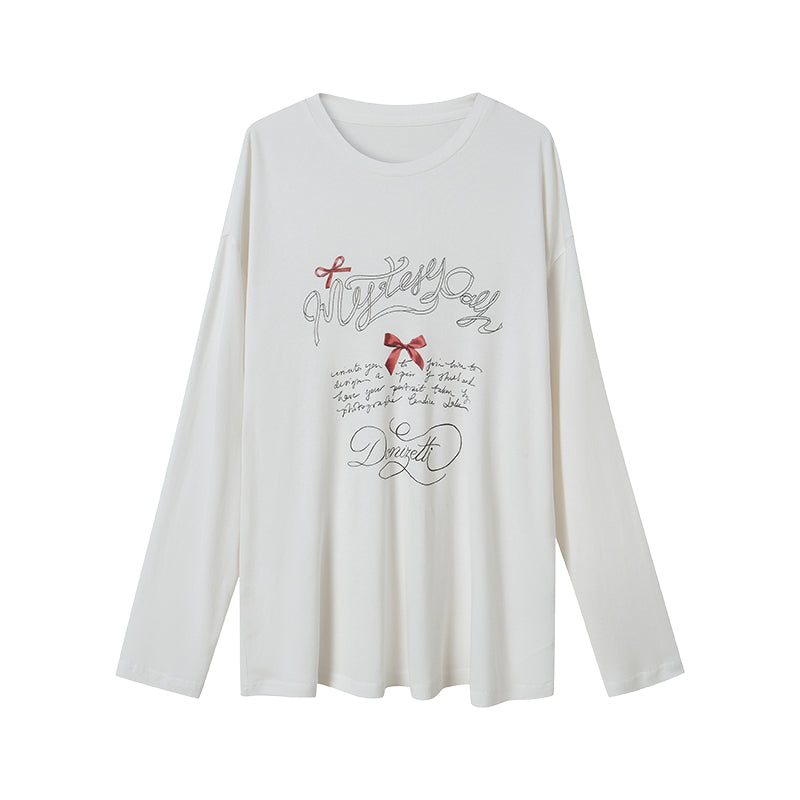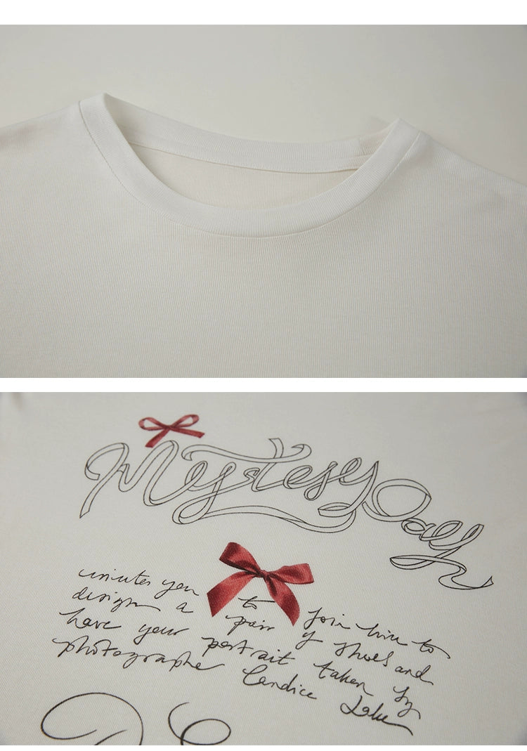 Bow Print Silk Blend Short And Long Sleeved T-Shirt