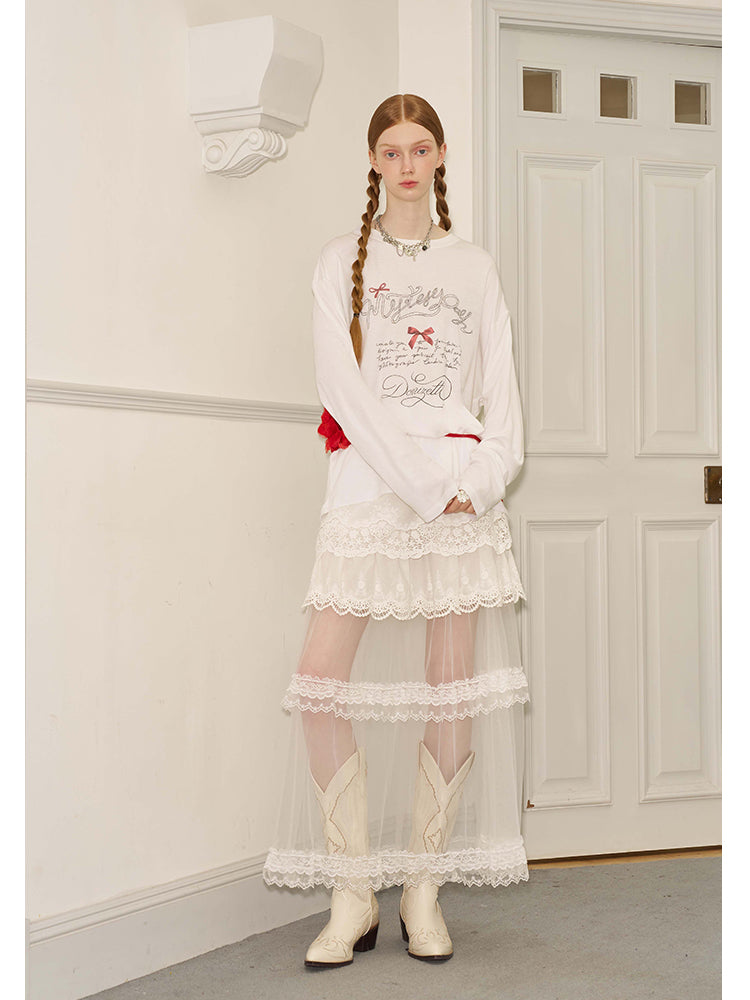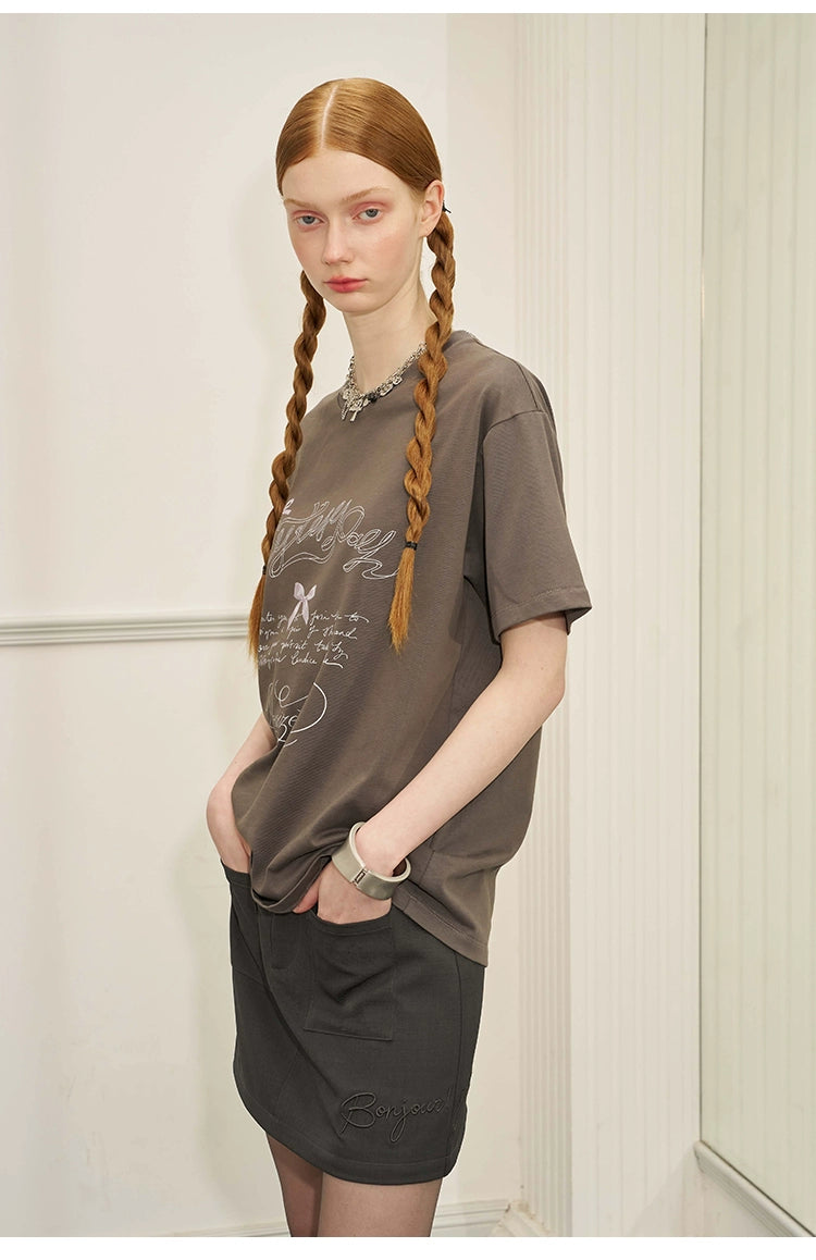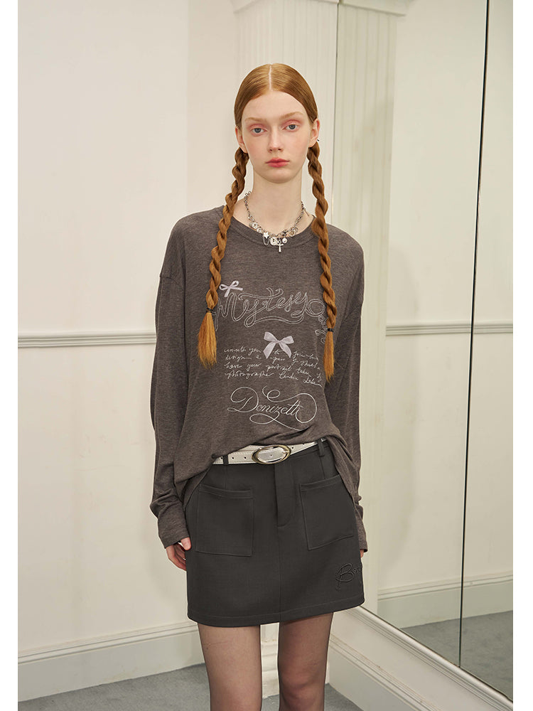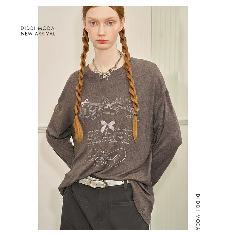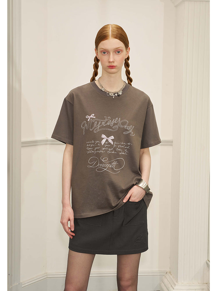 Bow Print Silk Blend Short And Long Sleeved T-Shirt