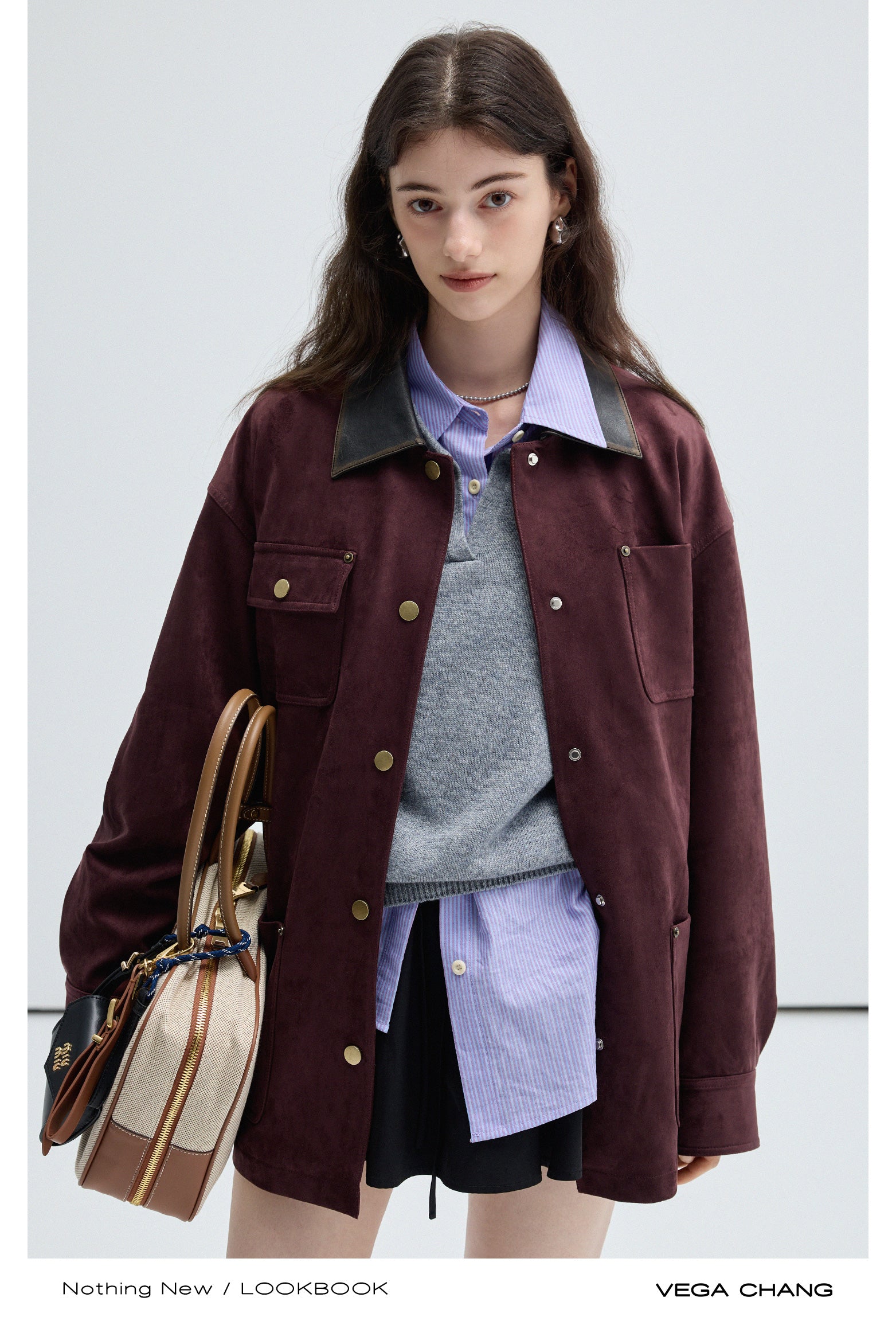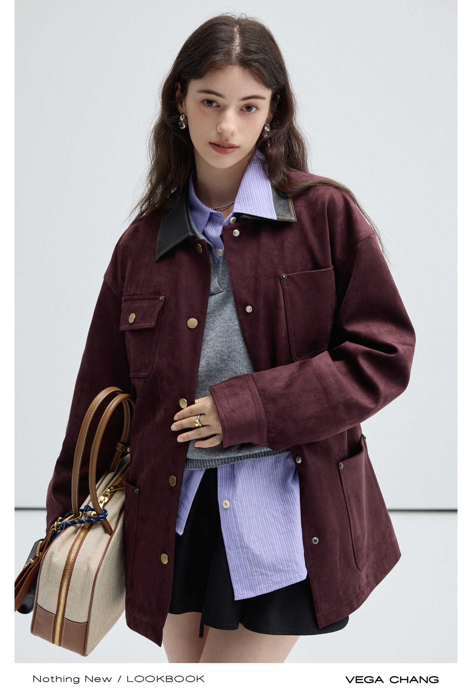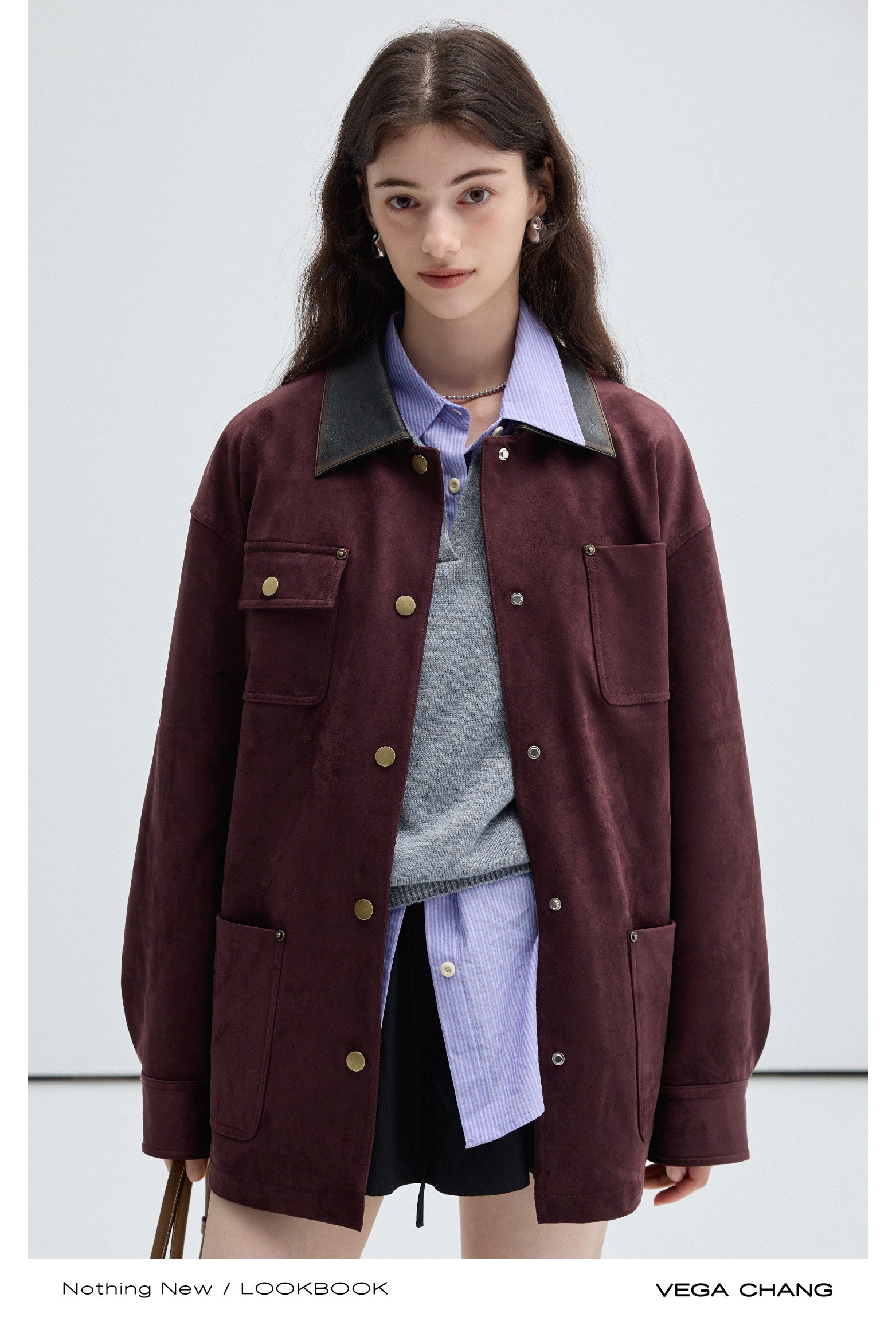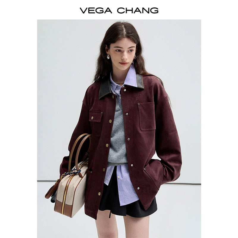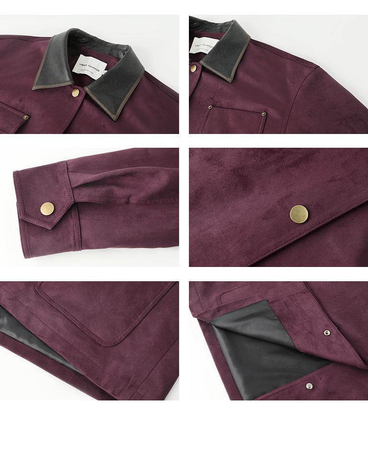 Boxy Faux Suede Jacket With Contrast Collar