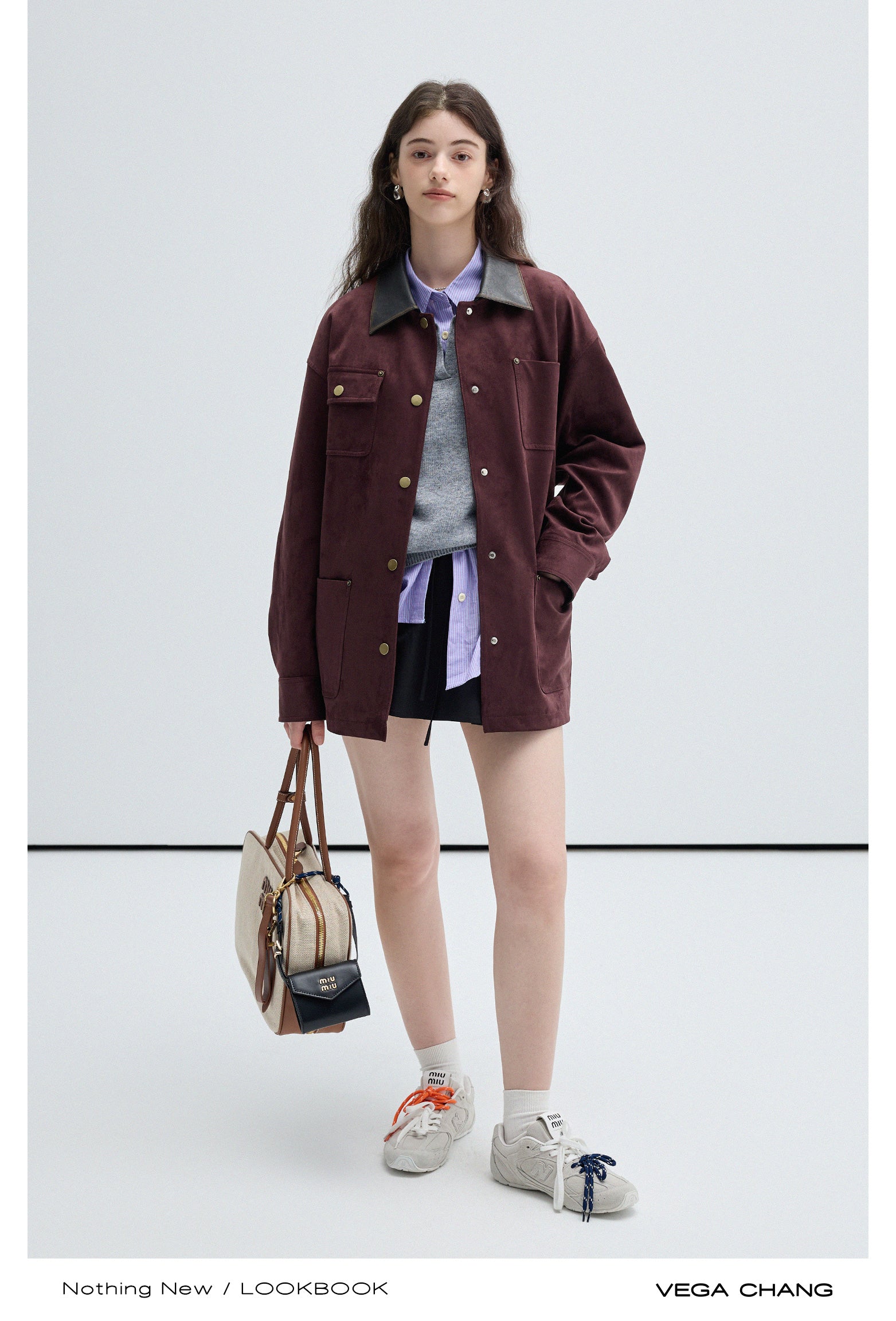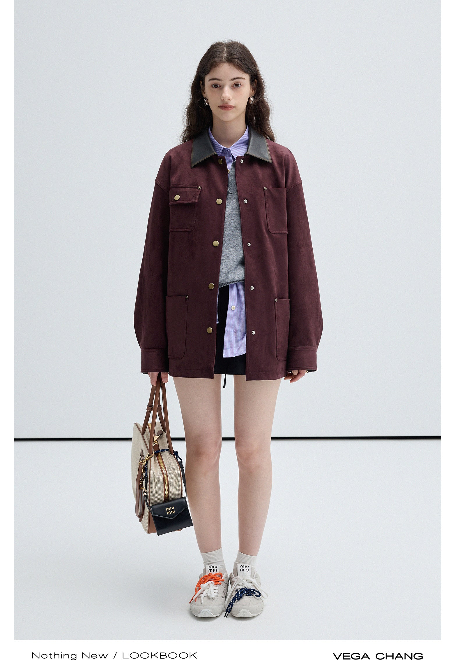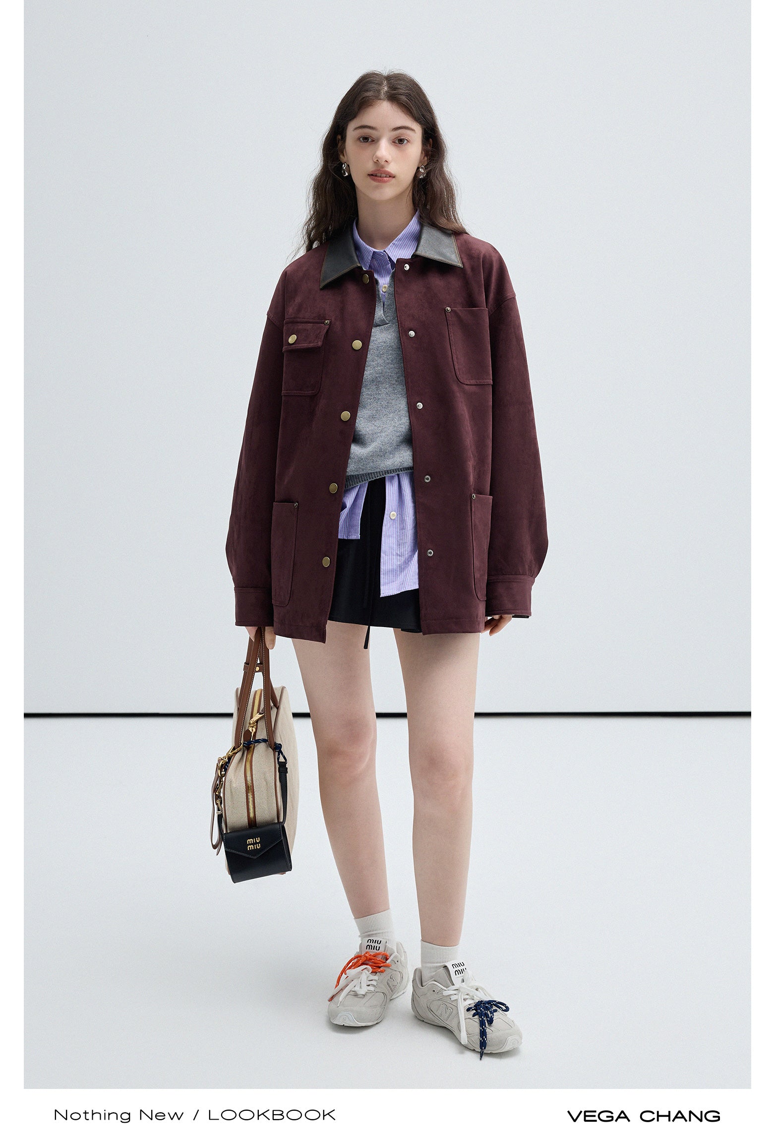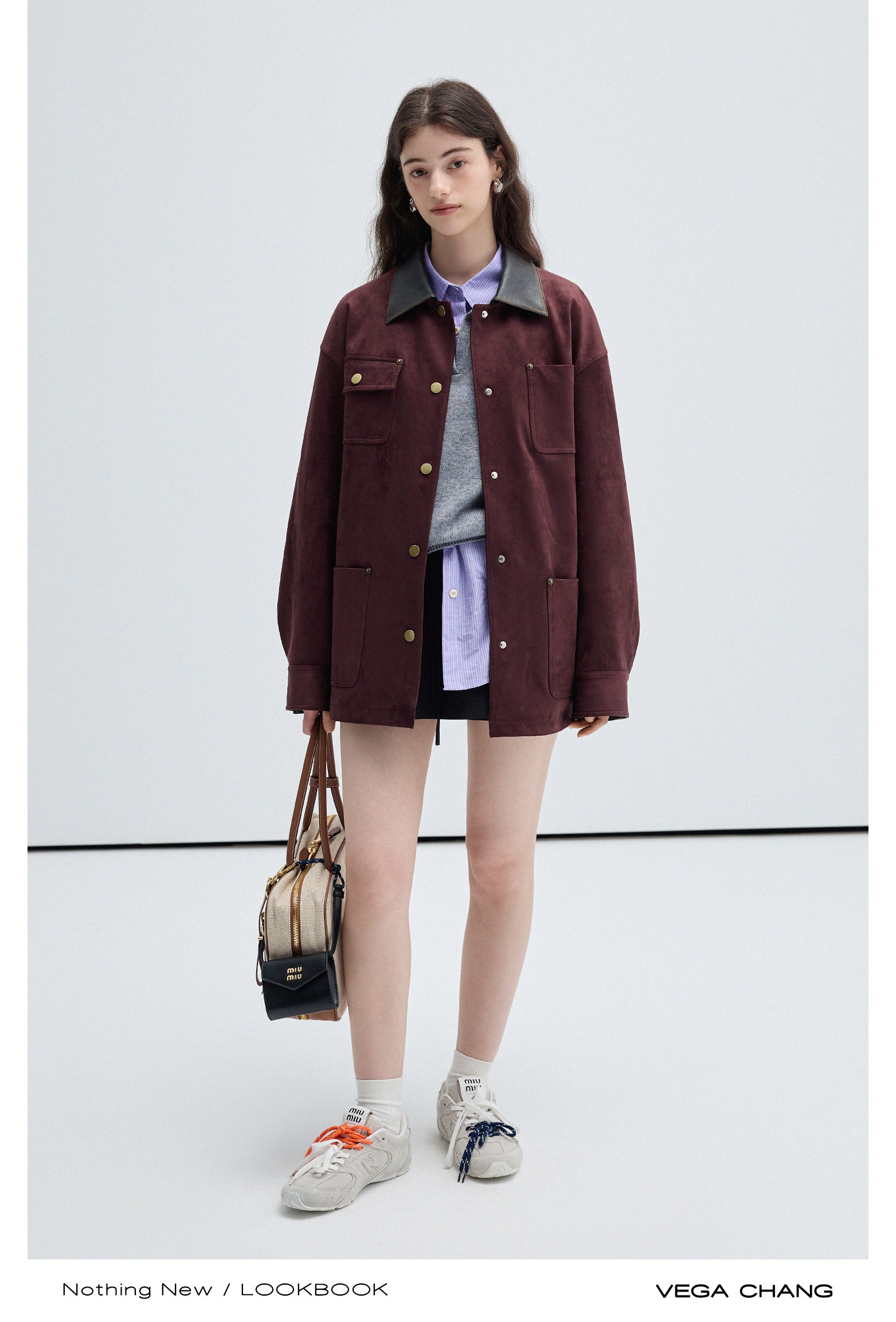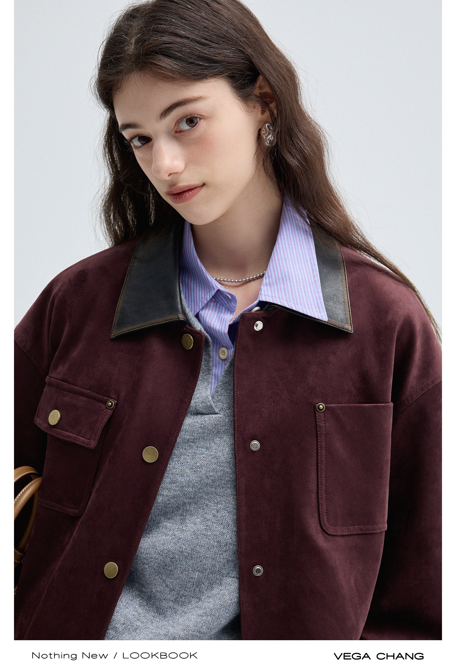 Boxy Faux Suede Jacket With Contrast Collar