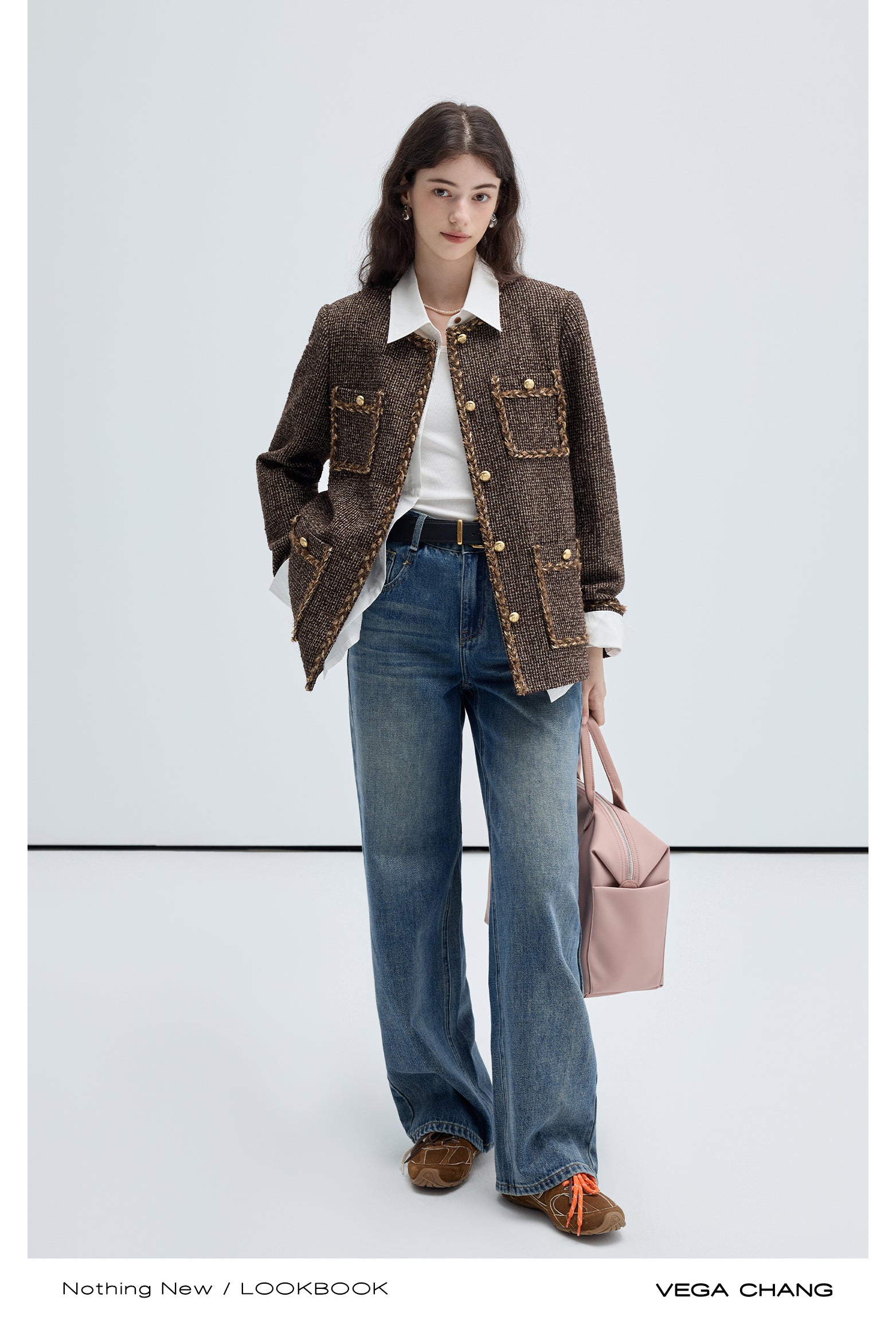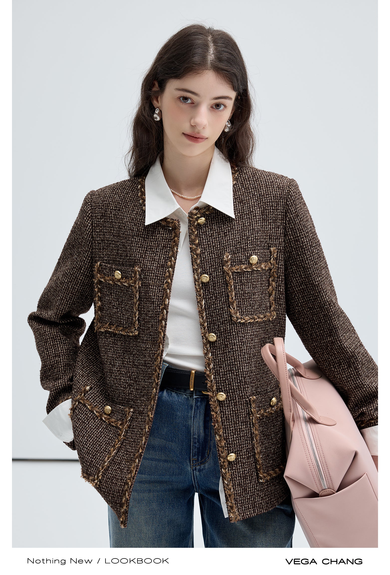 Braided Trim Wool Blend Boxy Tweed Jacket