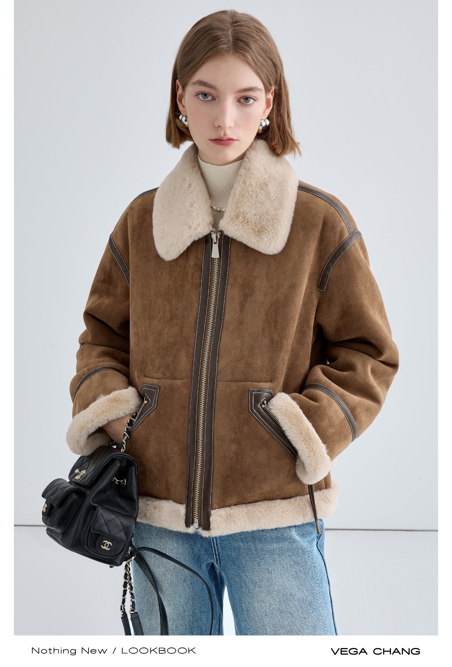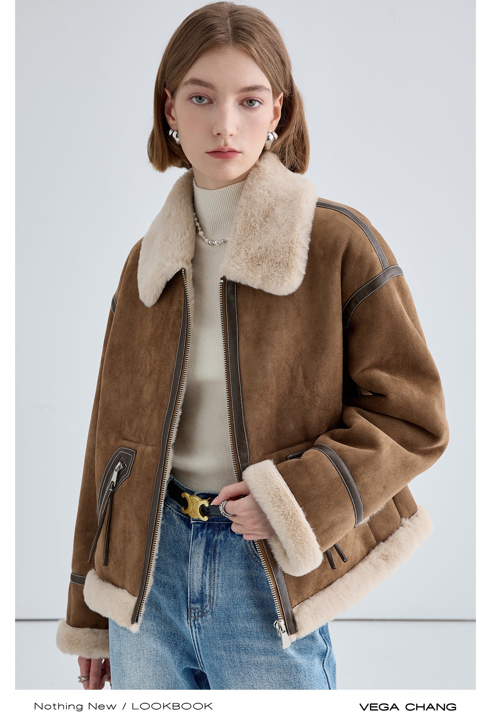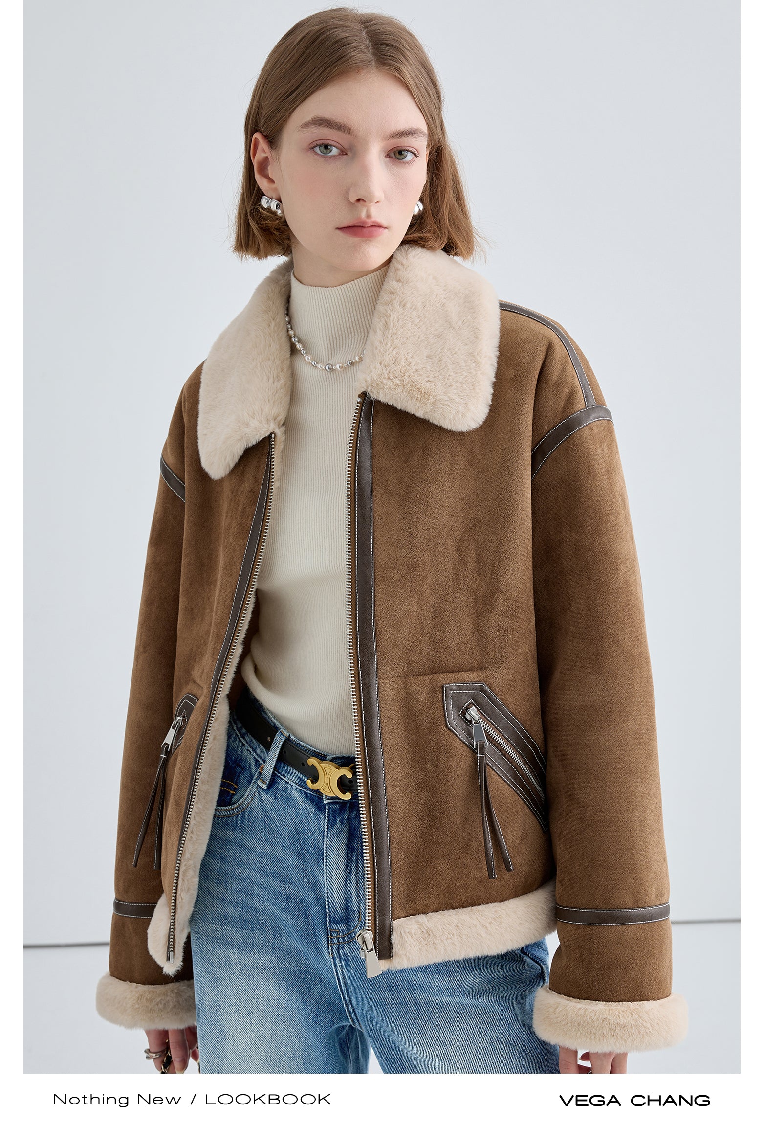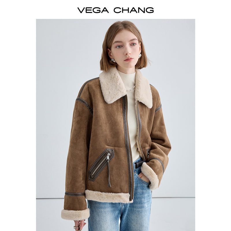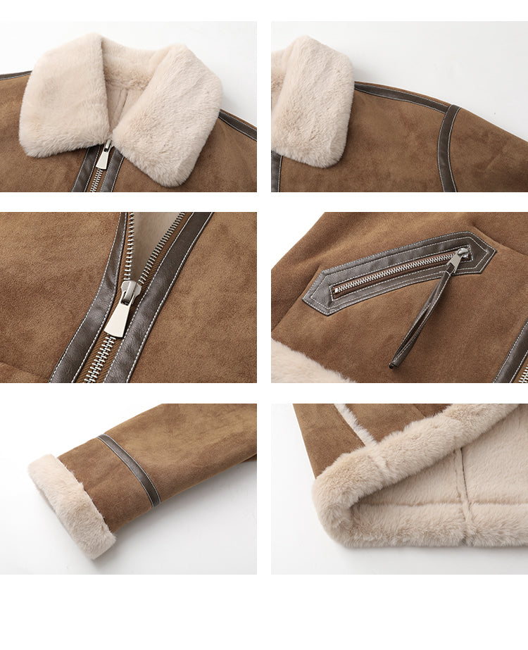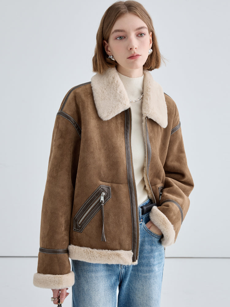 Classic Faux Suede Jacket With Fur Collar