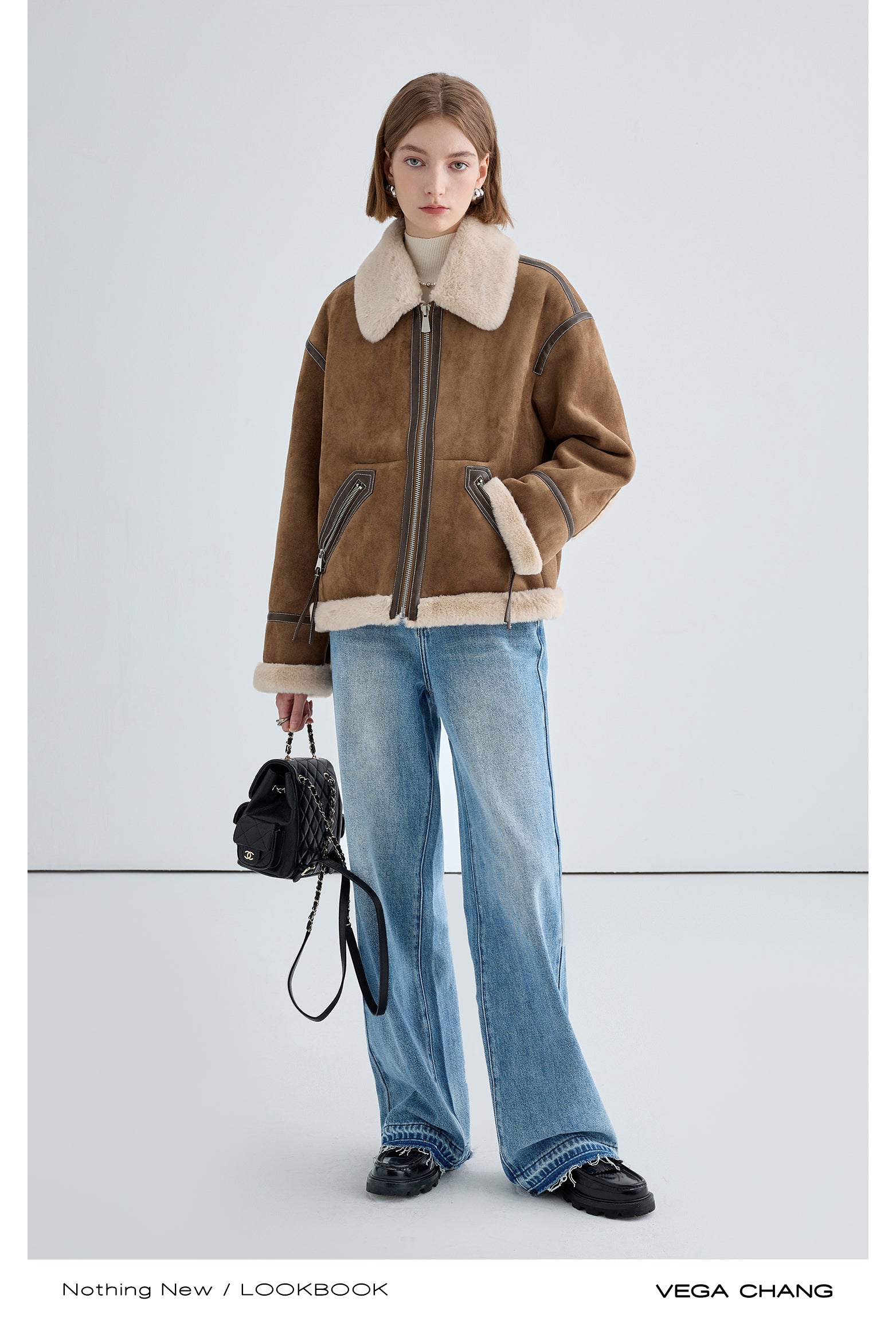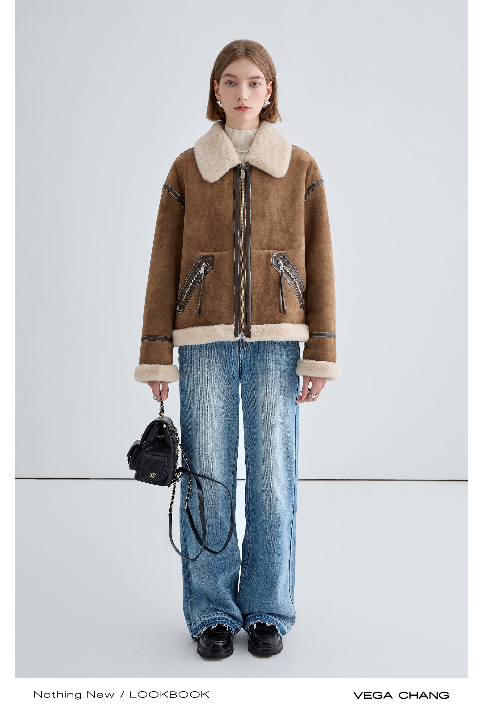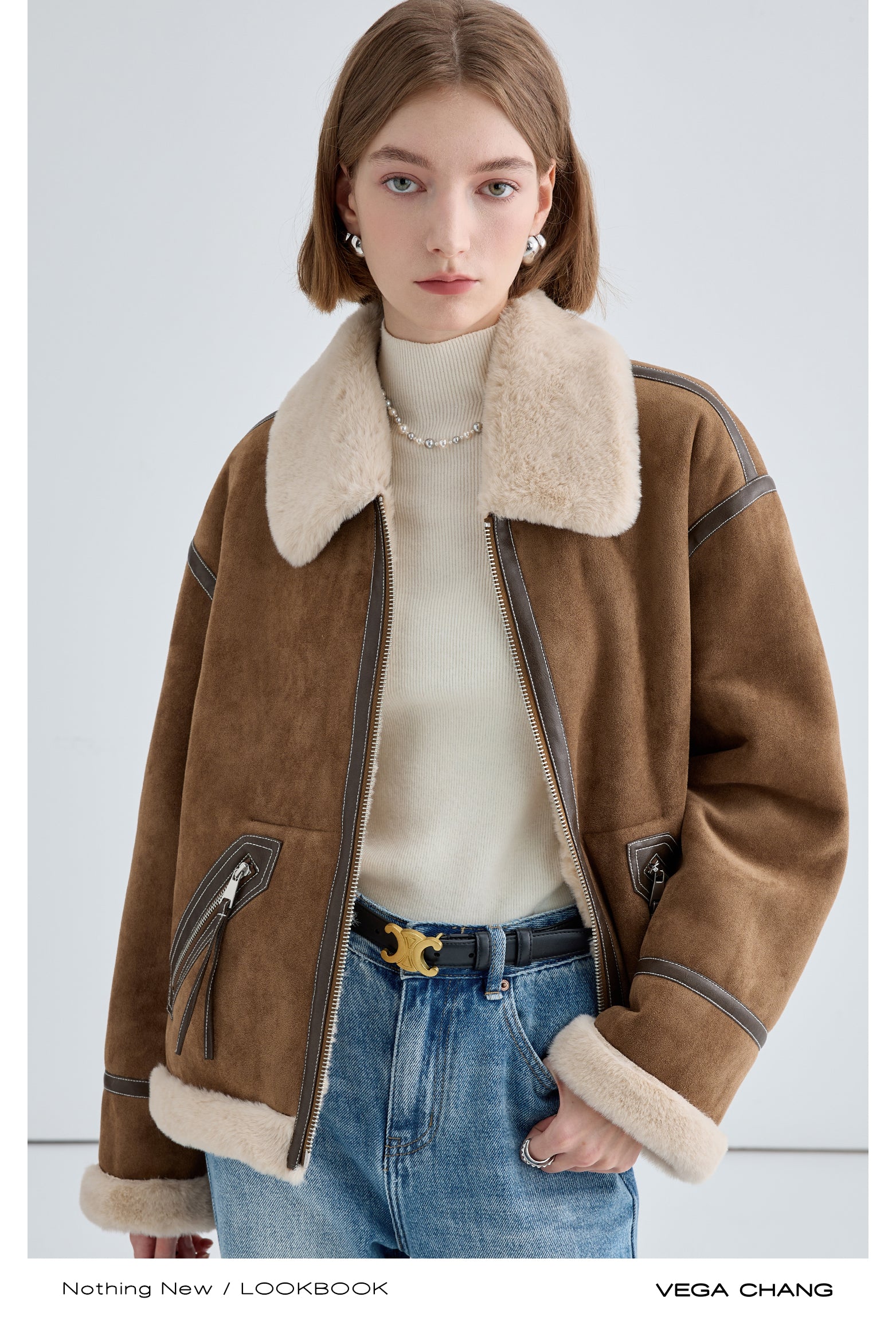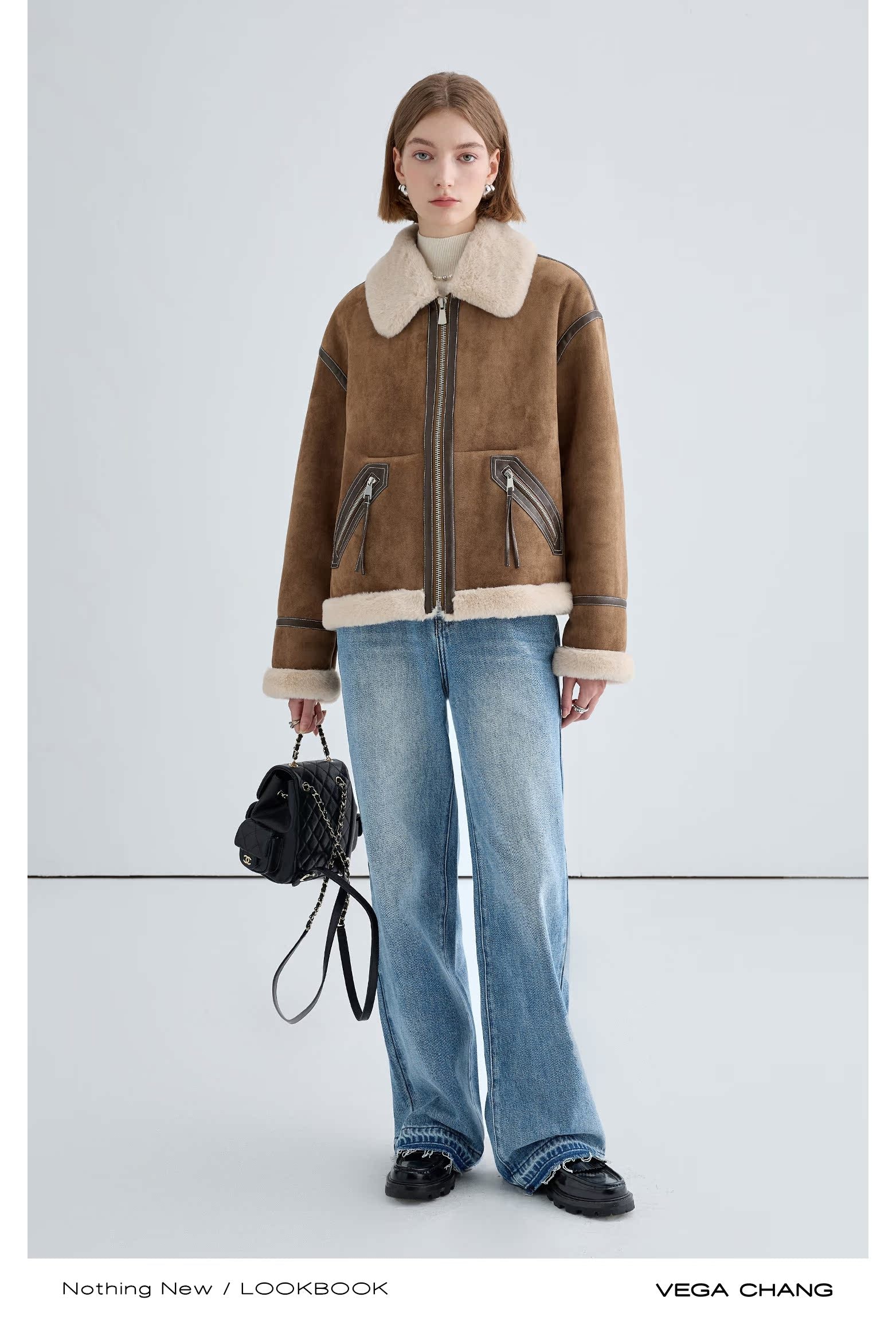 Classic Faux Suede Jacket With Fur Collar