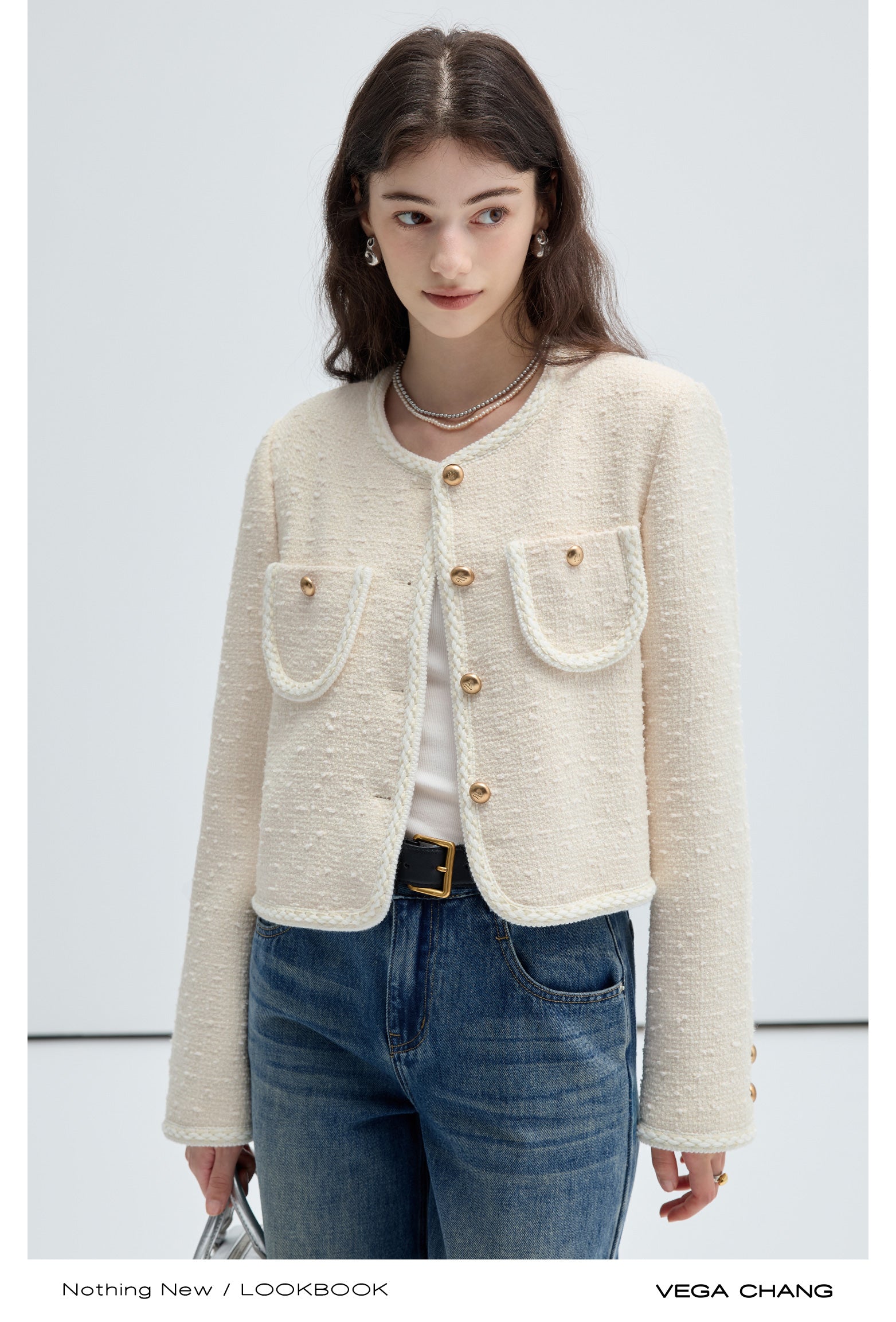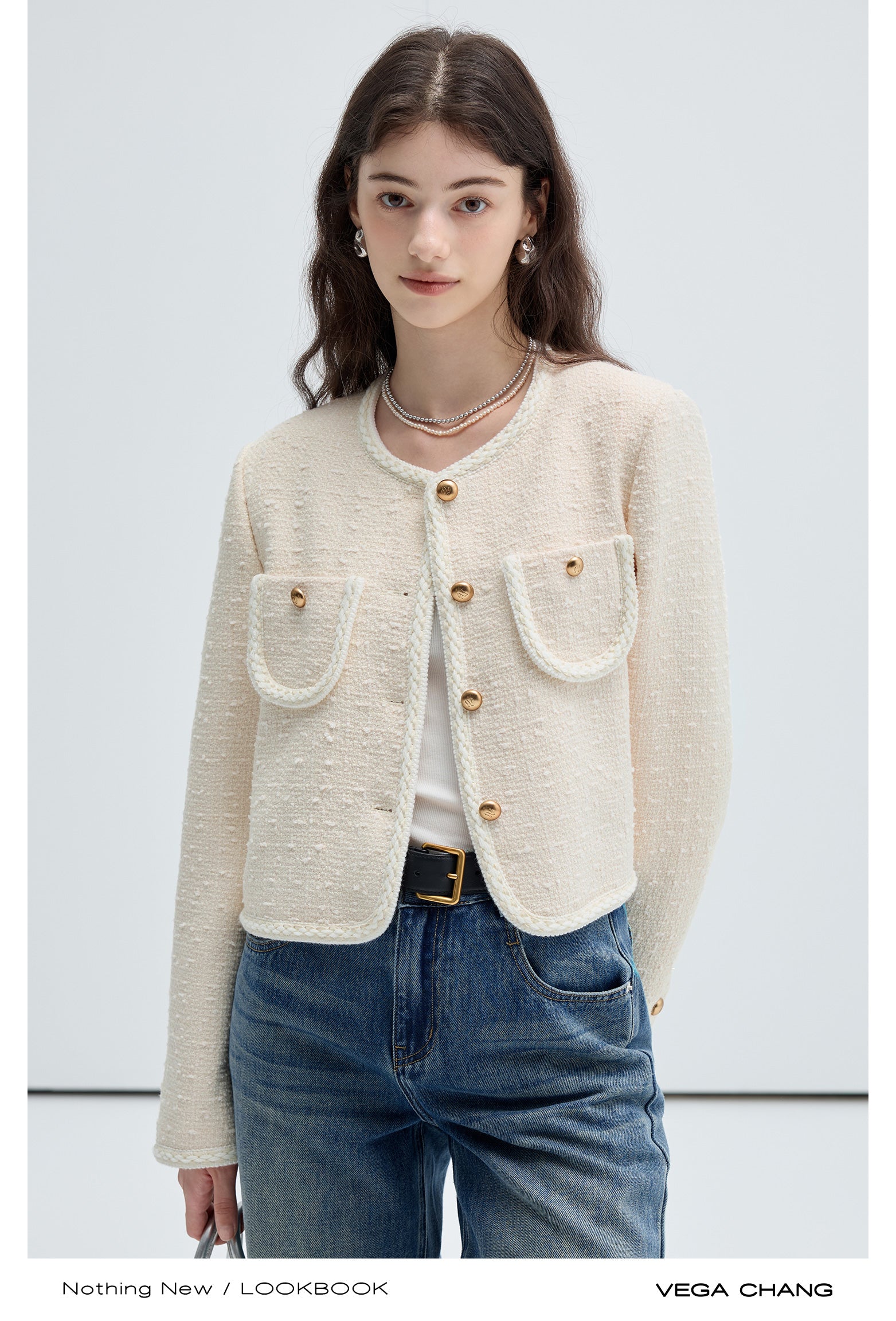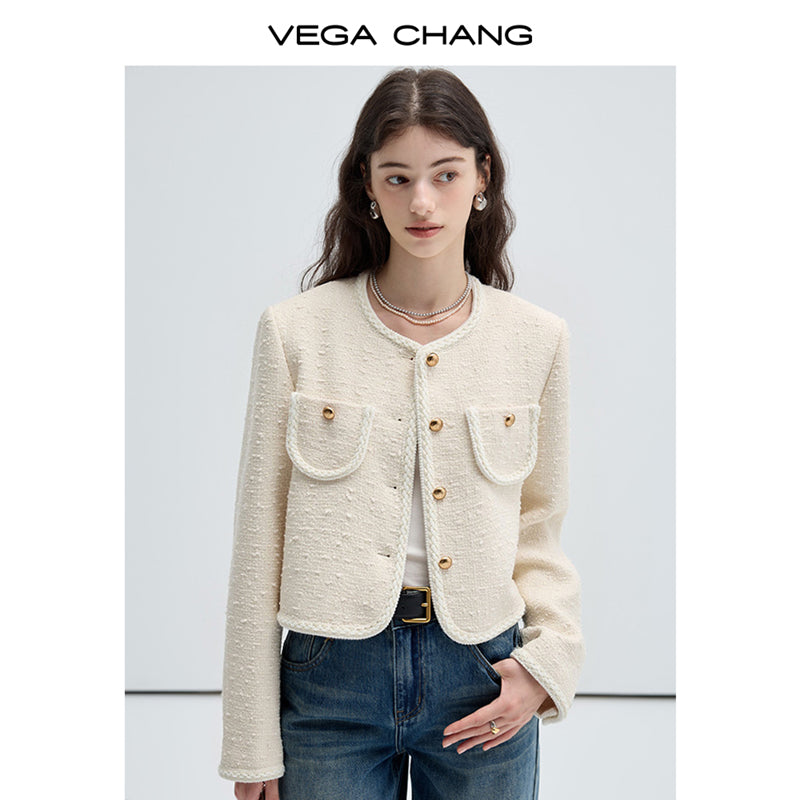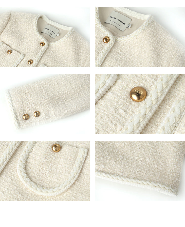 Classic Wool Blend Collarless Tweed Jacket