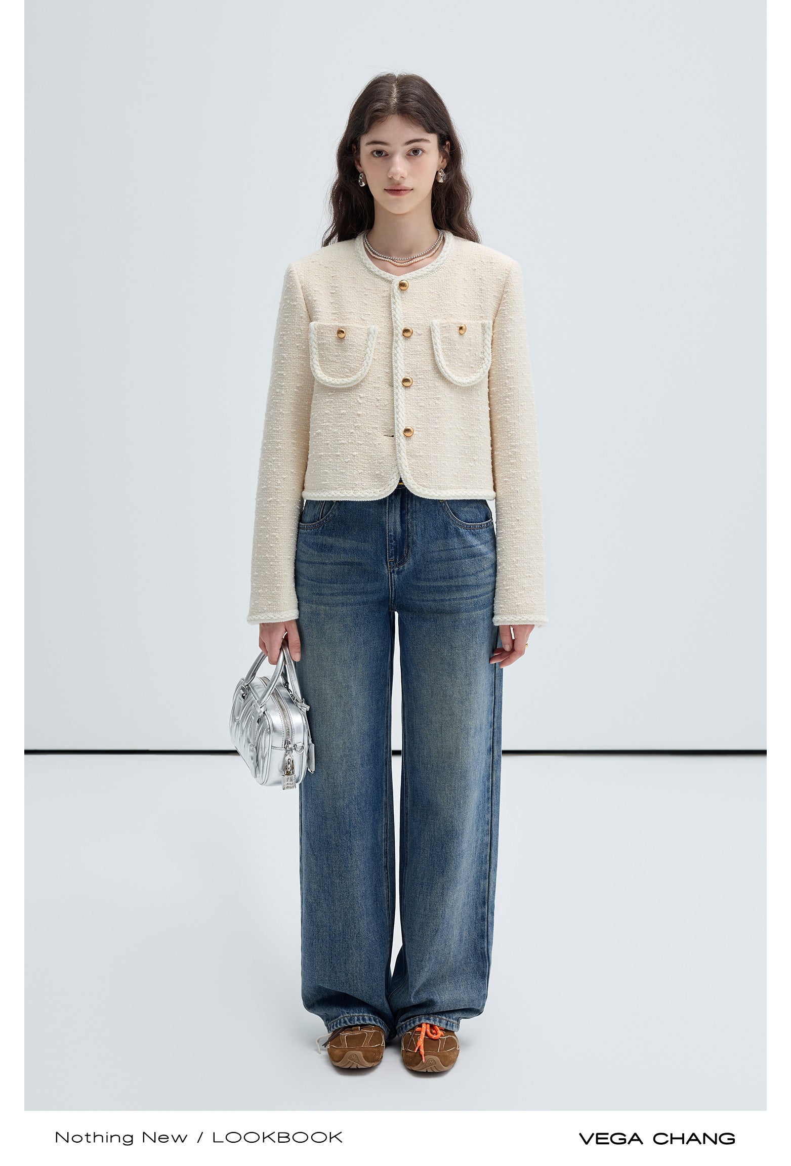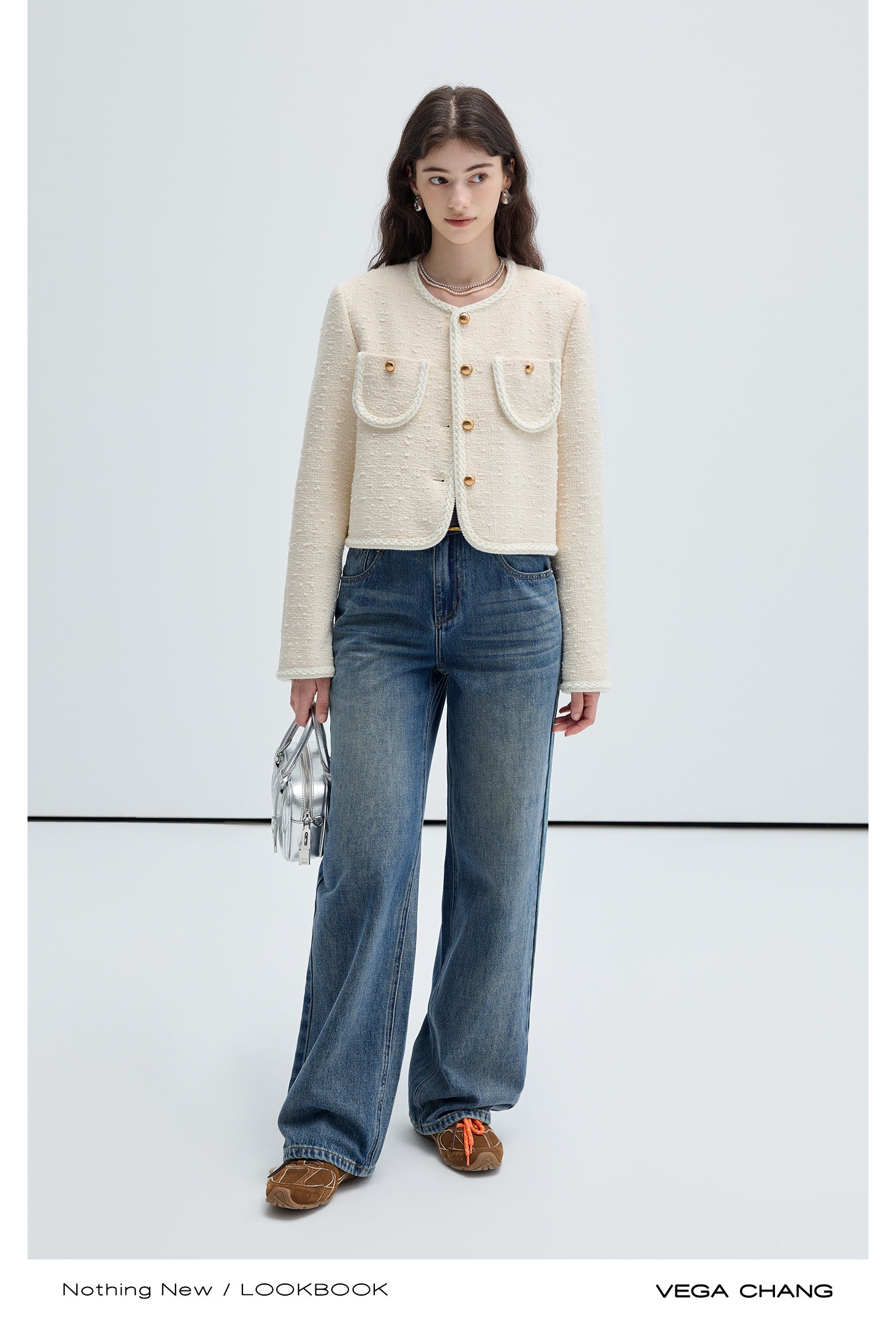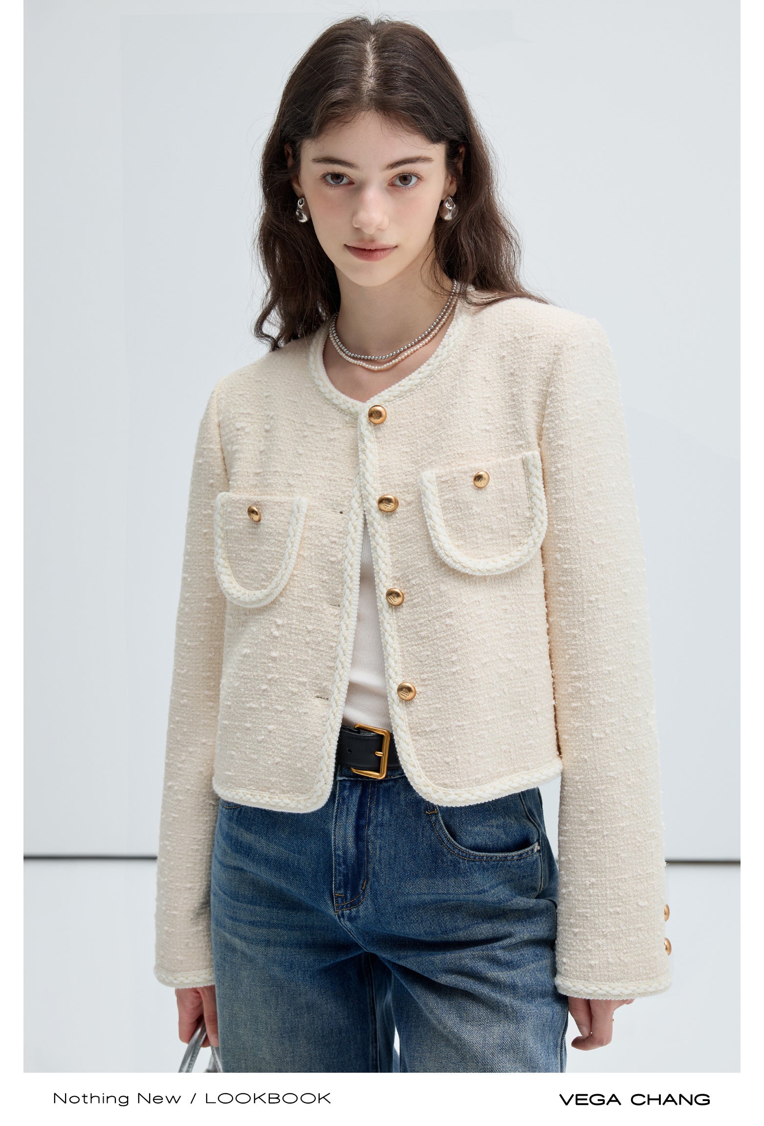 Classic Wool Blend Collarless Tweed Jacket