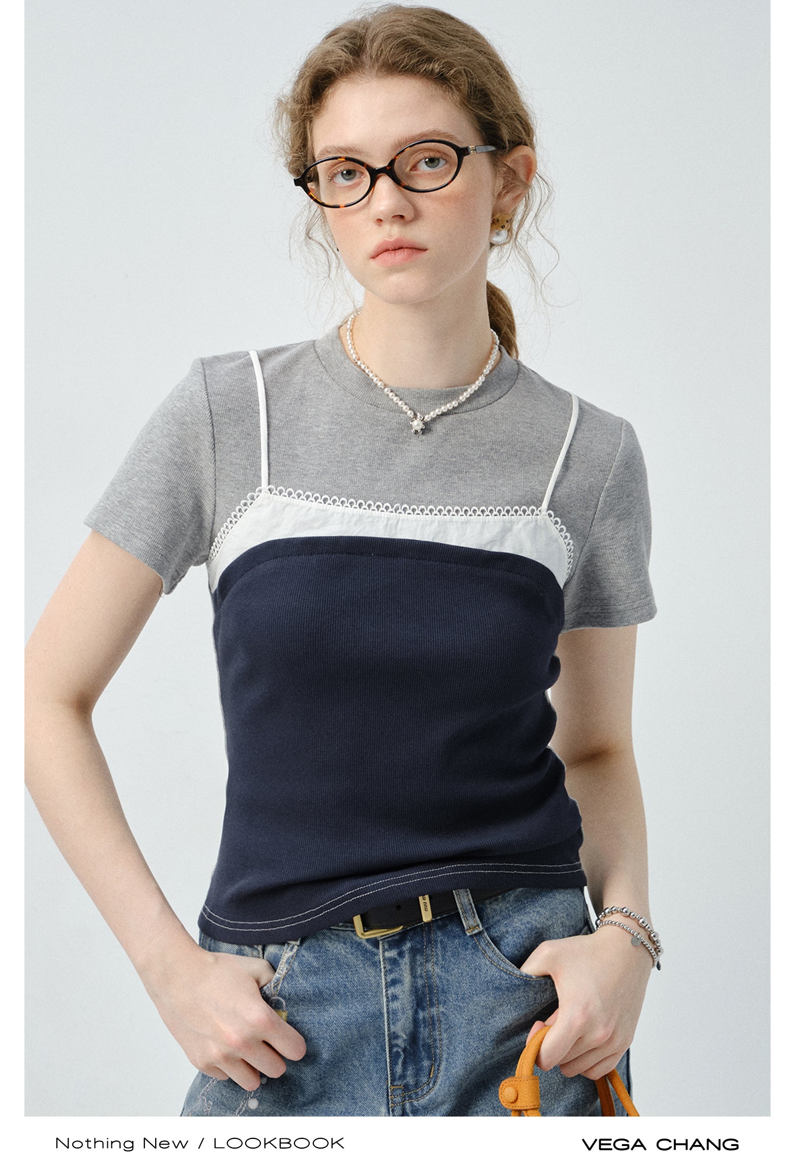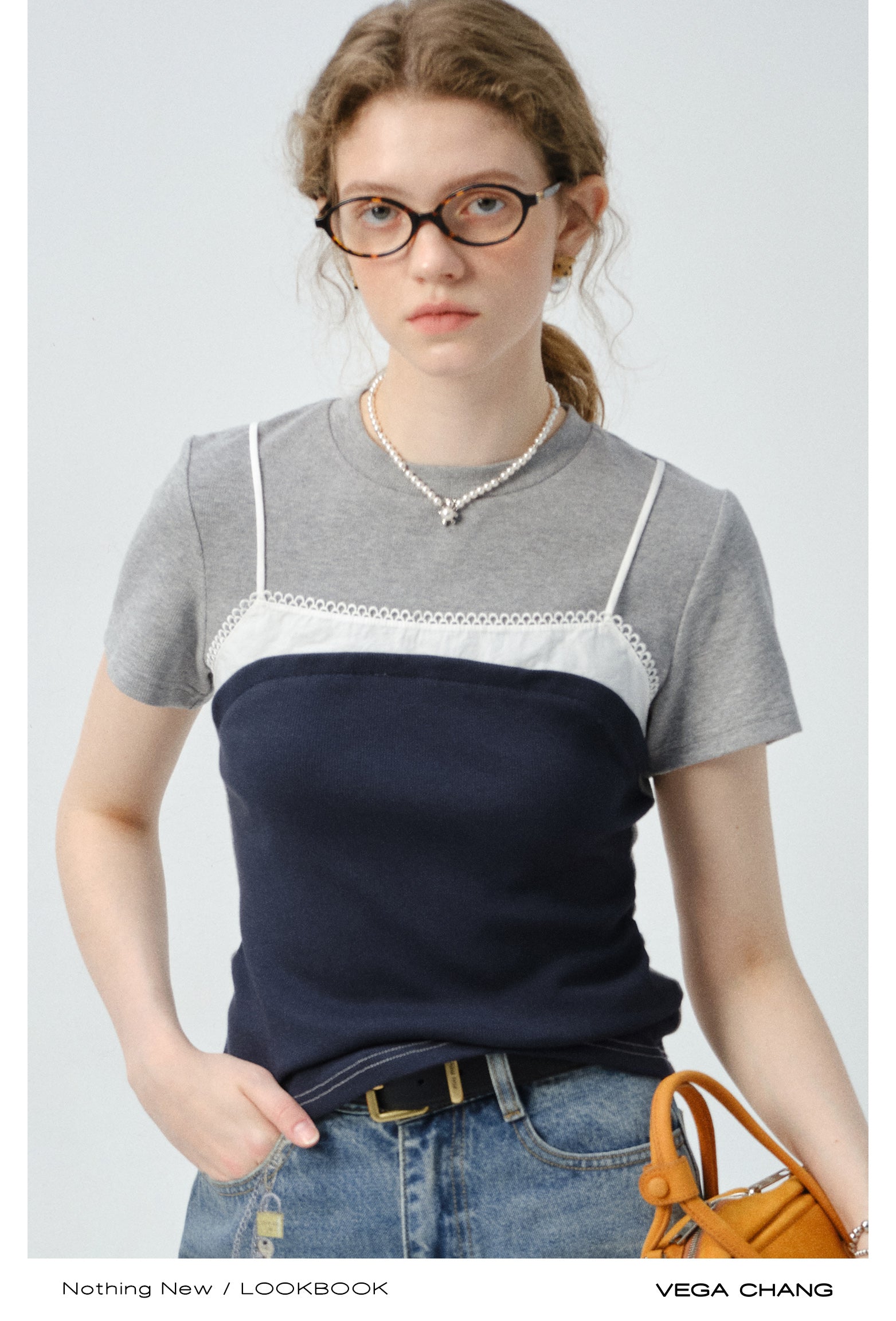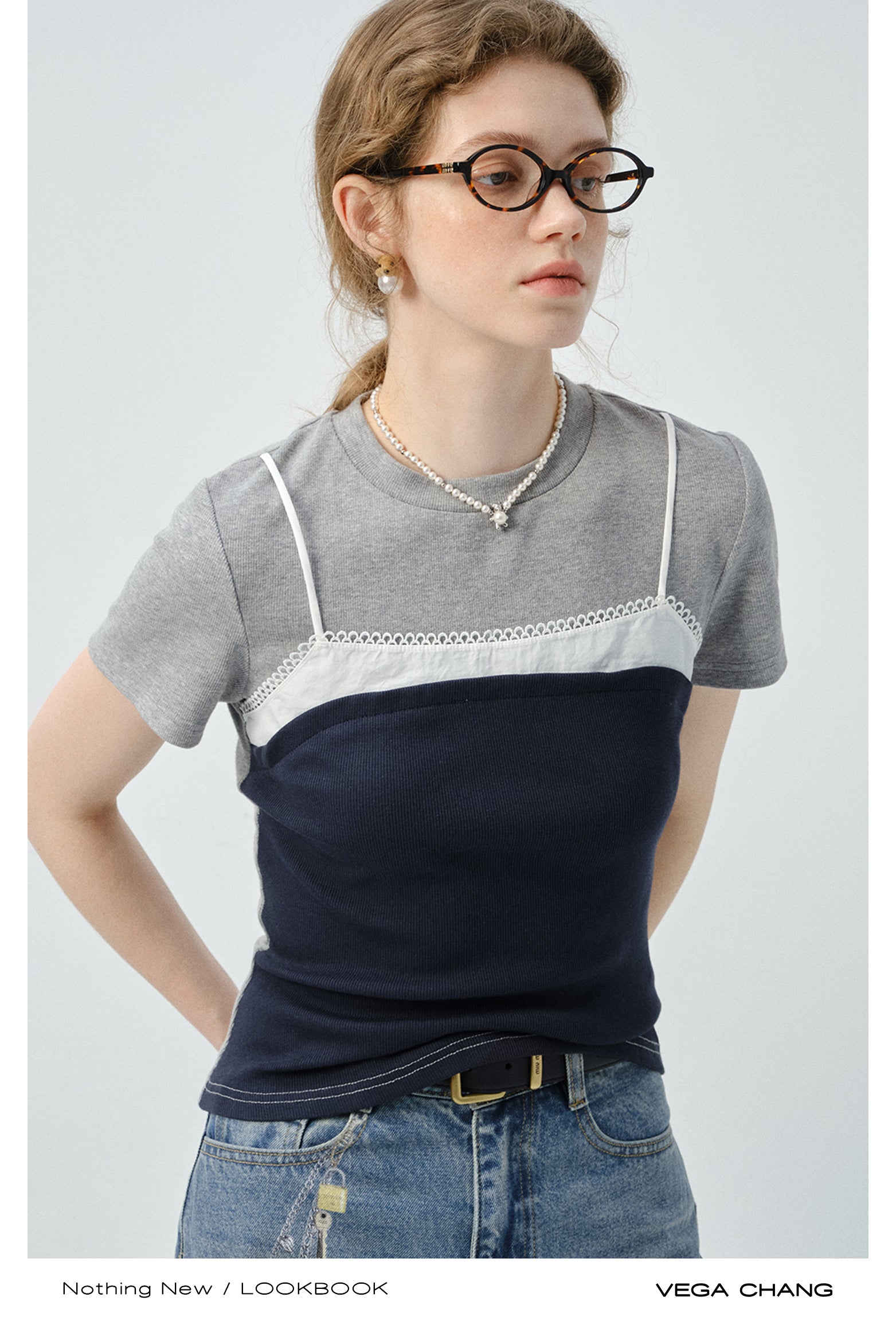 Contrast-Colored Faux-Layered Cotton T-Shirt