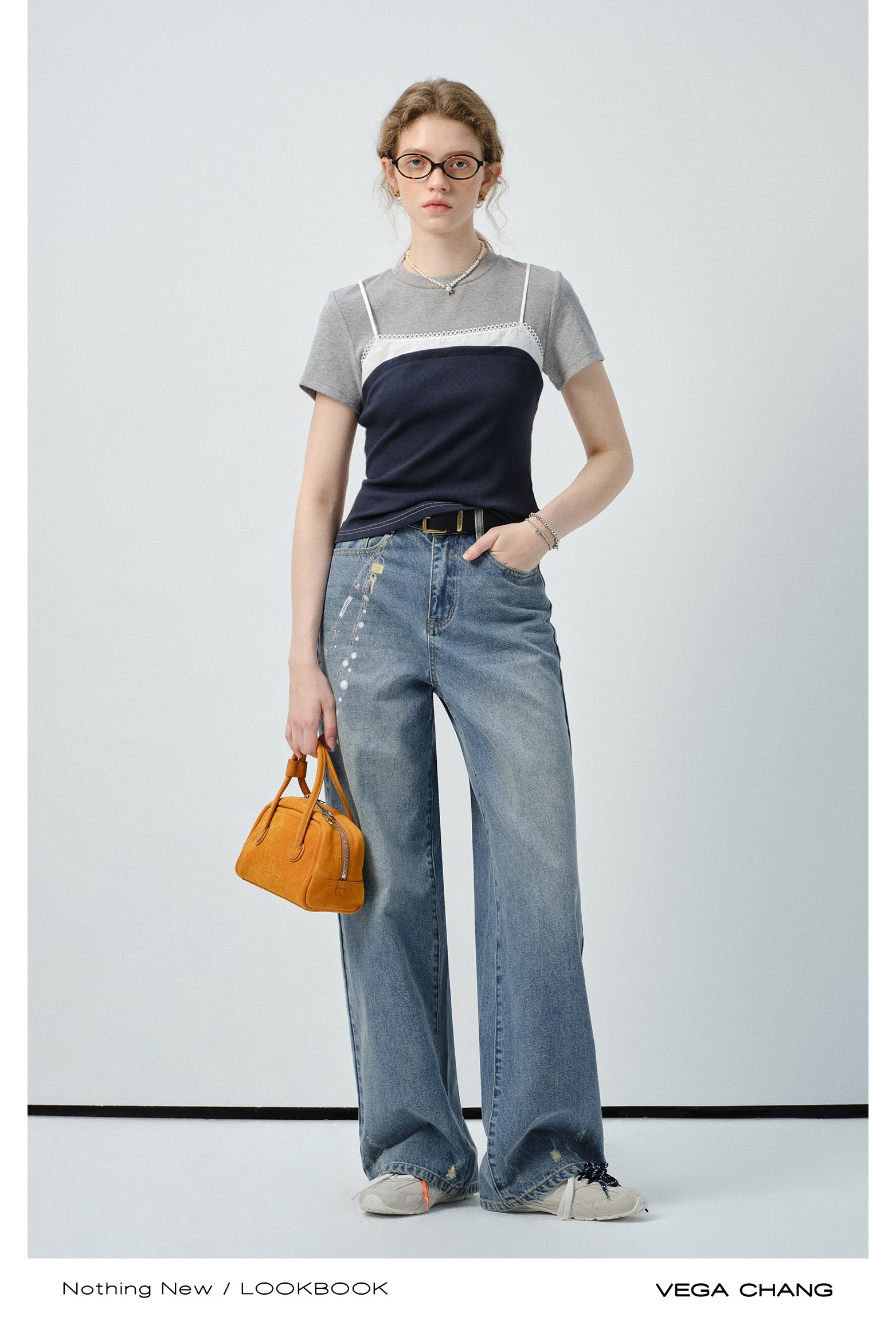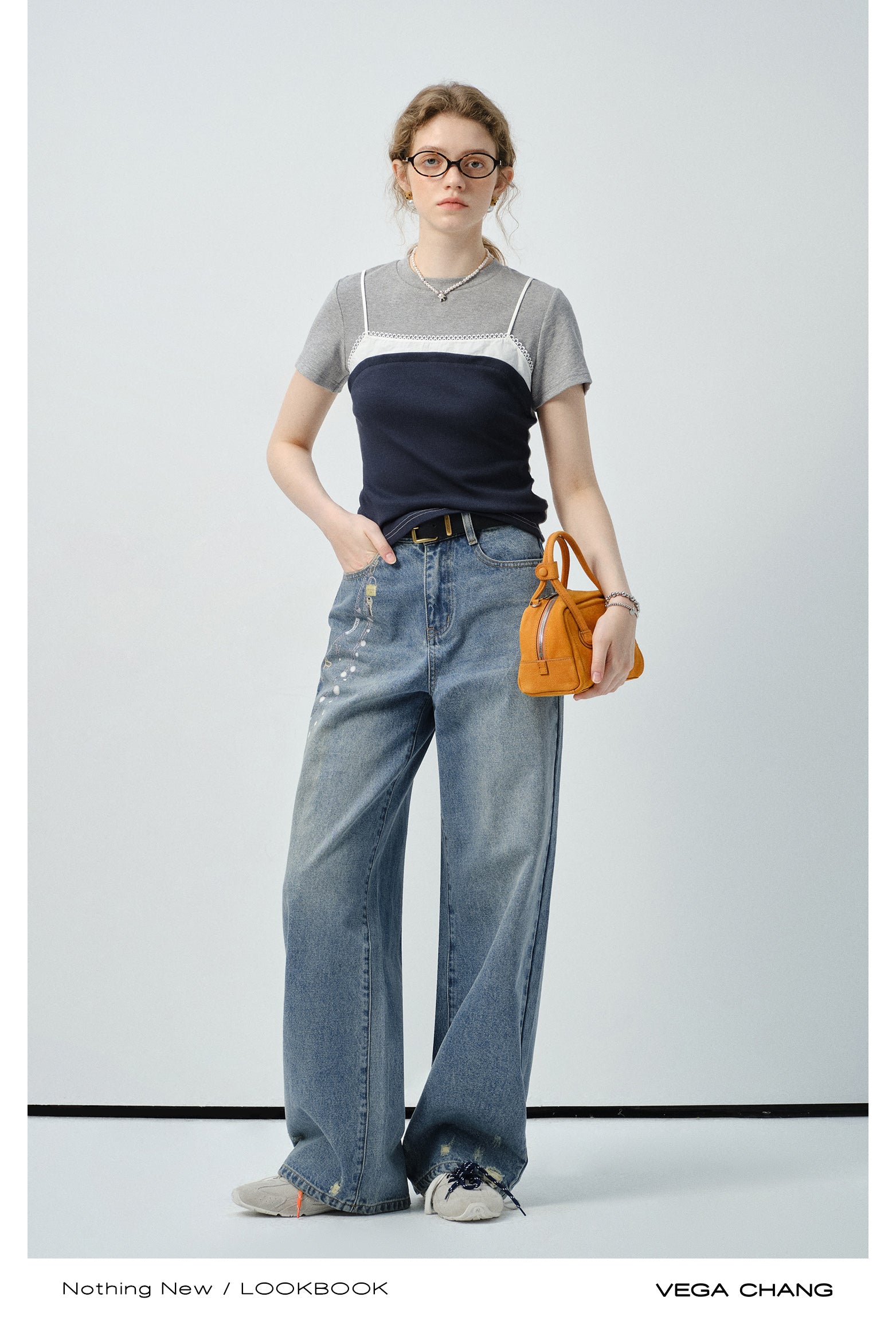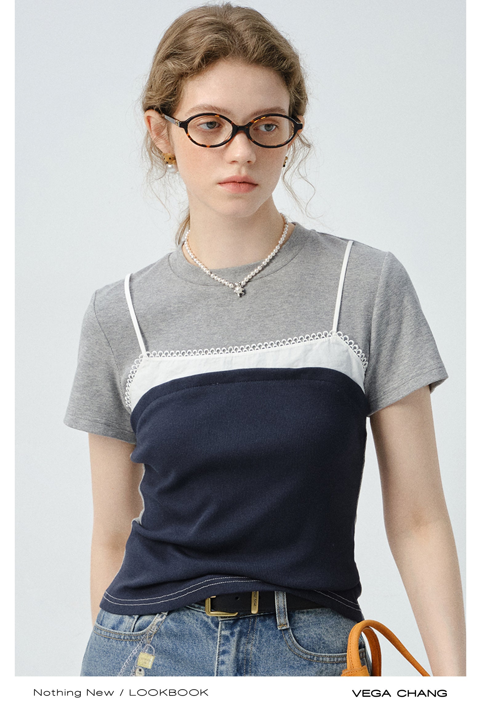 Contrast-Colored Faux-Layered Cotton T-Shirt