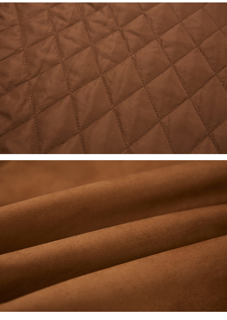 Corduroy-Trimmed Faux Suede Belted Jacket