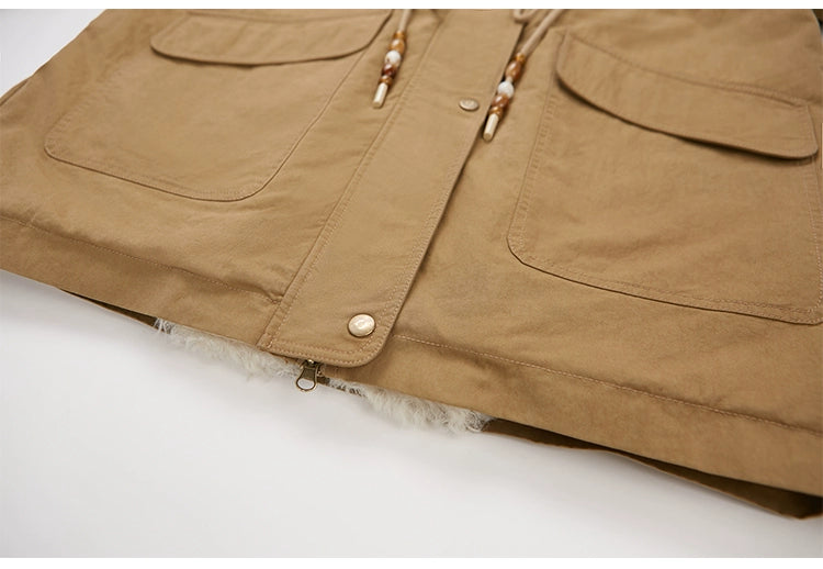 ・Material: (Khaki) 67.9% cotton, 32.1% nylon (Contains glue, except adhesive lining) / flannel: 100% polyester / Lining A (collar lining): 54.3% polyester 45.7% viscose / Lining B (body): 100% polyester / Front placket lining: 100% polyester / Filling:100% polyester / (White A) 66.3% cotton 33.7% nylon (Contains glue, except adhesive lining) / Fabric B (flannel): 100% polyester / Lining A: 100% polyester / Lining B (collar lining): 54.6% polyester 45.4% viscose / Front placket lining: 100% polyester / Filling:100% polyester