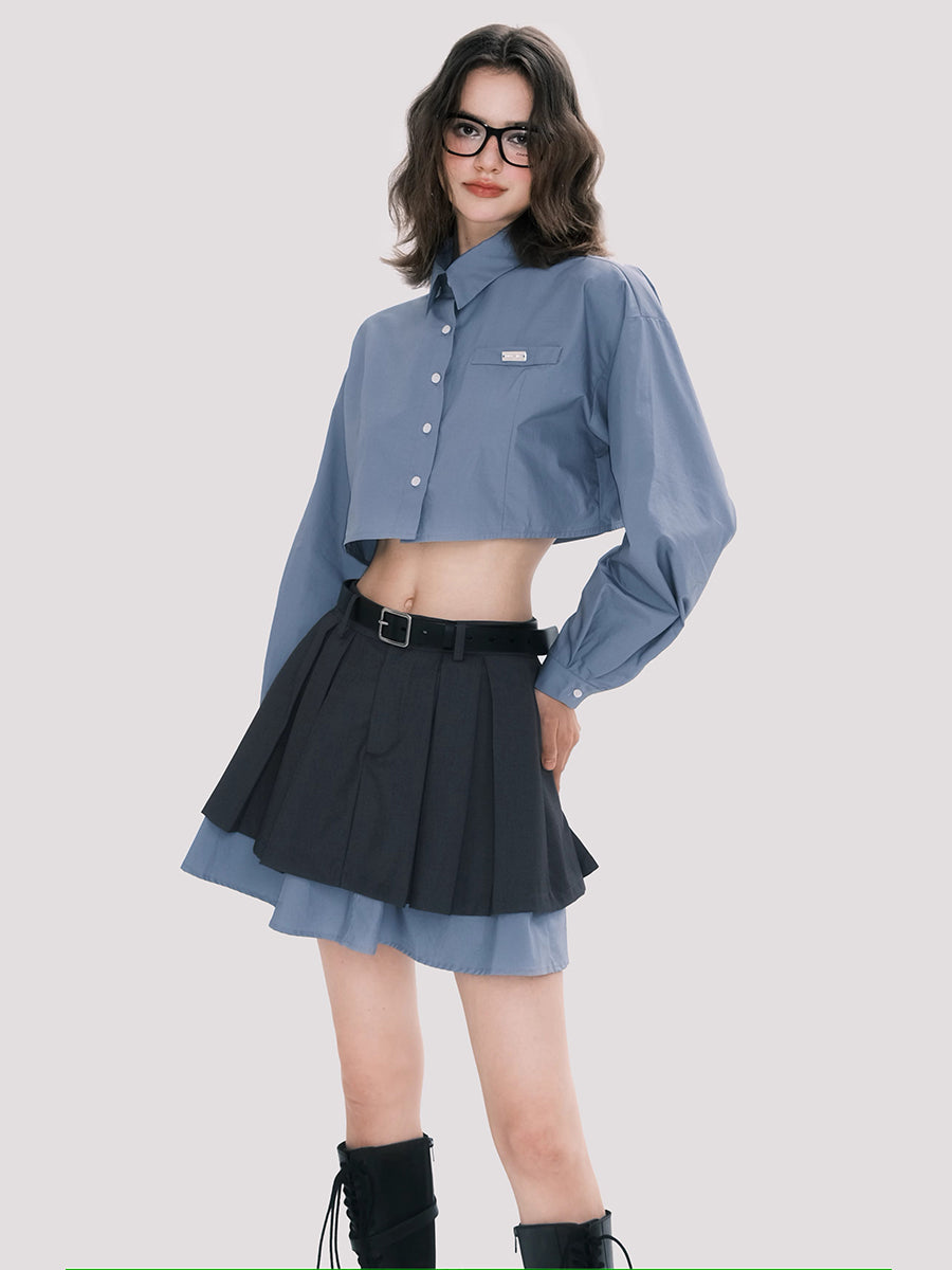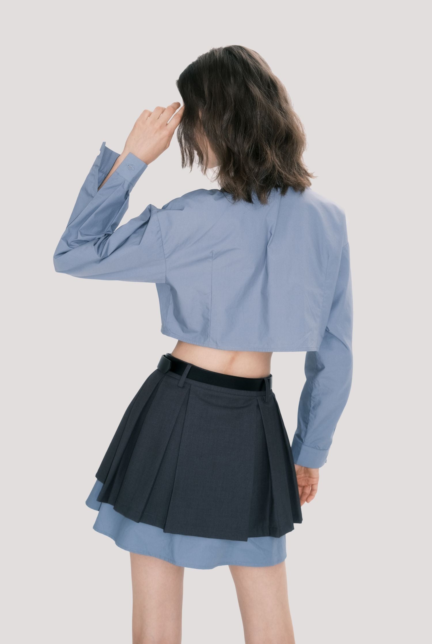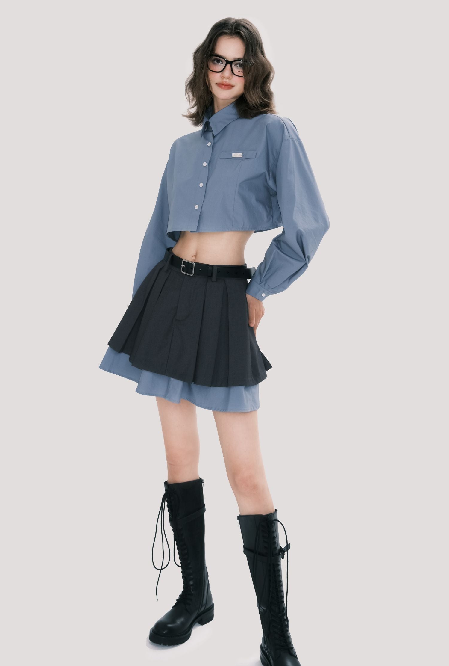 Cropped Cotton Shirt And Low-Rise Layered Skirt
