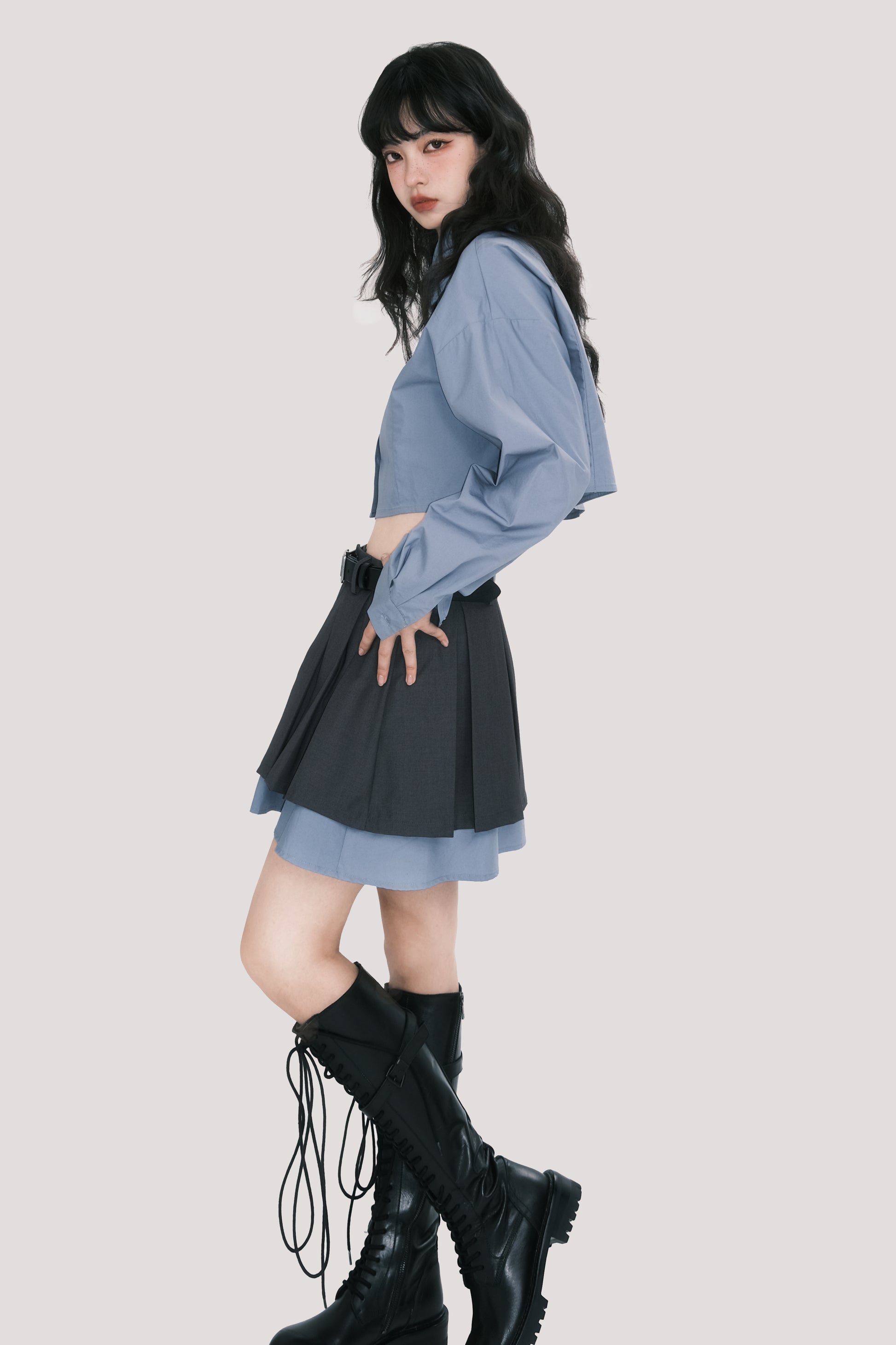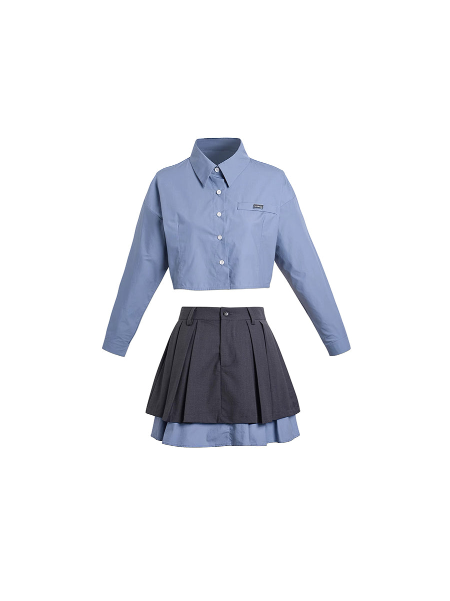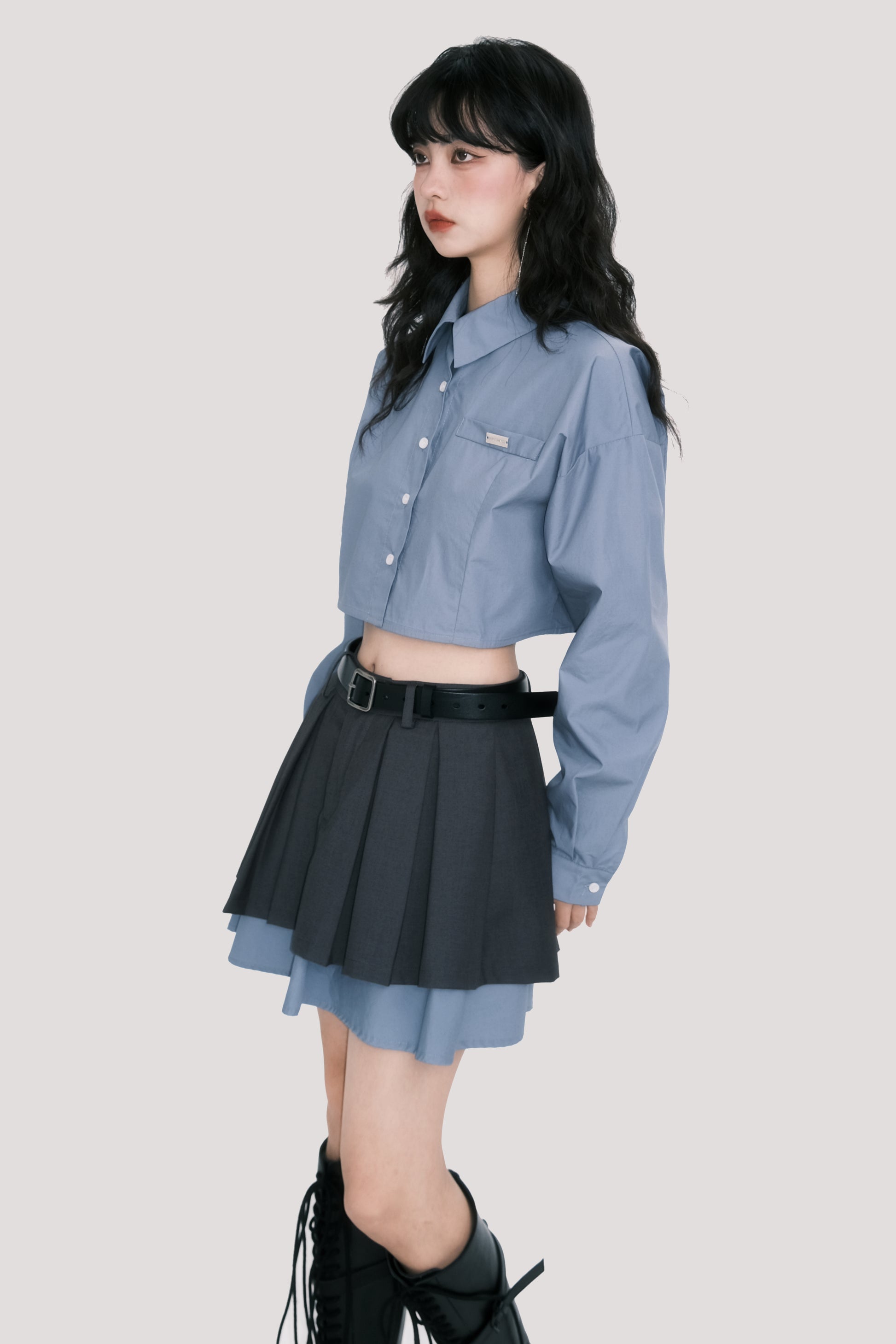 Cropped Cotton Shirt And Low-Rise Layered Skirt