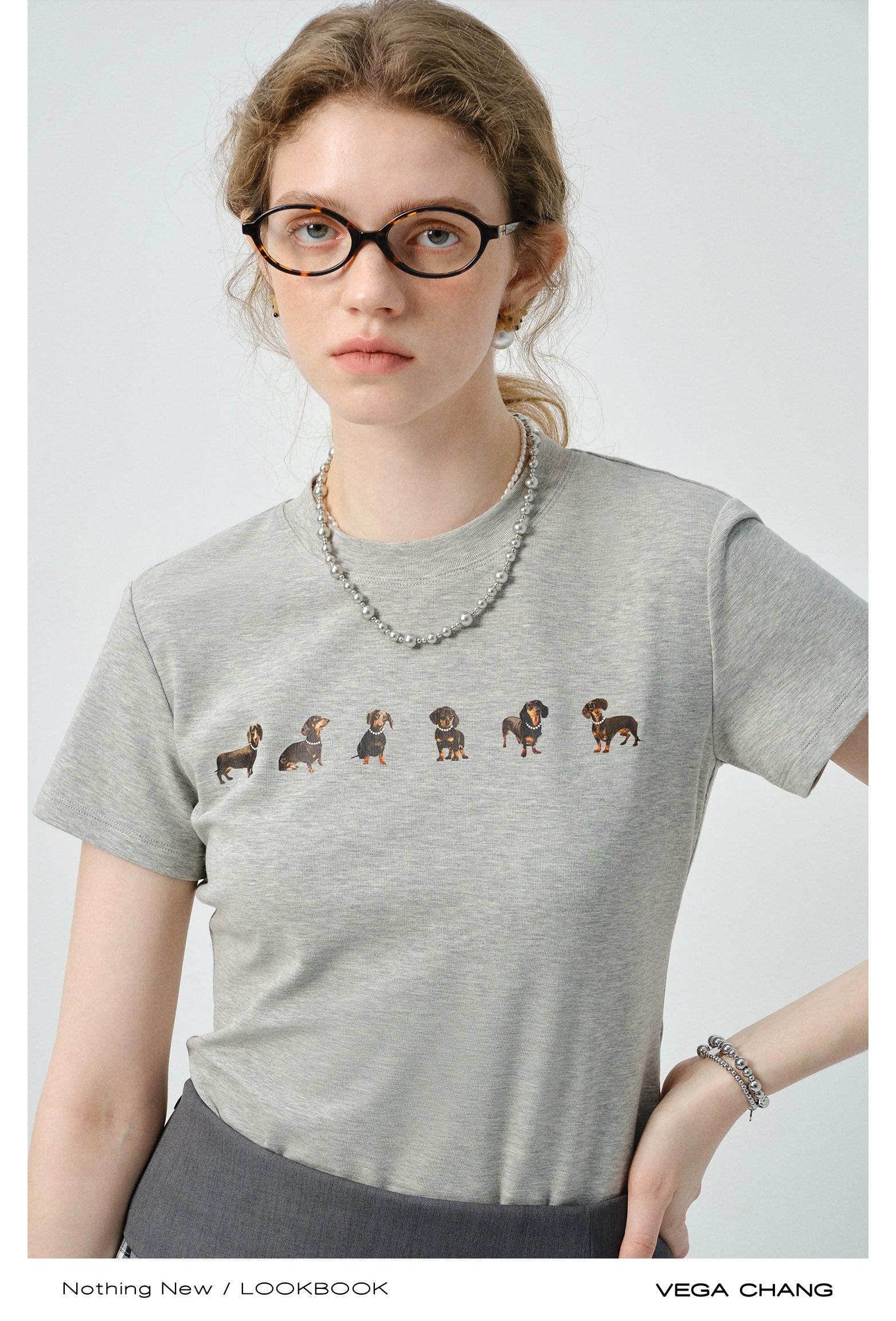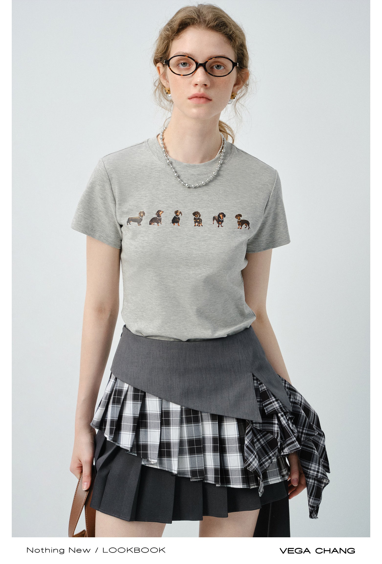 Dachshund Print Tee & Mixed Fabric Layered Skirt