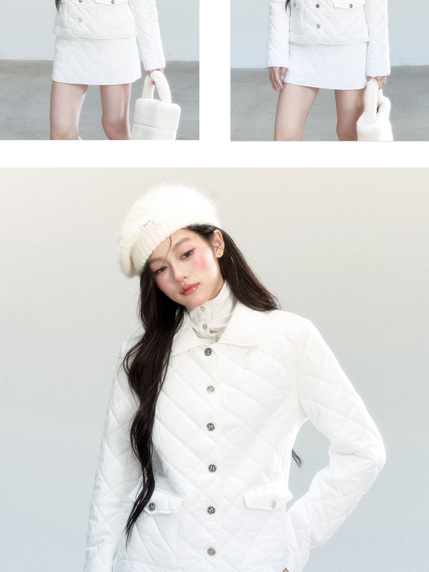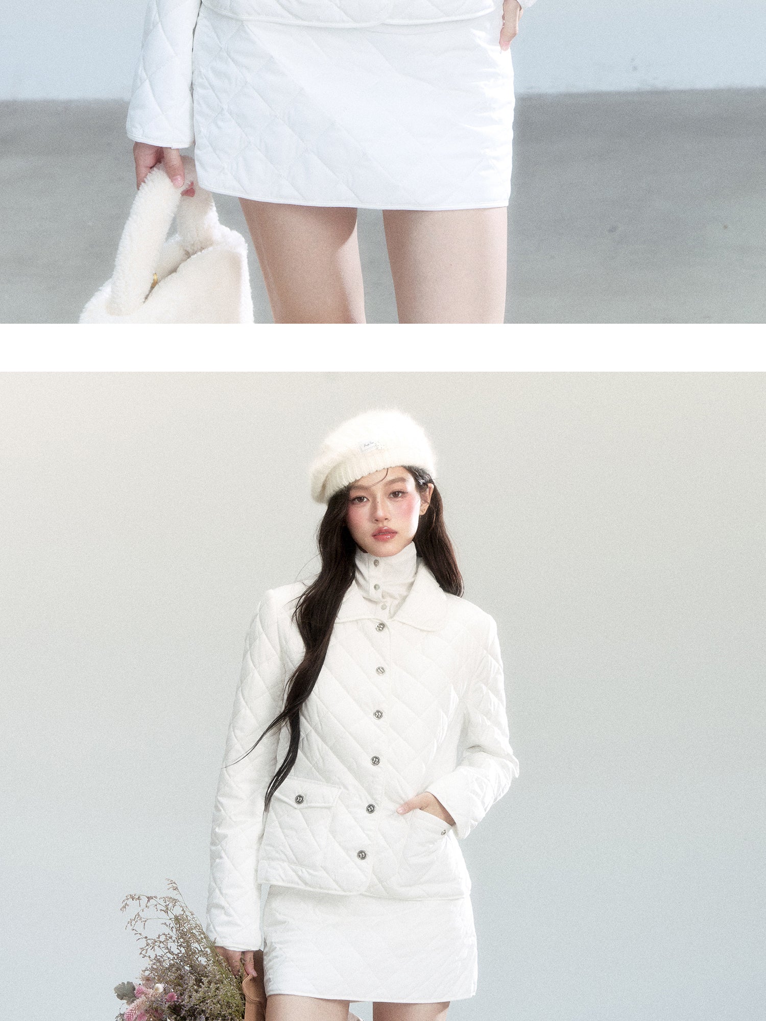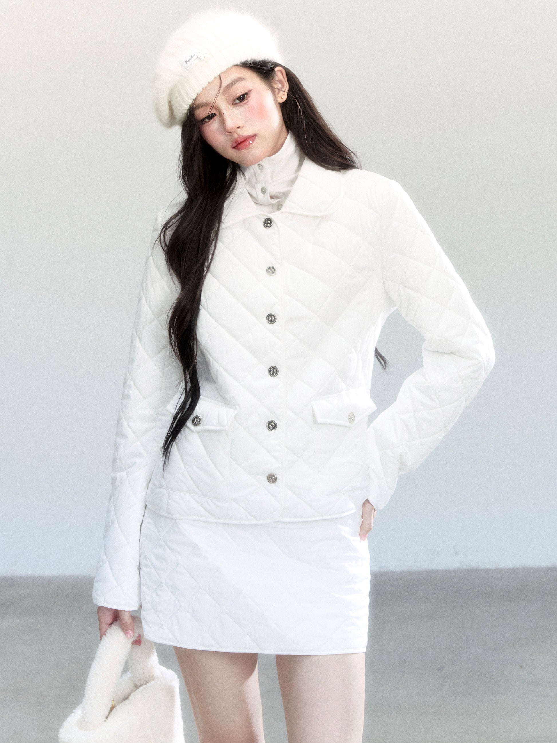 Diamond-Quilted Jacket And Mini Skirt
