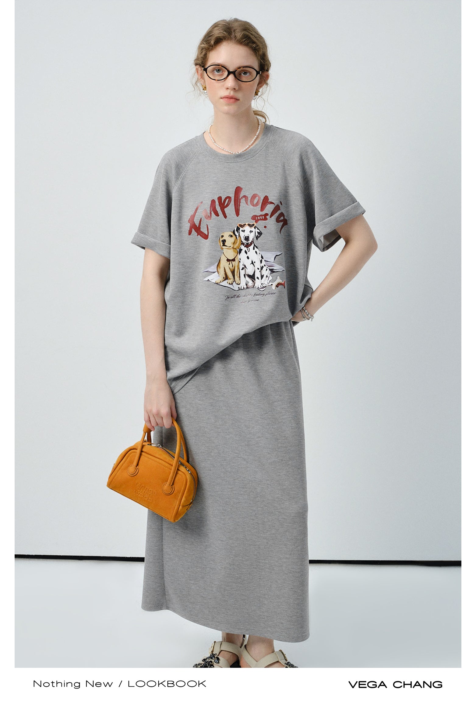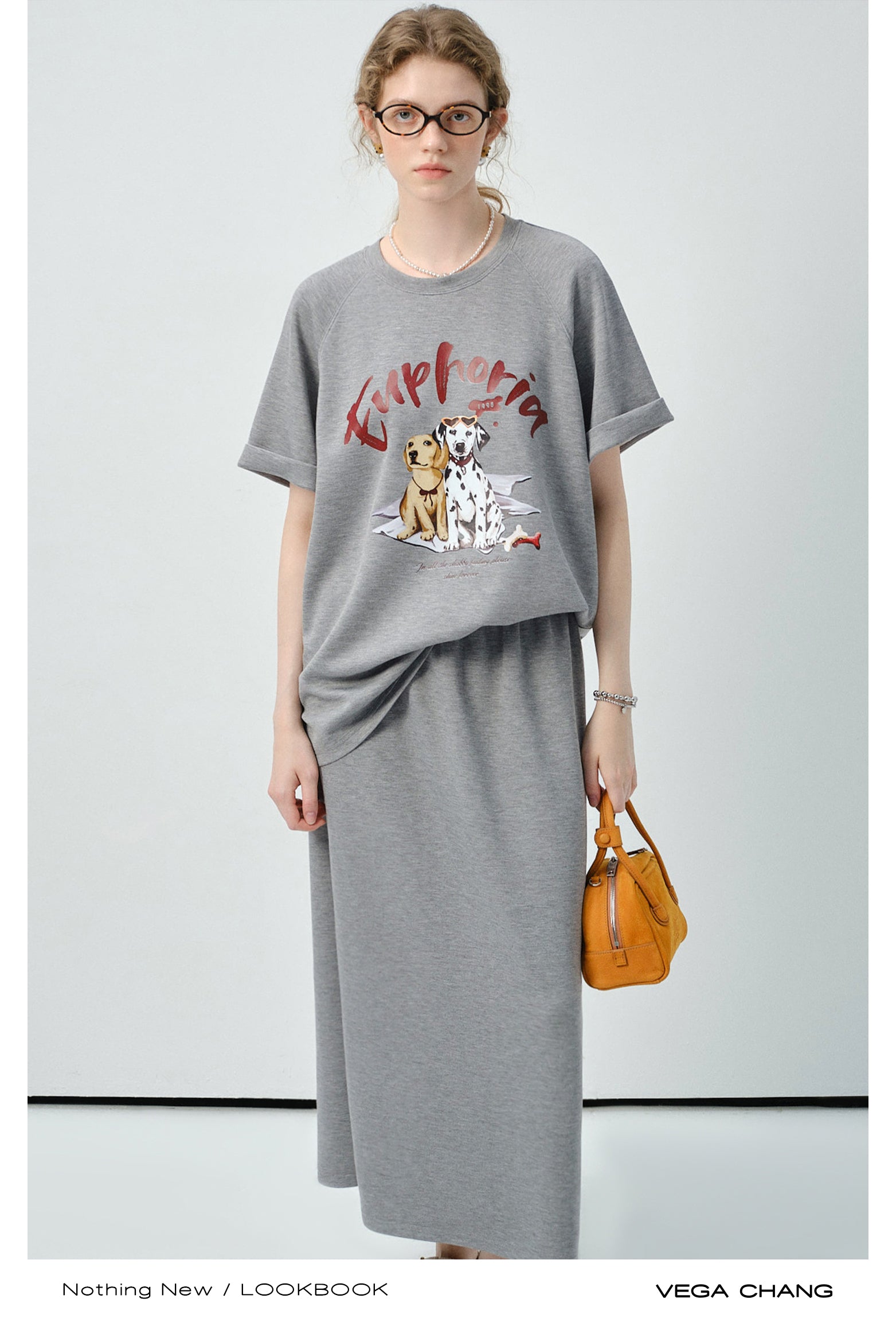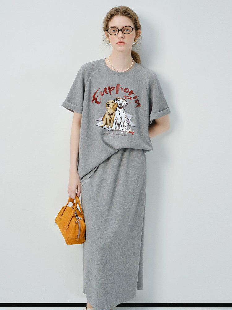 Dog Print Raglan T-Shirt & Matching Plain Skirt