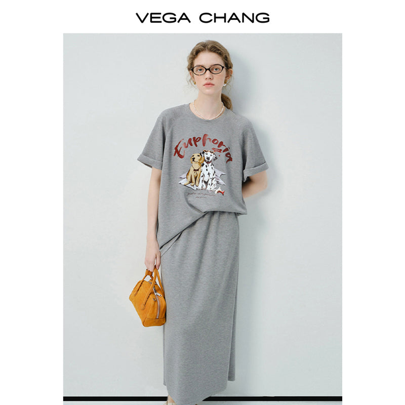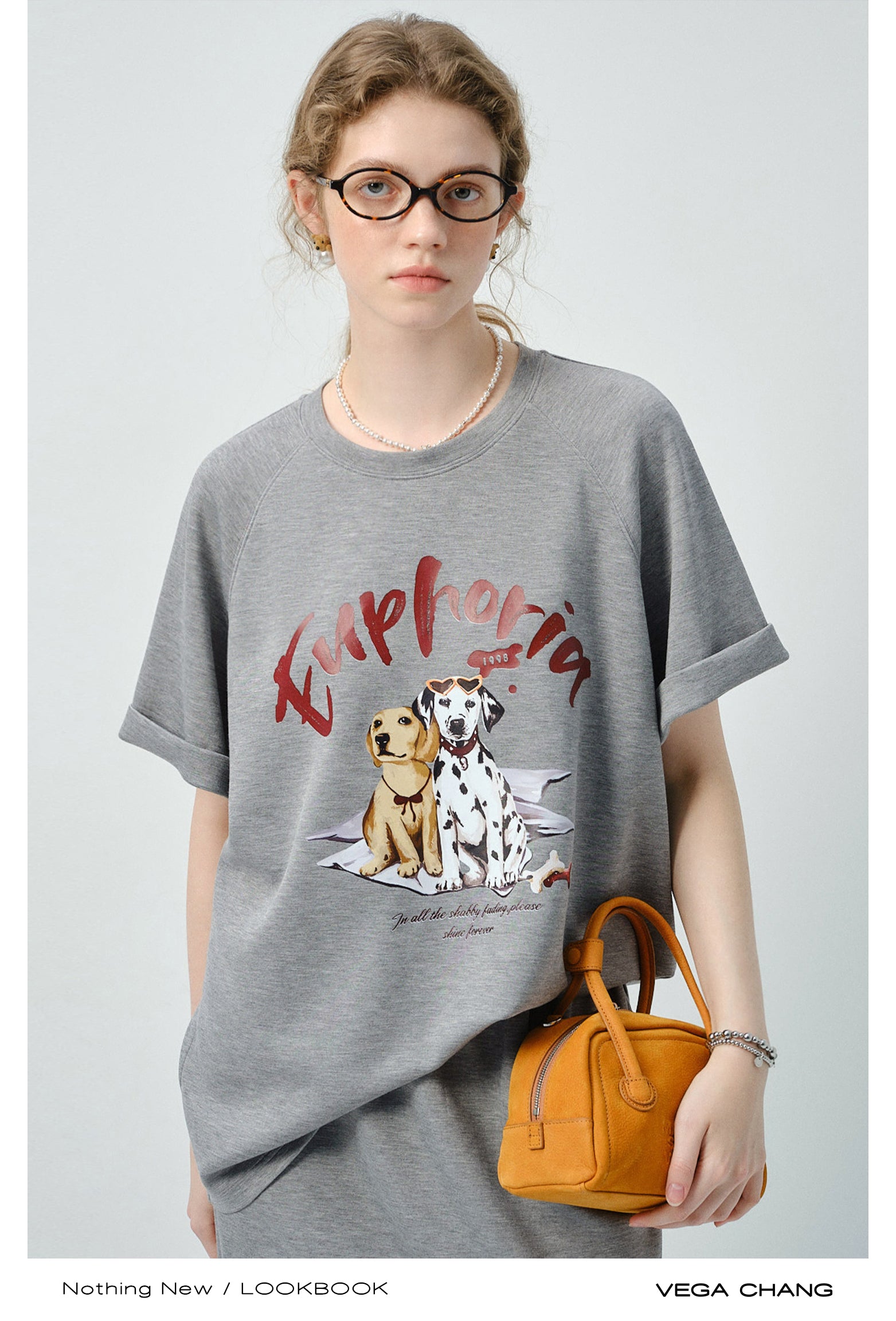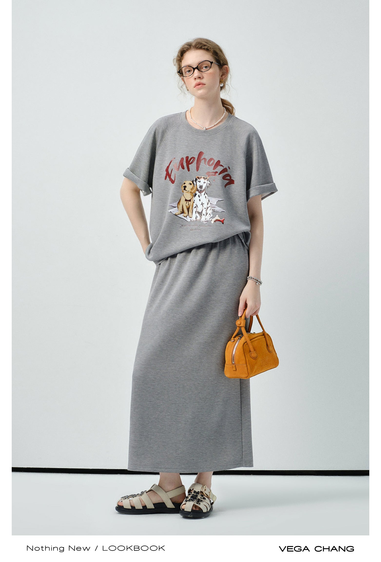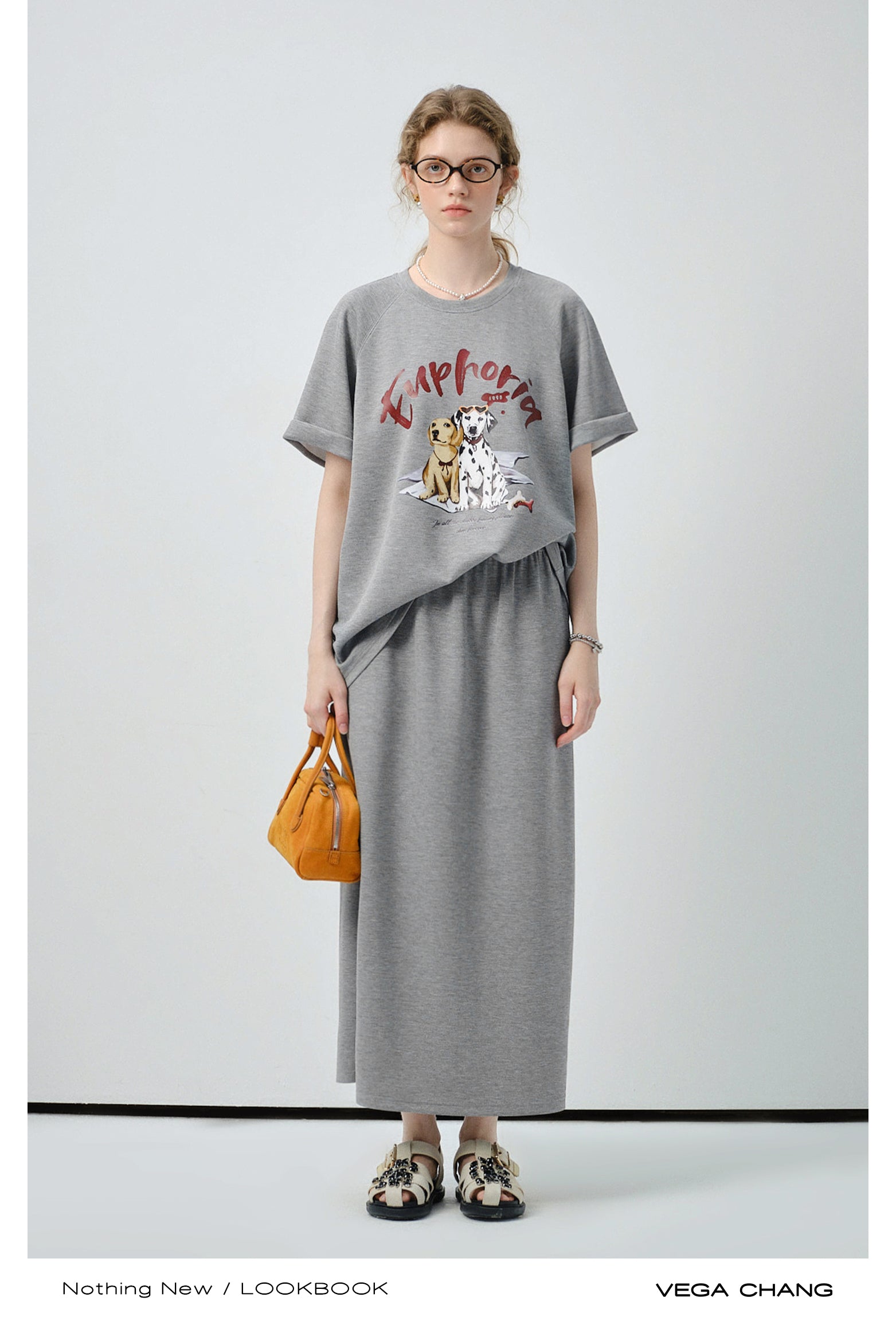 Dog Print Raglan T-Shirt & Matching Plain Skirt